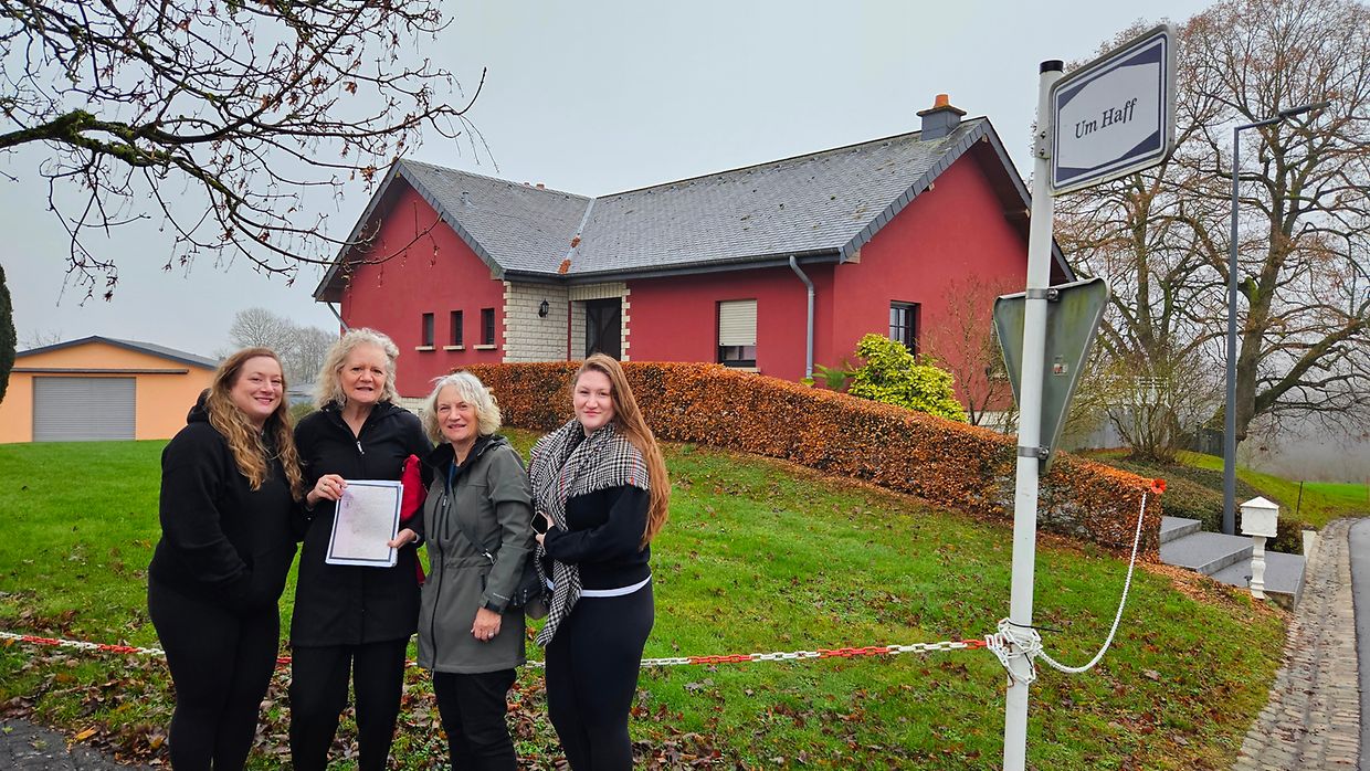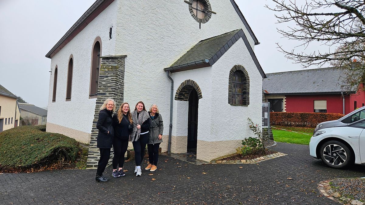 Und weiter geht es mit den Besuchern aus dem Staaten. Dieses Mal waren es Ann Hubbard-Welbes, ihre 2 Töchter und die Schwester Marie. Sie sind Nachkommen der Familie Welbes aus Pütscheid und der Familien de la Gardelle, die vor vielen Jahren Grafen von Falkenstein waren. Unser erste Fahrt ging nach Pütscheid, wo wir uns mit der Familie Welbes beschäftigten. Dank der Hilfe von Luc Nosbusch von dort und meinen Recherchen konnten wir der Familie die exakte Lage ihres Besitzes vor der Auswanderung angeben. Da ich die betreffende Akte über den Verkauf des „Lentzen Gutes“ in Pütscheid ausfindig gemacht hatte, wo eine Katasternummer erwähnt wird, war die Lage eindeutig. So waren die Besucher sehr erfreut ob diesen Informationen und genossen das Gefühl auf den direkten Spuren ihrer Vorfahren zu wandeln. Danach ging die Reise weiter nach Biwels, wo wir einen Blick auf die Ruinen der Burg Falkenstein werfen konnten.