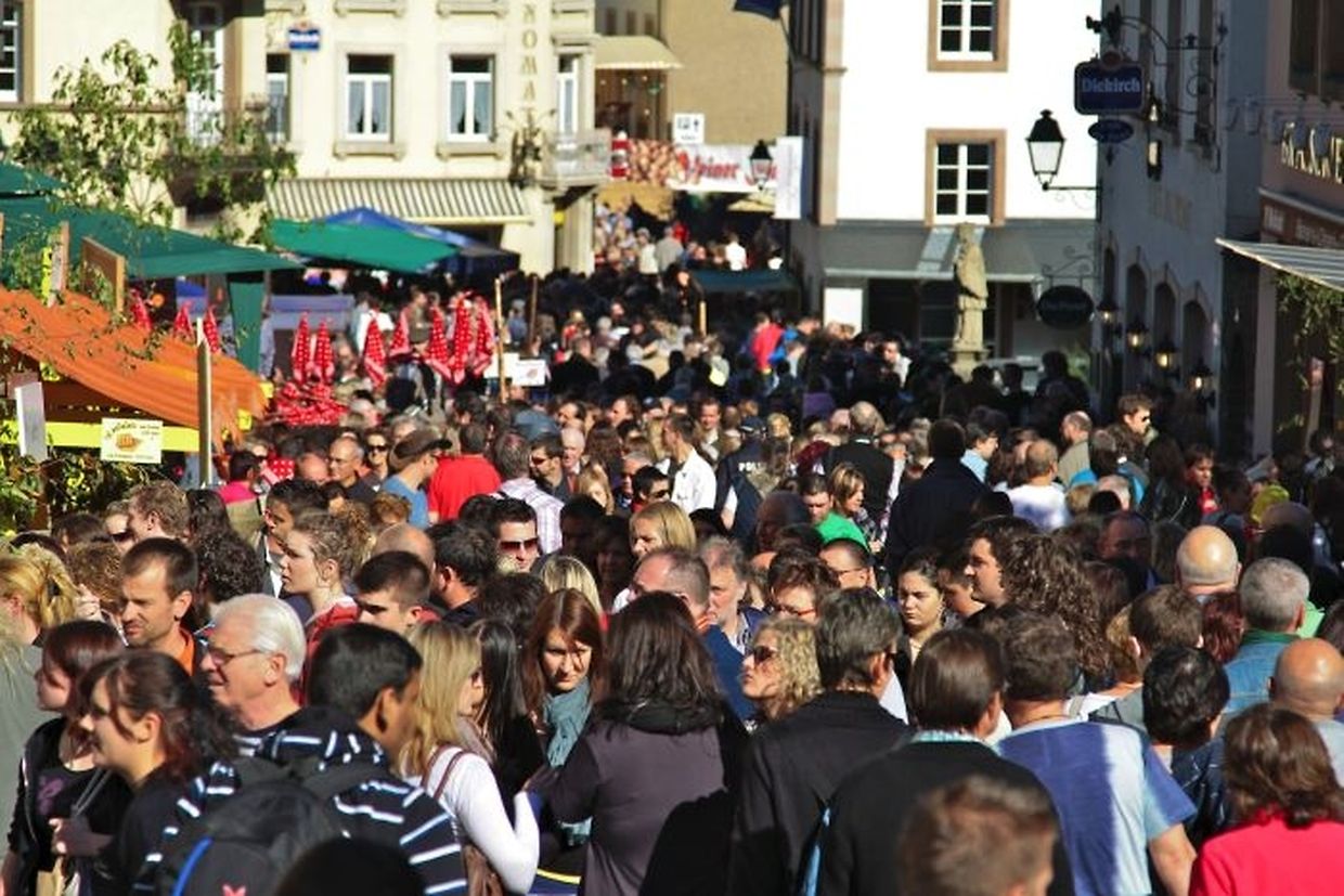 Dicht an dicht drängten sich die Menschen durch die Gassen im Schatten der Hofburg, das tat der guten Stimmung aber keinen Abbruch. An allen Ecken wurde musiziert und getanzt, so z. B. bei der „Veiner Stadmusik“, wo die „Veiner Wäisserten“ mit bekannten Melodien aufwarteten. Die „Zwee vuam Nëssmoortseck“, „DJ-White“ im Dicksgäertchen, ein Disco-Team auf dem Kiosk: Für Kurzweil war ausreichend gesorgt.