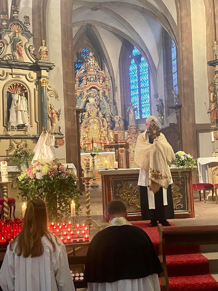 Zréck an der Trinitarierkierch hott de Generalvikar Patrick Müller, dän och moies der Mass virgestanen hott, de Schlussseegen gespent.