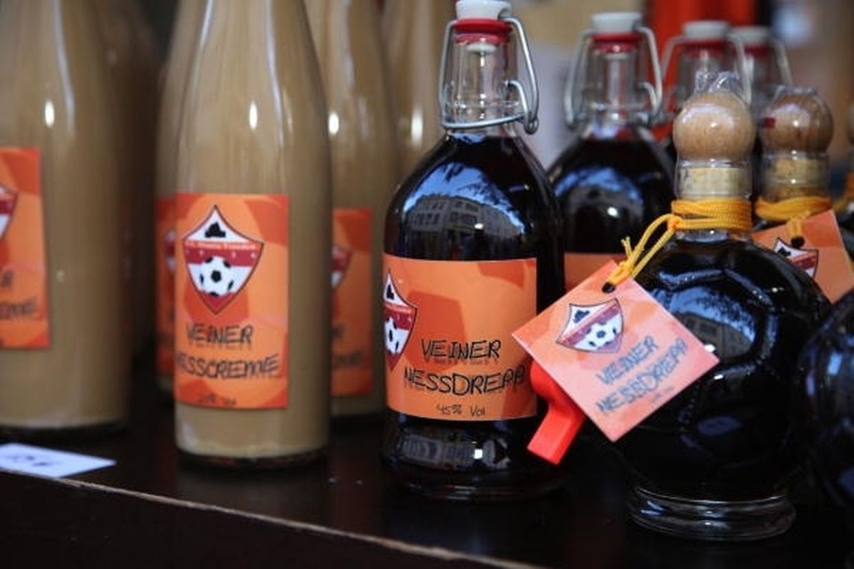 Die traditionelle „Nëssdrëpp“, kam dann im Anschluss an all die kleinen Leckereien nur recht, sagt man ihr doch eine magenberuhigende Wirkung nach. Auch die „abgeschwächte“ Version, der süße „Nësslikör“, sowie die milchige „Nësscrème“ und, neu in diesem Jahr, der „Nëssporto“ durften natürlich auch nicht fehlen.