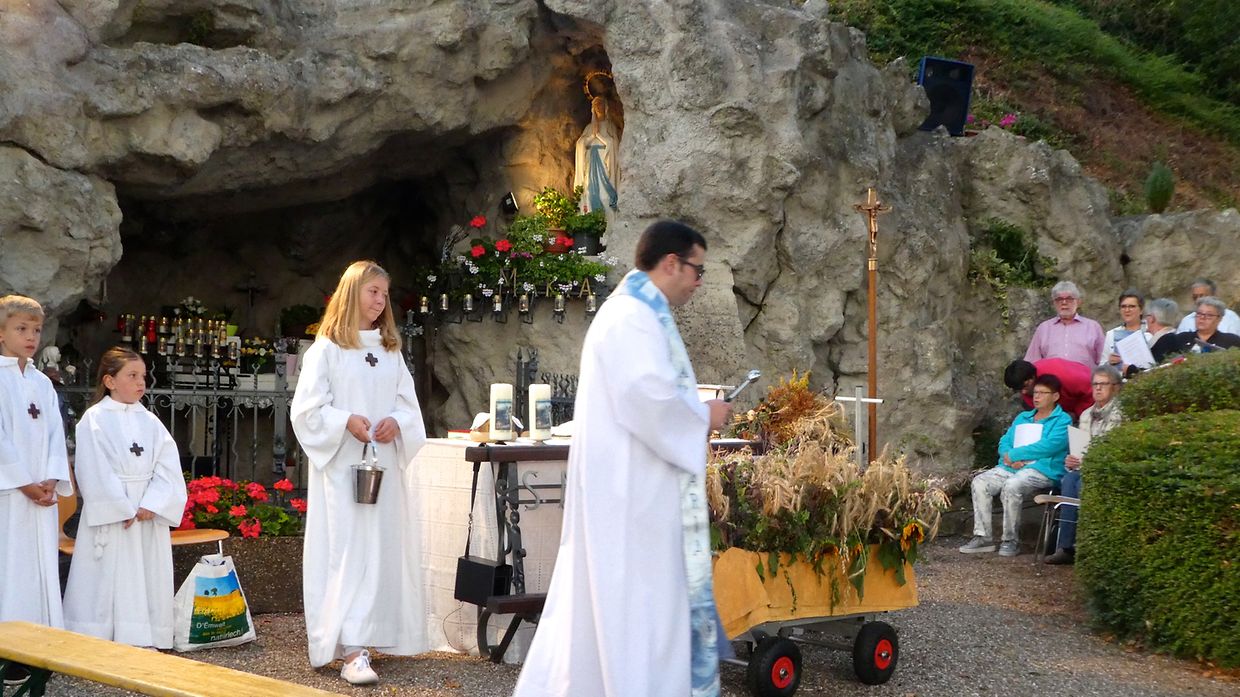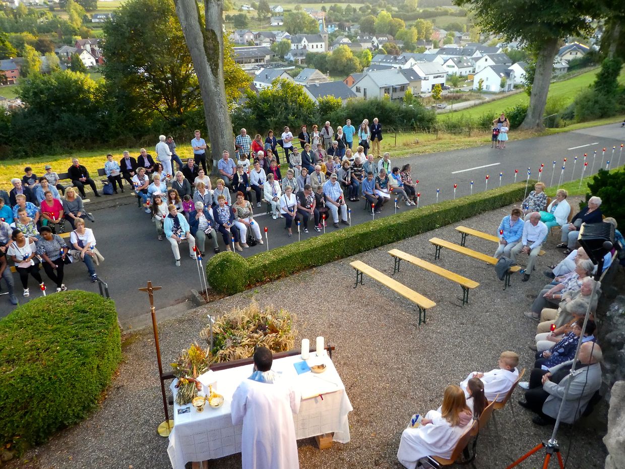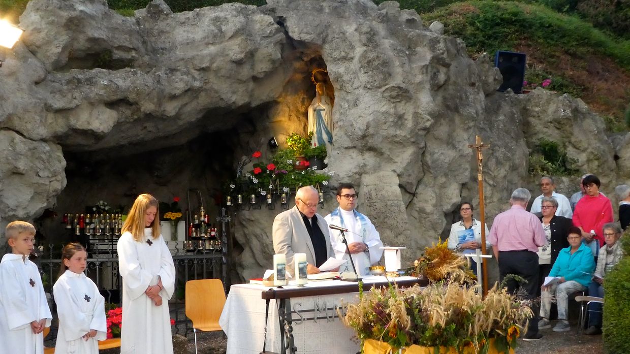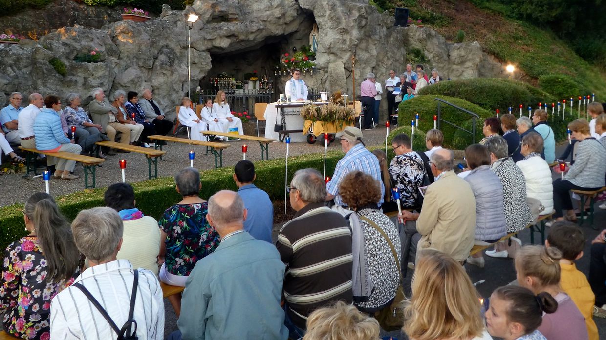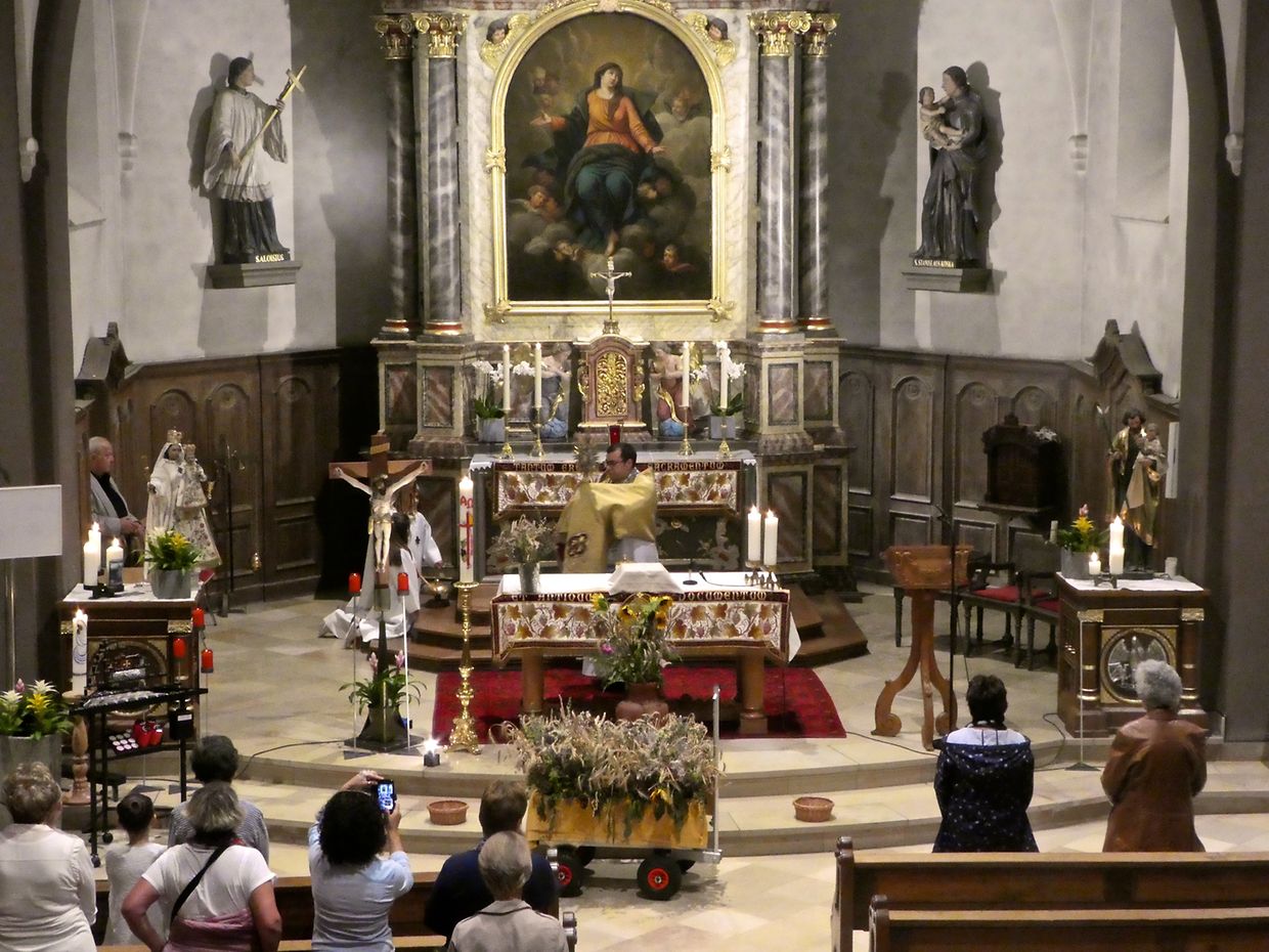 Vichten : Am Abend von Mariä-Himmelfahrt nahmen viele Gläubige aus Vichten und Umgegend an der traditionellen Feier zu Ehren der Muttergottes teil. In einer Lichterprozession begaben sich die Gläubigen von der Kirche bis zur Muttergottesgrotte. Hier fand in der Eucharistiefeier welche von der Chorale Vichten mitgestaltet wurde die Kräutersegnung statt. Nach der Messe gingen die Gläubigen singend zur Kirche wo die Gemeinschaft in der Abschluss-Liturgie den sakramentalen Segen erhielt. Nach der religösen Feier luden die Feuerwehrleute, welche auch aktiv für die Srassenverkehrsordnung waren zu einem gemütlichen Beisamensein mit Imbiss und Getränke ein.