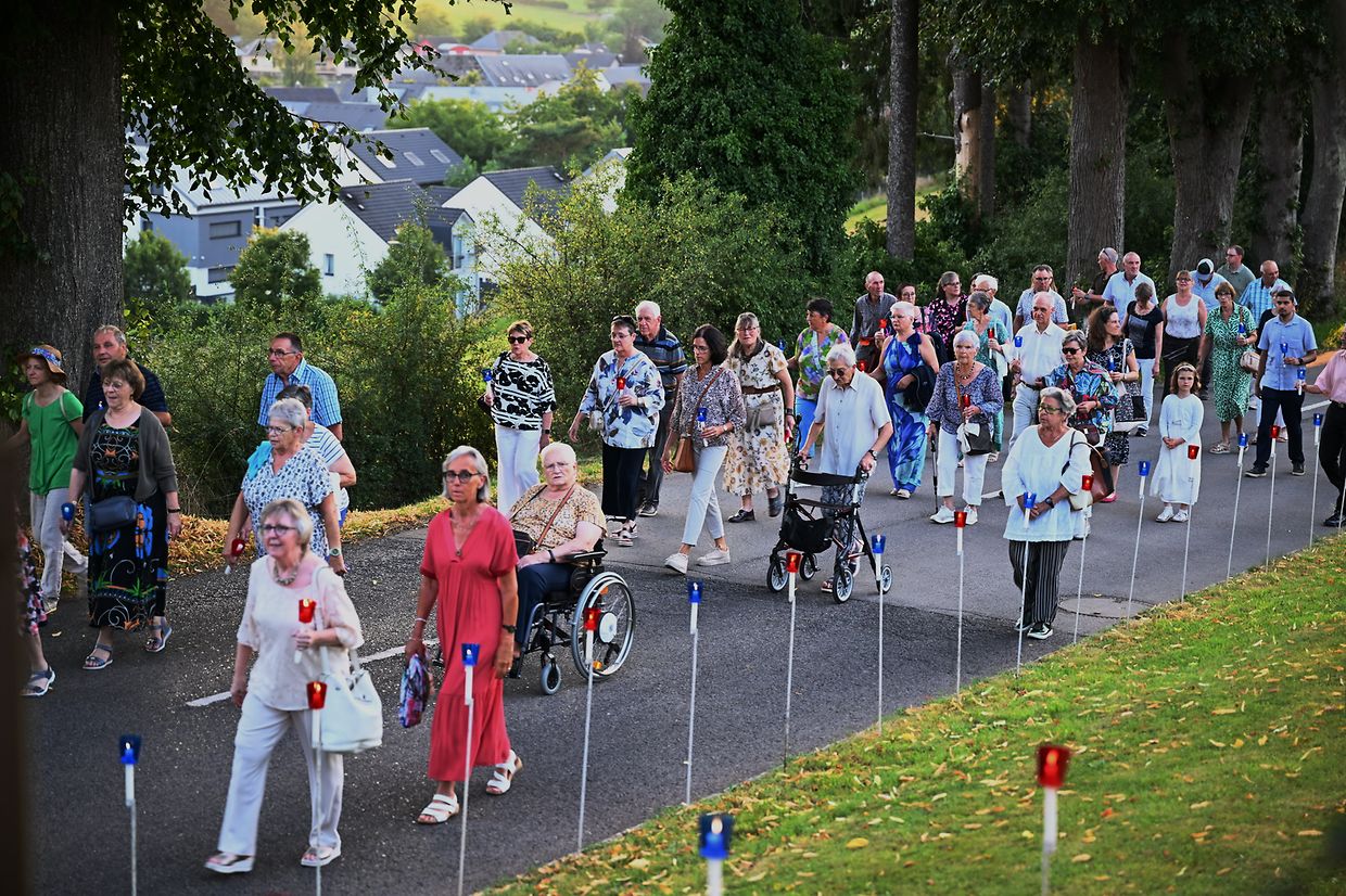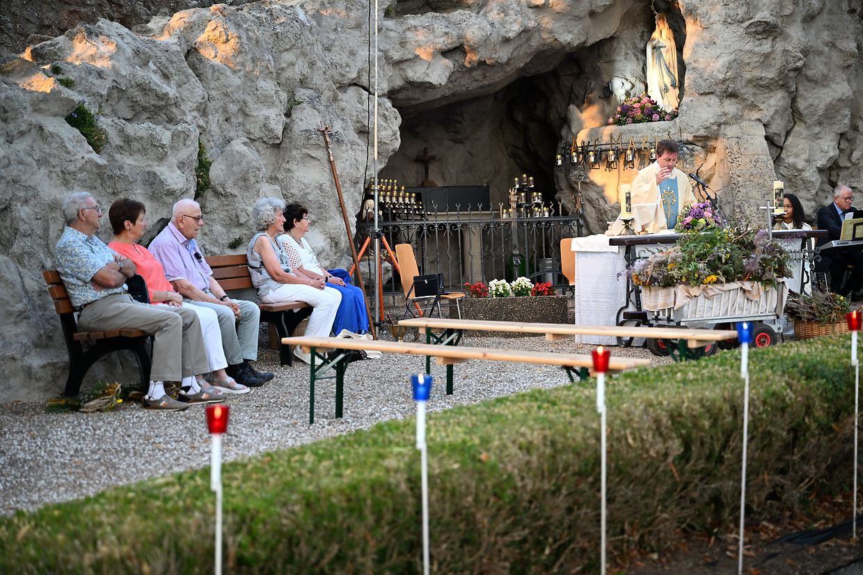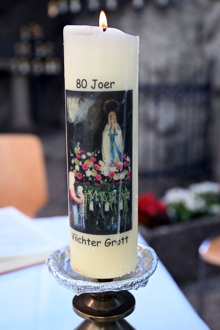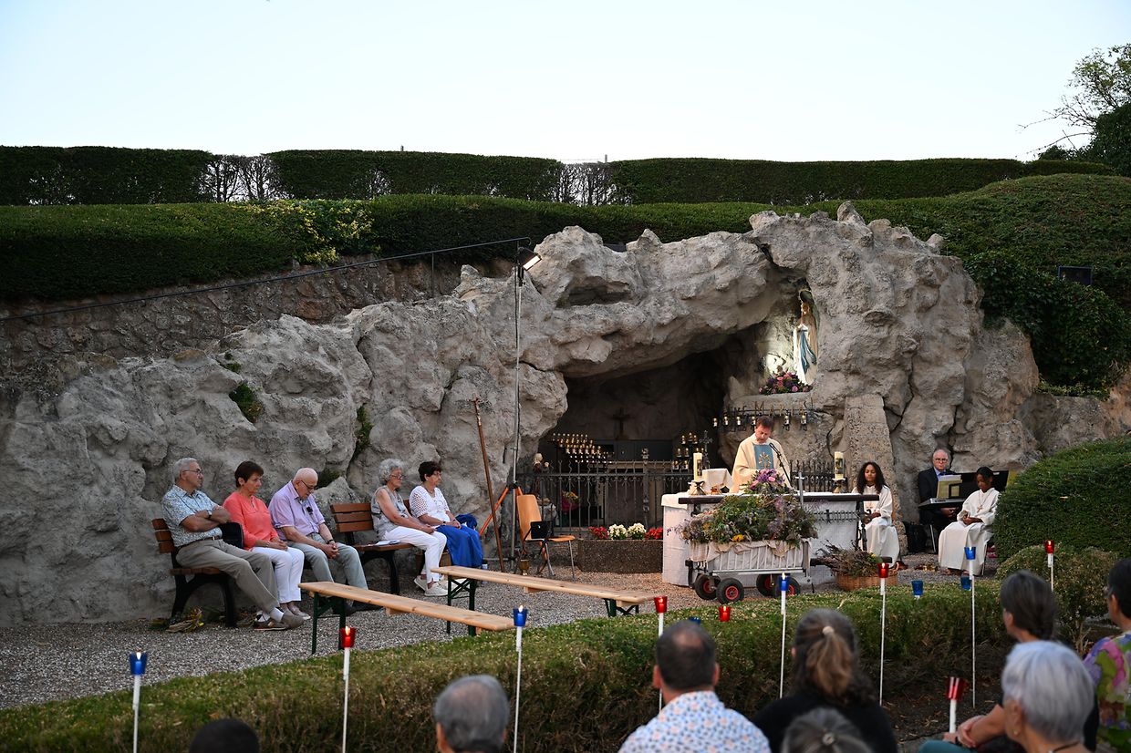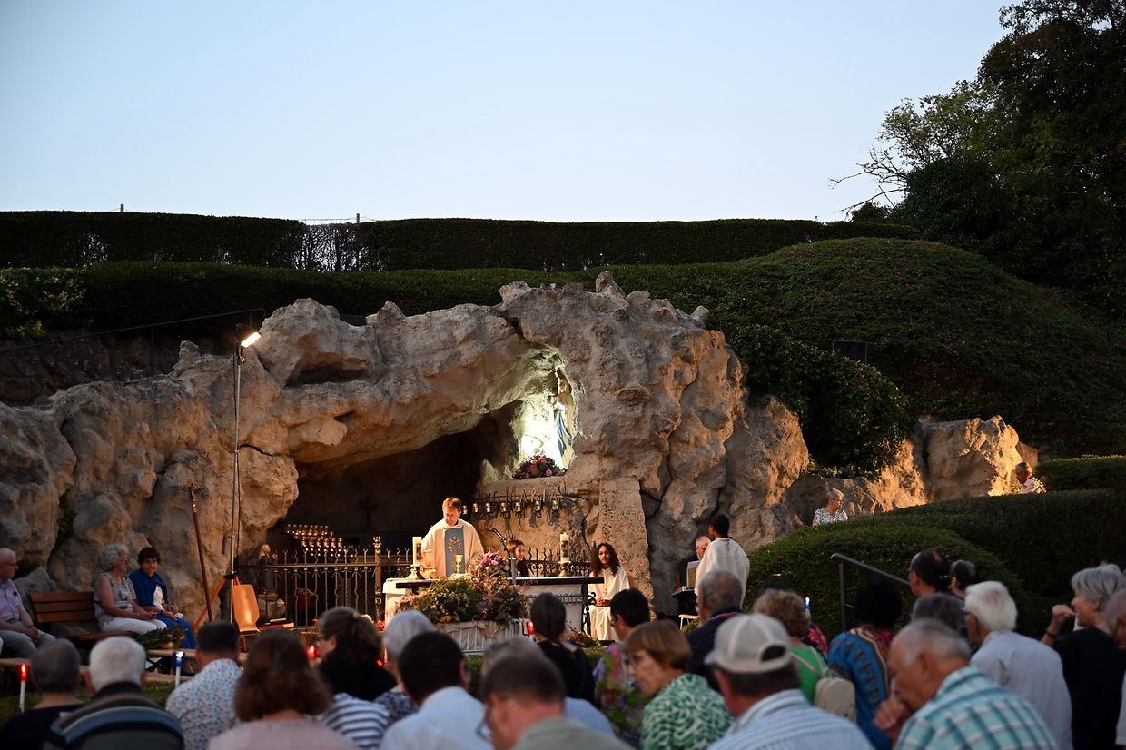 Liichterprëssioun a Festmass bei der Lourdes- Grotte zu Viichten