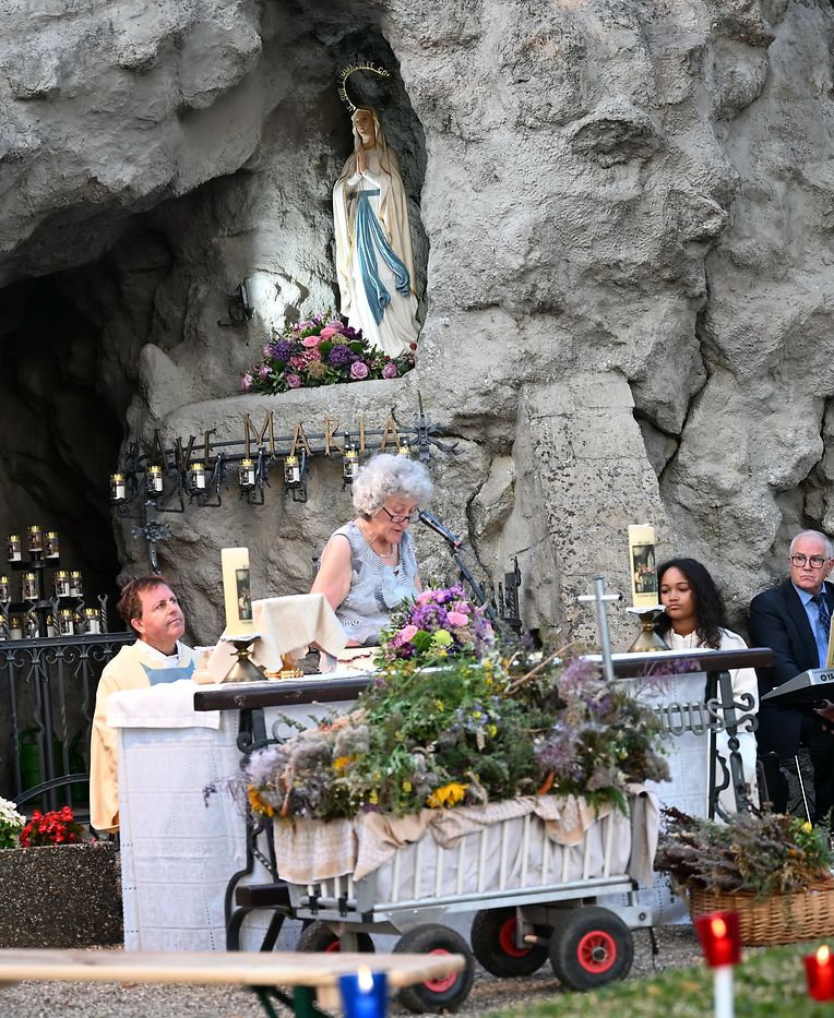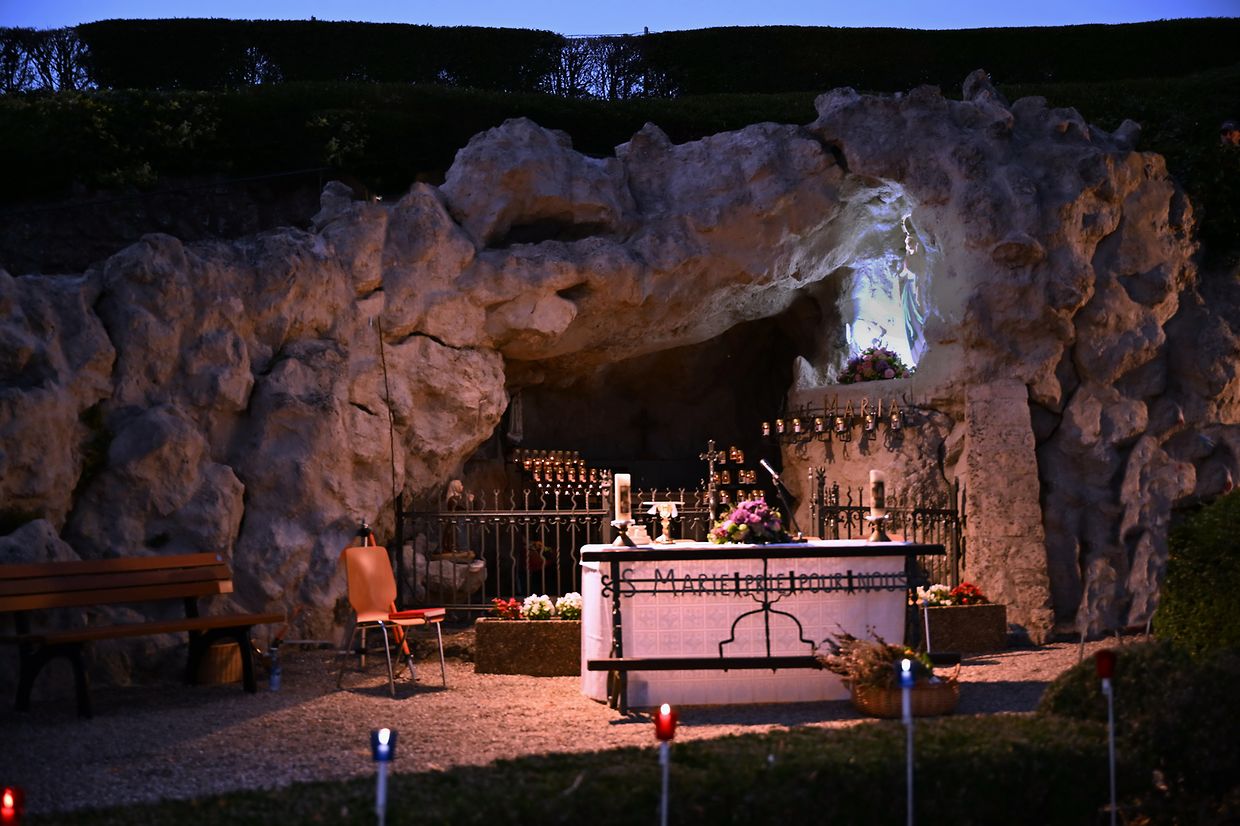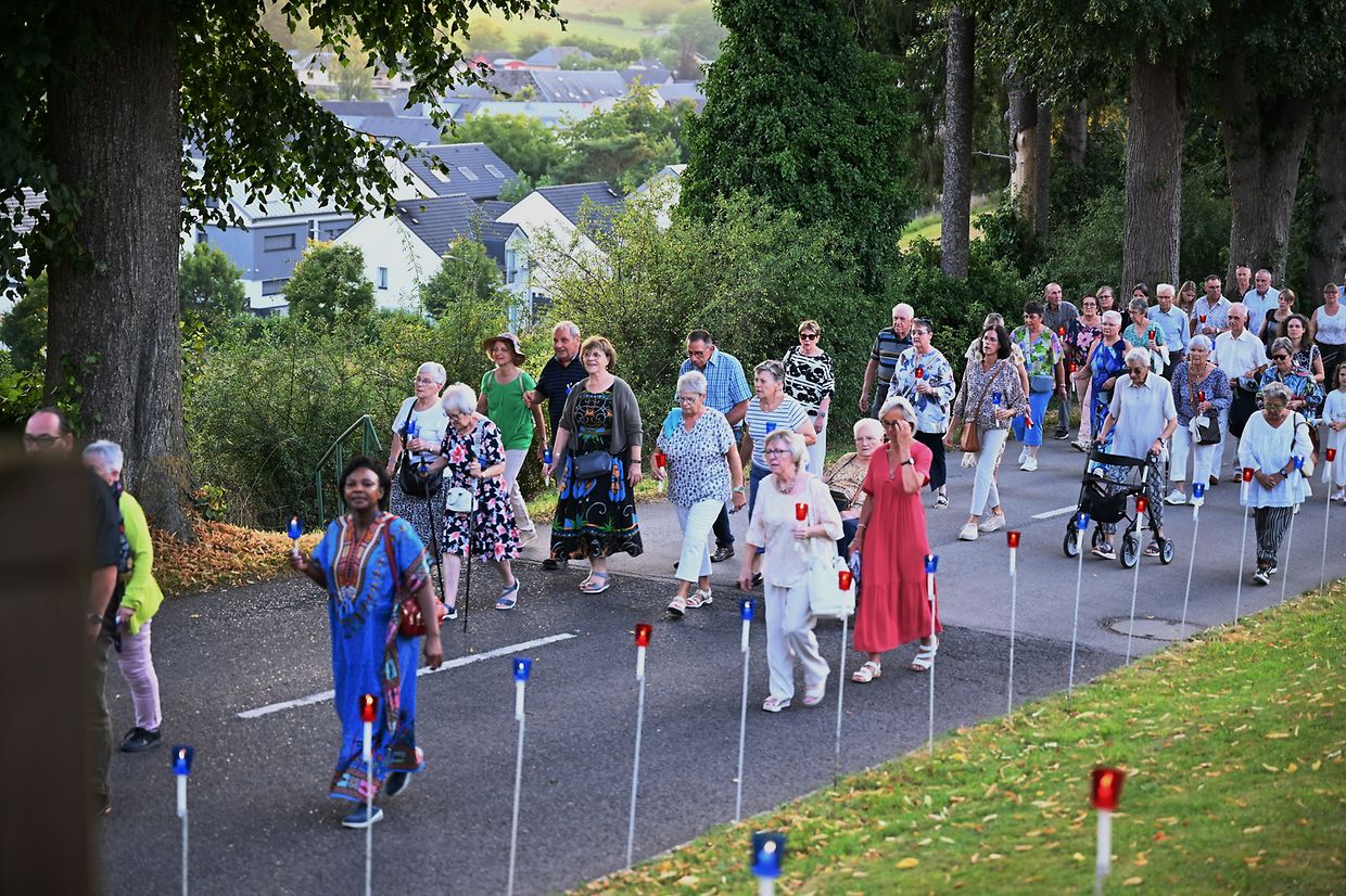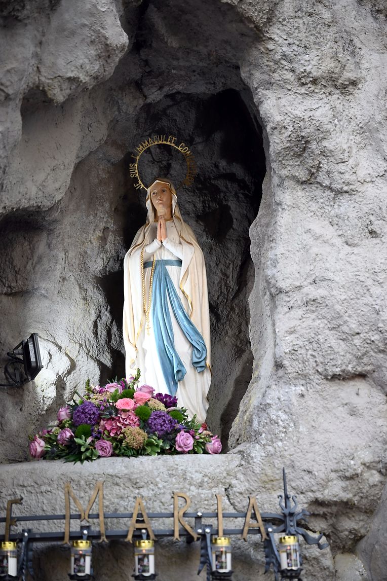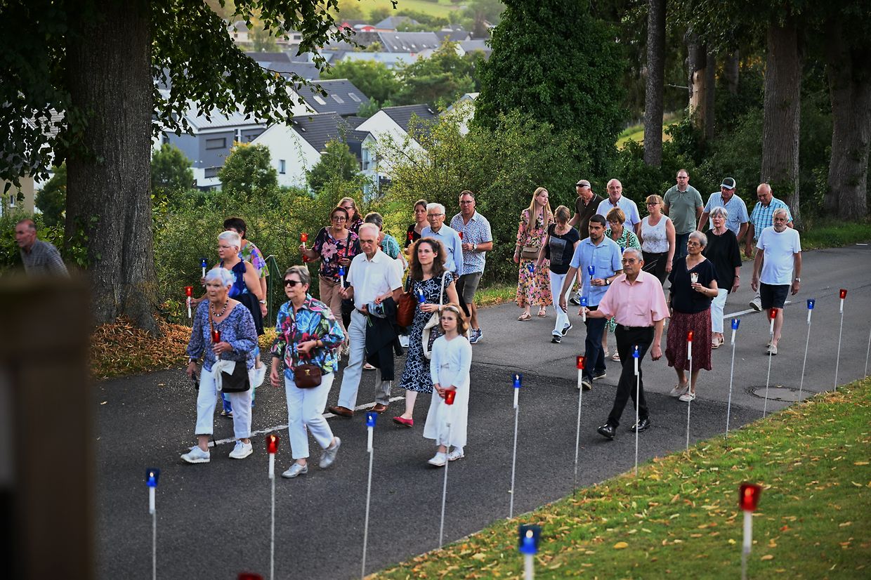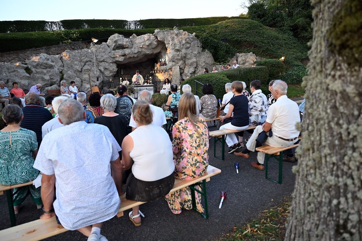 Liichterprëssioun a Festmass bei der Lourdes- Grotte zu Viichten