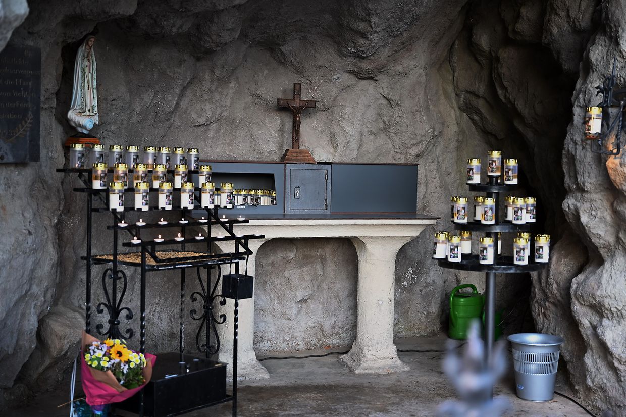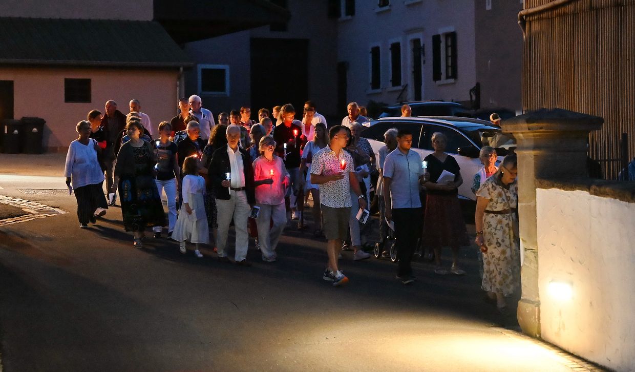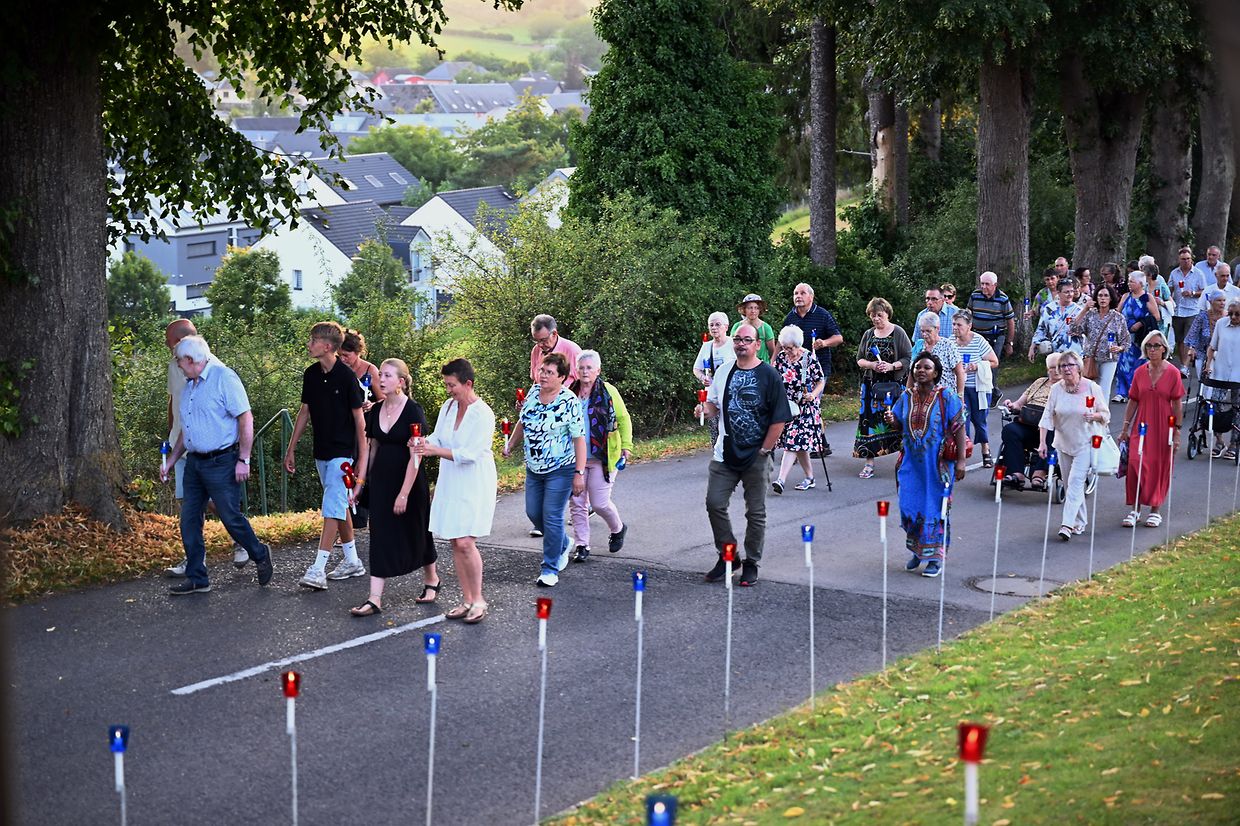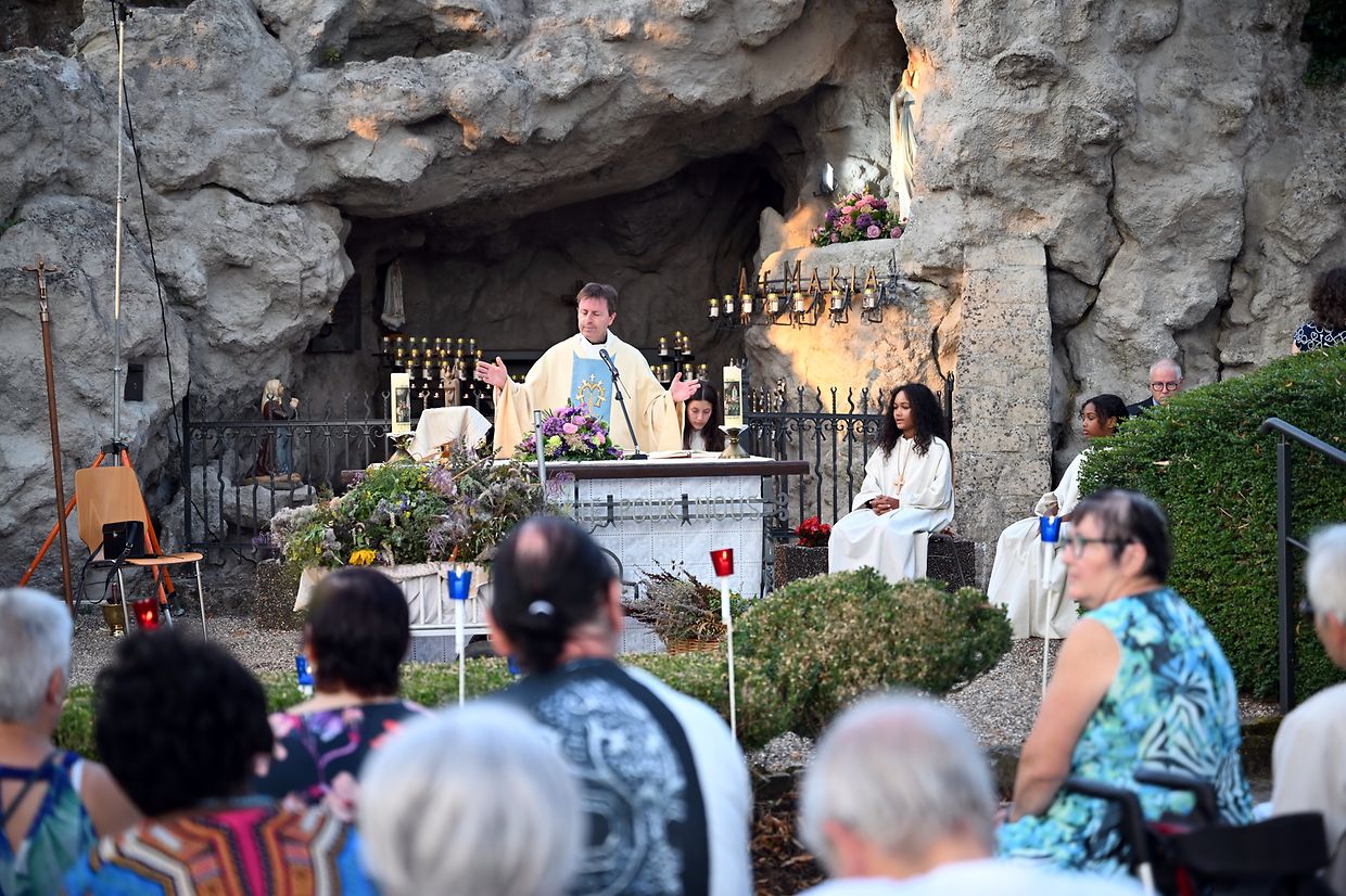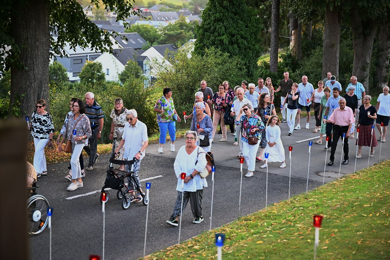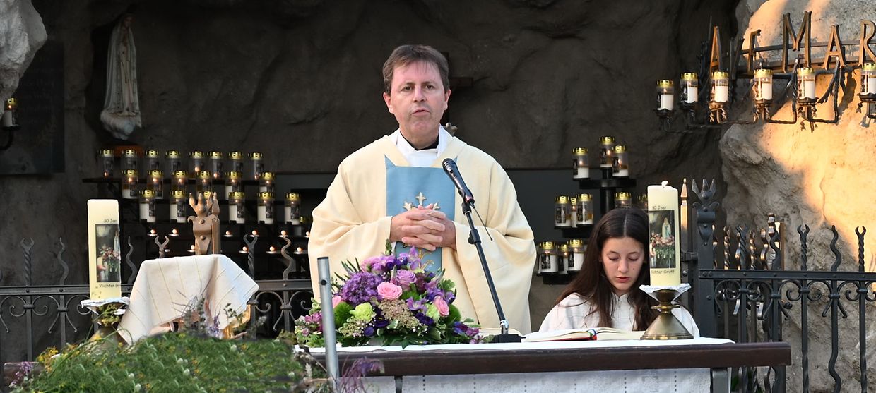Liichterprëssioun a Festmass bei der Lourdes- Grotte zu Viichten