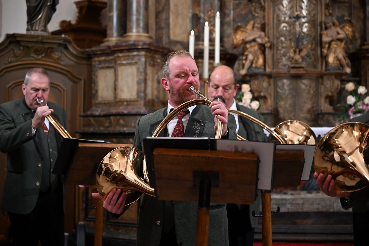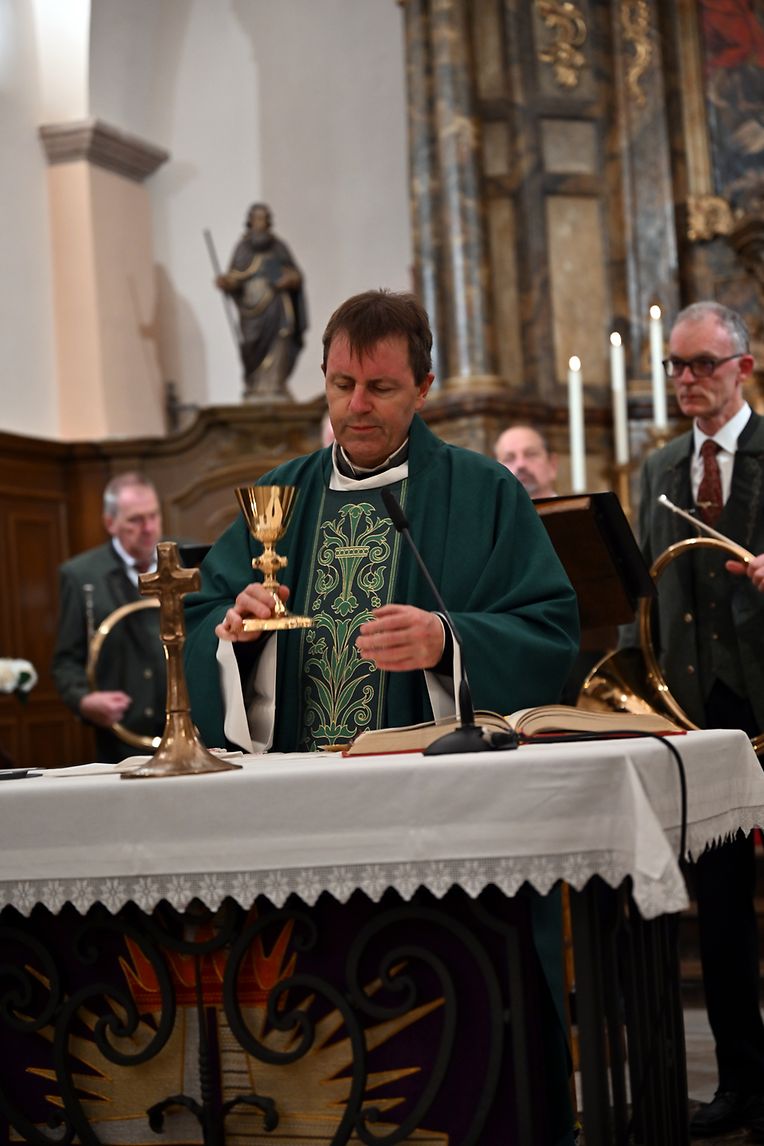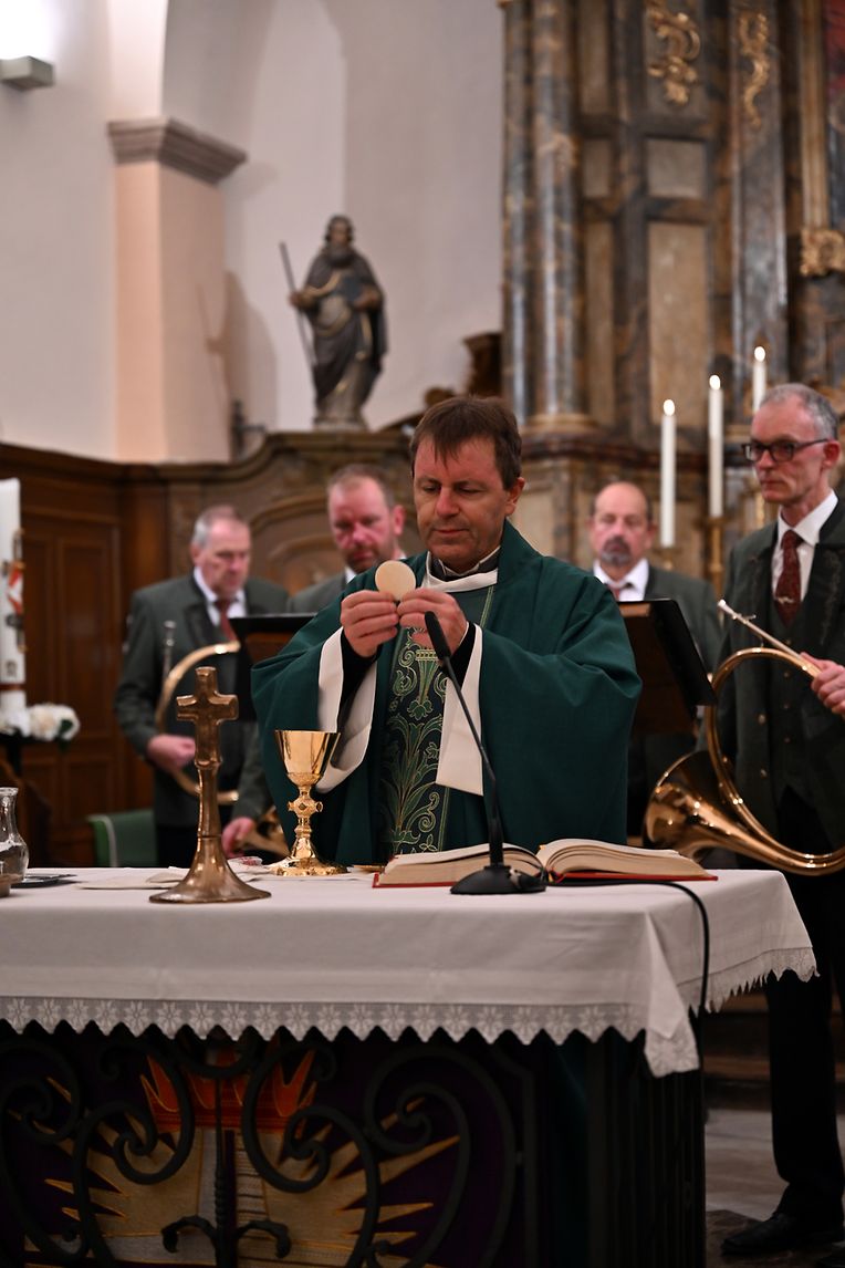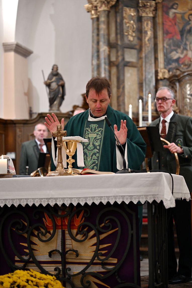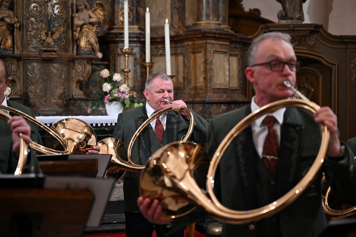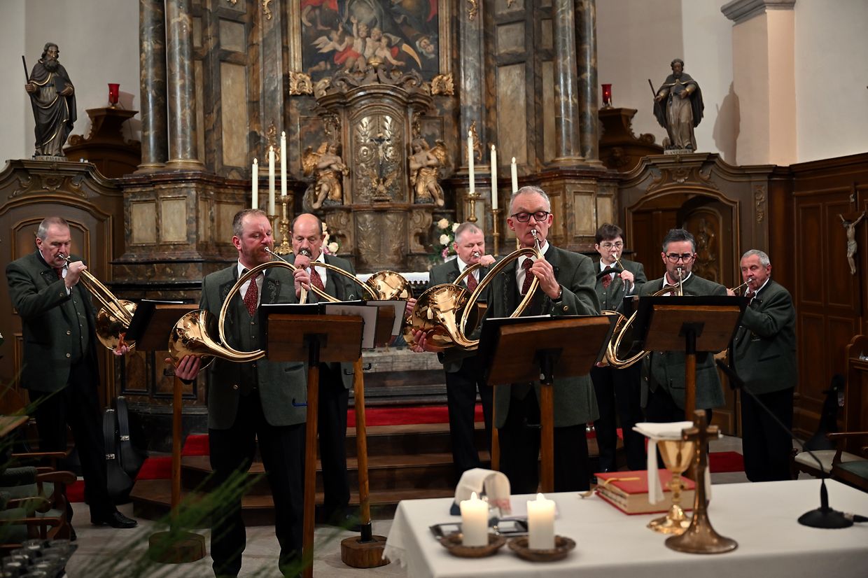 Wal: Zënter 2001 ass et di schéin Traditioun vun de Réidener Juegdbléiser, vir d’Haupeschmass all Joer an engem aaneren Eck vum Réidener Kanton ofzehaalen. An der mat schéiner Juegddekoratioun gerëschter Kierch zu Wal gouf de Gottesdëngst dest Joer dann vum Paschtouer Jacques Bagnoud zelebréiert. Passender Weis hun di Réidener Juegdbléiser ënnert der Leedung vum Marc Pletgen fir d’Verschéinerung vun der Hubertusmass gesuergt. A senger Predigt ass den Jacques Bagnoud op d’Missioun an d‘Passioun vum Jeeër an der Natur ënnert hirem Schutzpatroun dem hl. Hubertus agaangen. Séin spezielle Merci huet hien de Réidener Juegdbléiser ausgesprach fir di schéin Traditioun, d’Haupeschmass all Joers op en neis mat hiren klangvollen Instrumenter ze verschéineren. Och de President Guy Schank huet zum Schluss vun der Mass all Bedeeligten säin Merci ausgedrëckt, déi zur Gestaltung vun der 34. Haupeschmass zu Wal beigedroen hun. Mat engem vun de Juegdbléiser offréirertem Concert mat Juegdmusek beim Fâkelschäin an engem Glas Glühwäin huet dess schéi Feier zu Wal hiren würdigen Ofschloss fond. (CR) (Foto: Charles Reiser)