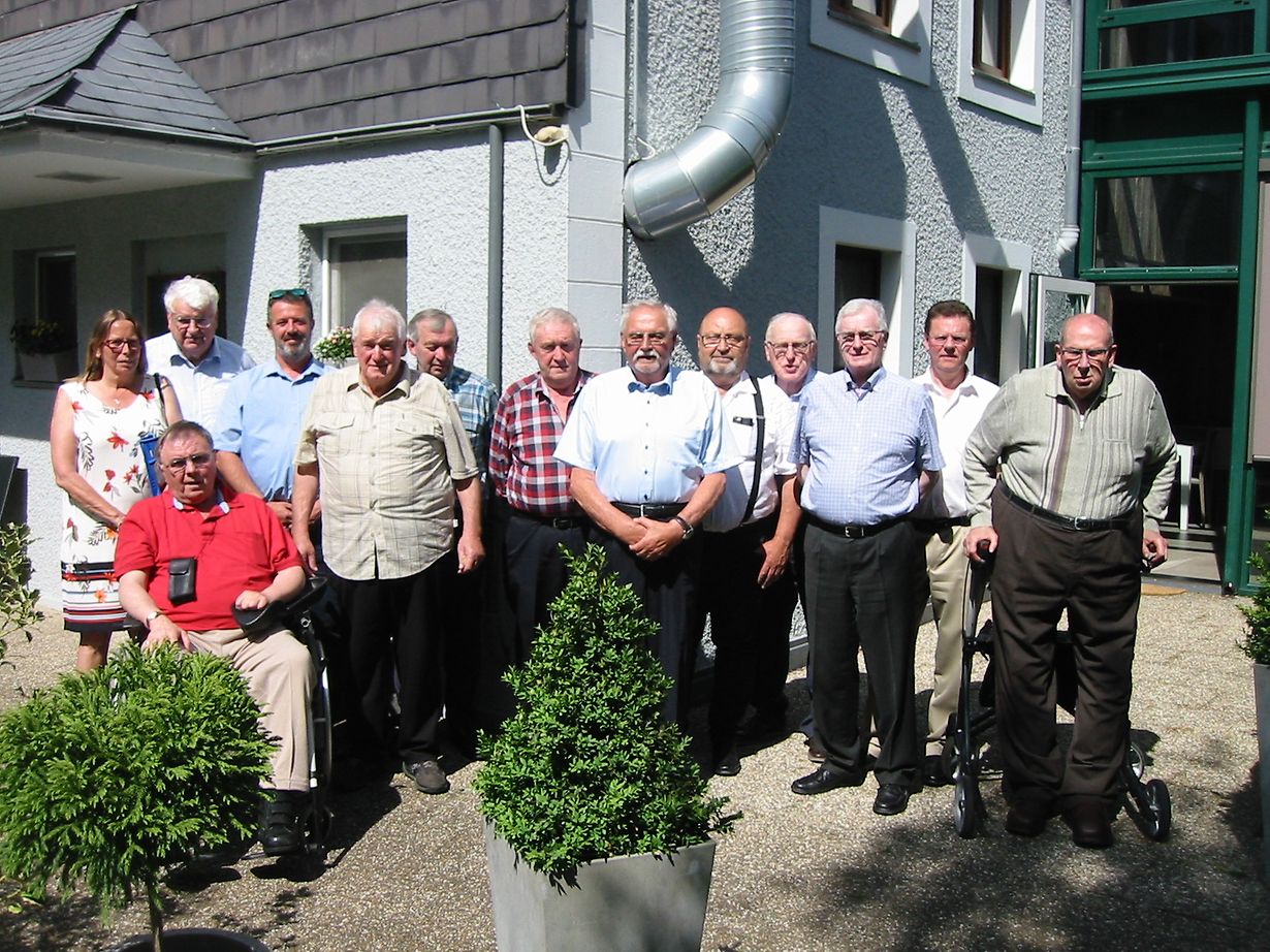 Christnach.- Konveniat. Vor 16 Jahren wurde die « Amicale vun de Chrëstnecher Eedemen » auf Initiative von Pierre Majerus und Aloyse Jacob ins Leben gerufen. Mitglied dieses Freundeskreises können all die Männer werden, die mit einem « Chrëstnecher Meedchen » verheiratet sind. Kürzlich trafen sich die Eedemen wieder zu einem Konveniat, und die Organisatoren Aloyse Jacob, Charel Schmit, Patrick Schaack und Paul Mathes hatten für diesen Tag ein anspruchsvolles Programm zusammengestellt. Das Treffen begann mit einer Messe in der Kirche von Christnach, die von Pfarrer Robert Kuzwela zelebriert wurde. Der Gottesdienst wurde gesanglich verschönert durch Martine de Nutte, die an der Orgel von Daniel Mantrisi begleitet wurde. Im « Hentgesbau » in Waldbillig wurden die Teilnehmer von Bürgermeisterin Andrée Henx-Greischer und dem Schöffen Théo Moulin empfangen, wo Willy Fuchs im Namen aller Teilnehmer den Gemeindeverantwortlichen den Dank der Amicale aussprach. Das Treffen wurde abgeschlossen mit einem ausgezeichneten Mittagessen im Restaurant Gudde Kascht in Haller, wo zahlreiche Ankekdoten aus der gemeinsamen Schulzeit aufgefrischt wurden.