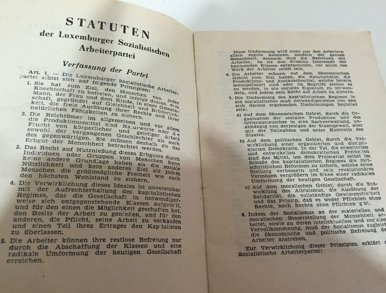 En feuilletant cette ancienne carte de membre du Parti Ouvrier Socialiste qui date de la fin de la seconde guerre mondiale, on se dit que mine de rien, elle porte en elle un pan de l’histoire du mouvement socialiste qui a servi des générations de luxembourgeois.