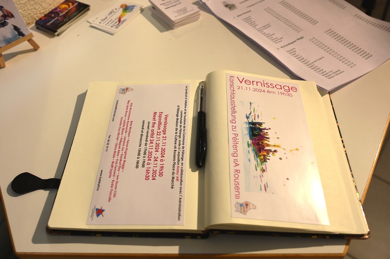 Um Vernissage den 21. November huet de Vizepresident Jacques Schwachtgen vum Péitenger Syndicat d'Initiative et de Tourisme déi zahlräich Visiteure begréisst an de Kënschtler fir dës schéin Ausstellung gratuléiert. D'Presidentin vun Hobbykënschtler Lëtzebuerg asbl Eliane Lothritz, huet dem Syndikat Merci gesot fir déi gutt Zesummenaarbecht an d'Organisatioun, sou wéi och der Gemeng, vertrueden duerch Madame Raymonde Conter, den Nico Barnabo an den Éierebuergermeeschter Roger Klein.