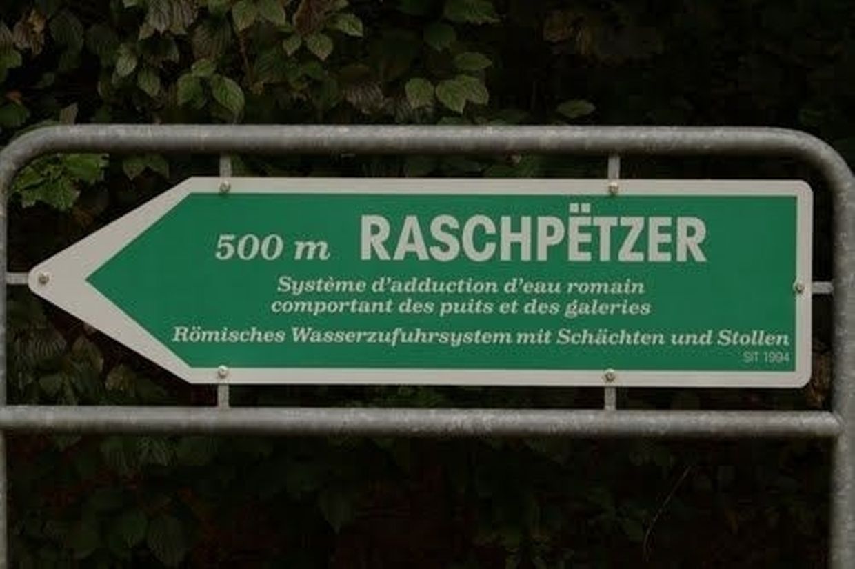 Le qanat des «Raschpëtzer» dans la forêt de Helmsange est un aqueduc souterrain, datant du temps des Romains, en très bon état de conservation. Il pourrait comprendre environ 30 puits. Ces puits, dont les plus profonds atteignent 36 m, sont – sauf exception – taillés dans le roc et reliés entre eux par une galerie principale longue de 600 m, traversant le plateau «Pëtschend», et par un réseau encore peu connu de galeries secondaires. Les galeries servaient à acheminer l’eau captée au fond dans une canalisation en pierres sèches vers les résidences romaines se trouvant dans la pente ensoleillée de la vallée de l’Alzette.
