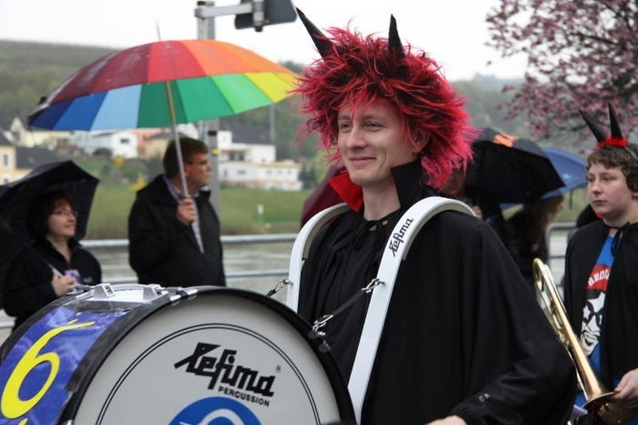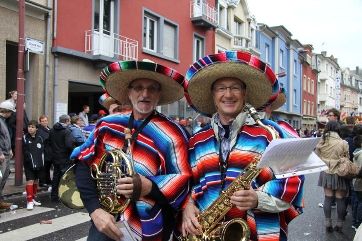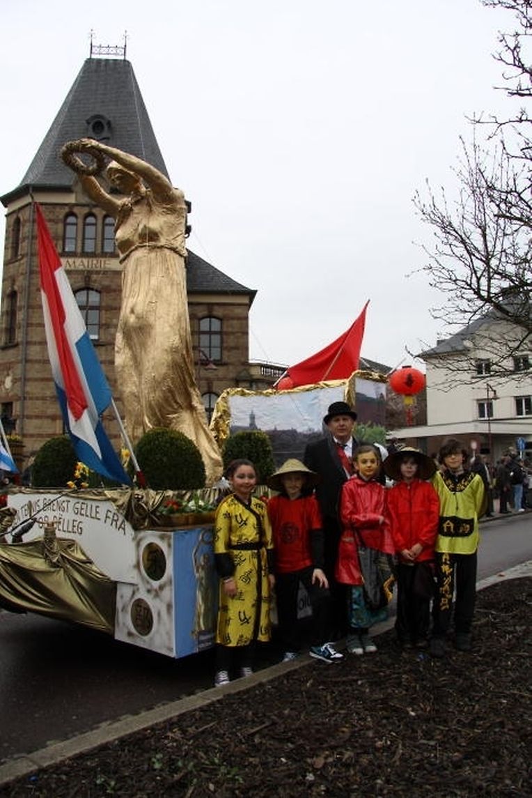 Pünktlich um 14.33 Uhr bewegte sich der Zug von der Moselesplanade, über die Spatz, durch die Grand-Rue, am Rathaus vorbei durch die Route de Luxembourg bis zum Kulturzentrum. Dabei hatten die Jecken einmal mehr keine Mühen gescheut, um nicht nur die Schaulustigen für sich zu begeistern, sondern auch die Jury, die Preise an die besten Fußgruppen und Festwagen verteilte. So traten die Figuren aus dem Dschungelbuch, Asterix und Obelix, fleißige Bienen, Big Mama's, Eisbären, Clowns, Piraten sowie Cowboys und Indianer auf. Eine Gruppe brachte das Hofbräuhaus an die Mosel, während andere auf Seefahrt gingen oder den Wilden Westen bevorzugten. Aber auch die „Gëlle Fra“ hatte ihren Sockel erneut verlassen, um einen Ausflug zum tiefsten Punkt des Landes zu machen. Den Abschluss bildete „Bratzelkinnek Roland I.“ mit seinem Festwagen. Begleitet wurde er von seinen sechs Prinzessinnen Carmen, Catherine, Nathalie, Petra, Pascale und und Nadine.