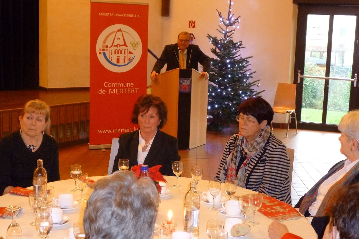 An Amiperas-Präsident und Bürgermeister Gust Stefanetti war es zuerst, allen anwesenden Mitgliedern ein glückliches und vor allem gesundes neues Jahr 2015 zu wünschen. Alsdann beglückwünschte er im Namen der Amiperas-Sektion alle Jubilare zum runden Geburtstag und überreichte zusammen mit Amiperas-Landespräsident Jeannot Belling je ein kleines Präsent an Clara Folschette-Ueberecken für ihren 90. Geburtstag sowie an Elisabeth Hirtt-Hirtt und Anne Pasteleurs-Weber für ihr 85-Lebensjahr. Mit einem Geschenk bedacht und geehrt für 80 Lenze wurden außerdem Julie Daubenfeld-Warken, Hedwig Jankowoy-Bonacker, Lydie Schartz-Grein, Marie Zeien-Eischen, Denise Dostert-Scheer, Odette Linckels-Ourth, Margot Alfter-Reitz und Jos. Dostert. Seit 1983 organisiert und koordiniert Martha Stefanetti-Schuh die bei den Mitgliedern beliebte Porte ouverte der Amiperas. Ihr wurde deshalb für ihre über 30jährige verdienstvolle Arbeit ein schöner Blumenstrauß überreicht.