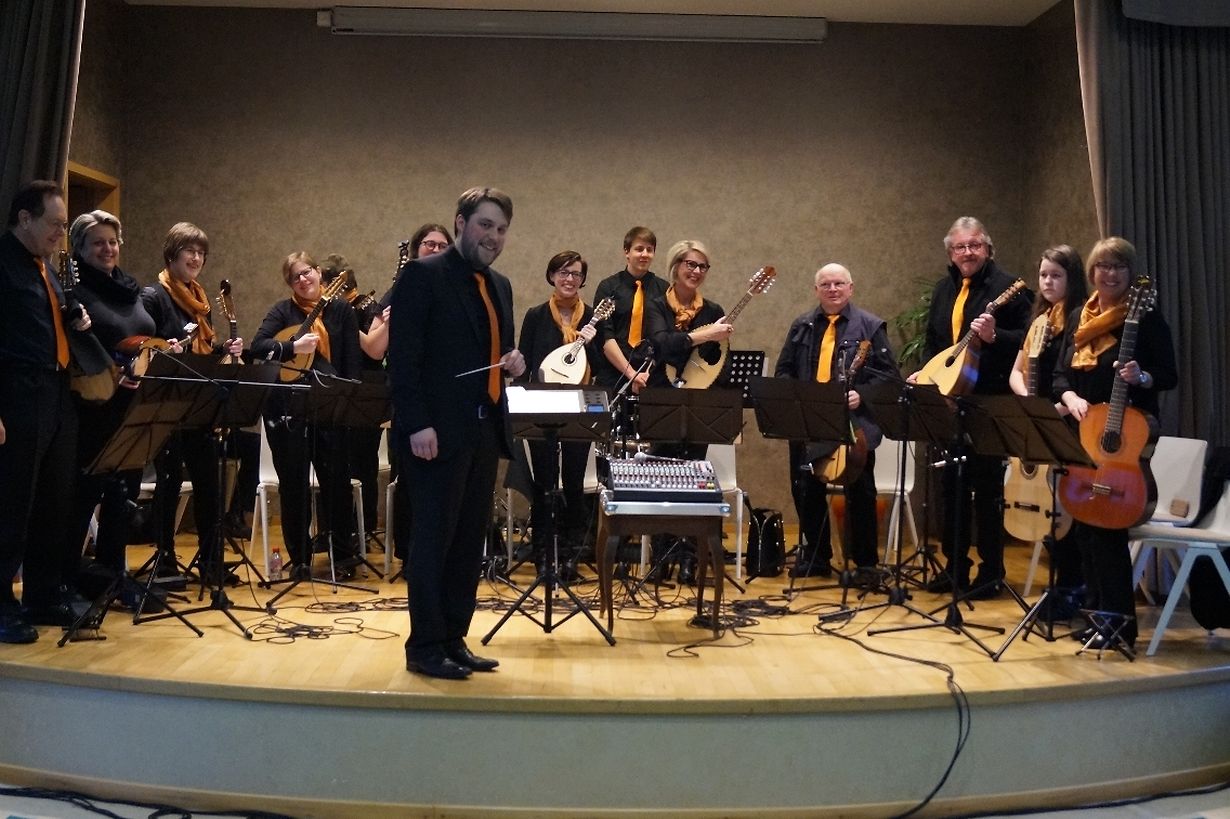 Auf Einladung der Amicale "Op Lamp" waren am vergangenen Sonntag, dem 15.01.2017 die Musiker von "La Lyre Godbrange, Société Mandoliniste asbl" zu Gast in der Maison de Soins Op Lamp Wasserbillig. Mit hervorragenden Interpretationen von Stücken wie "Sound Of Silence", "Paloma", "Hotel California" oder "Halleluja" verstanden Sie es bestens, ihr Publikum zu begeistern. Unter ihrem Dirigenten Patrick Christen trugen die Mandolinisten und Gitarristen aus Godbrange darüber hinaus in überzeugender Weise mehrere luxemburgische Lieder vor, und zwar in einem Potpourri aus "Zu Arel op der Knippchen", "Meedchen vu Gëtzen" und "Un der Atert". Für die Bewohner der Maison de Soins Op Lamp und ihre Angehörigen war es ein angenehmer Sonntag Nachmittag.
