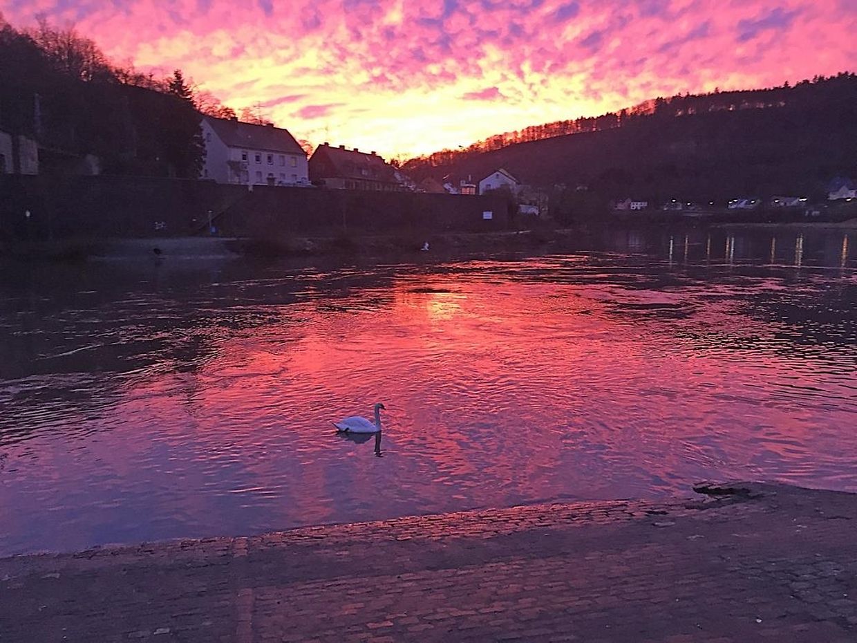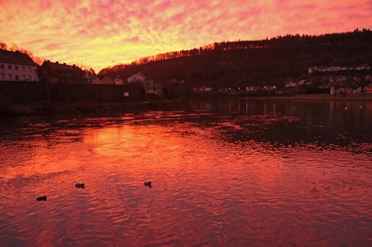 Haut de Moïen, den 04.Februar 2017 um 8 :45 h , én impressionanten Sonnenopgang op der Spatz zu Waasserbëlleg firun den Ausleefer vu kräftege Stierm, déi iwwer Frankräich an ons Land eranzéien,