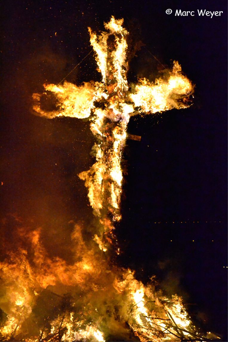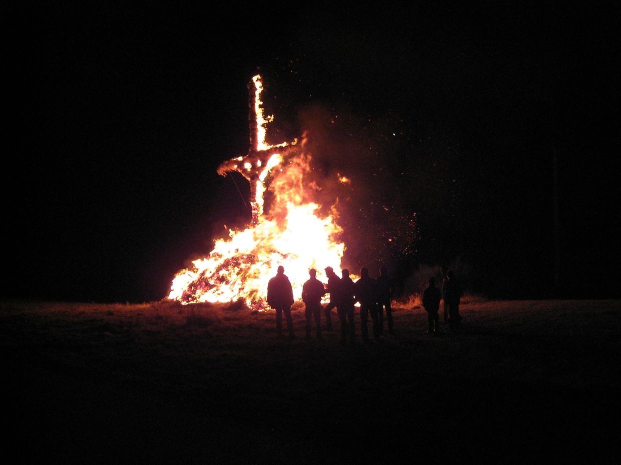In den meisten Fällen wird auch keine Burg an sich, sondern ein großes Kreuz verbrannt. Dabei handelt es sich nicht um ein christliches Kreuz, denn der Brauch an sich existierte wohl schon lange vor der Gründung des Christentums. Wo genau das Burgbrennen nun seinen Ursprung hat, ist nicht zu 100 Prozent bekannt. Allerdings wird vermutet, dass es auf die Kelten zurückzuführen ist. Demnach handelt es sich ursprünglich um einen heidnischen Brauch. Nach dem Winter veranstalteten die Kelten ein großes Fest. Einerseits um die bösen Geister des Winters zu verjagen, aber auch um den Frühling willkommen zu heißen. Zu diesem Anlass wurde ein großes Rad- oder Sonnenkreuz verbrannt, das den Jahreszeitenzyklus symbolisieren sollte. Das Kreuz, das wir heute noch kennen, wäre dann die vereinfachte Darstellung des keltischen Symbols.
