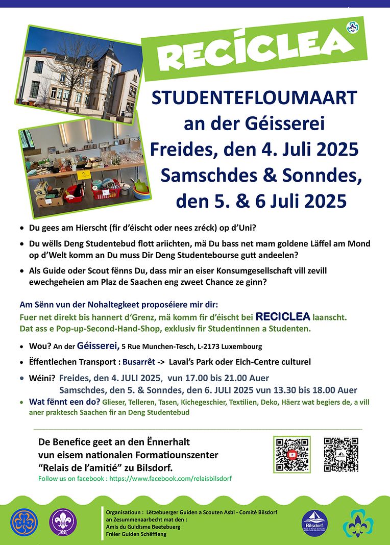 · Als Guide oder Scout fënns Du, dass mir an eiser Konsumgesellschaft vill zevill ewechgeheien am Plaz de Saachen eng zweet Chance ze ginn?