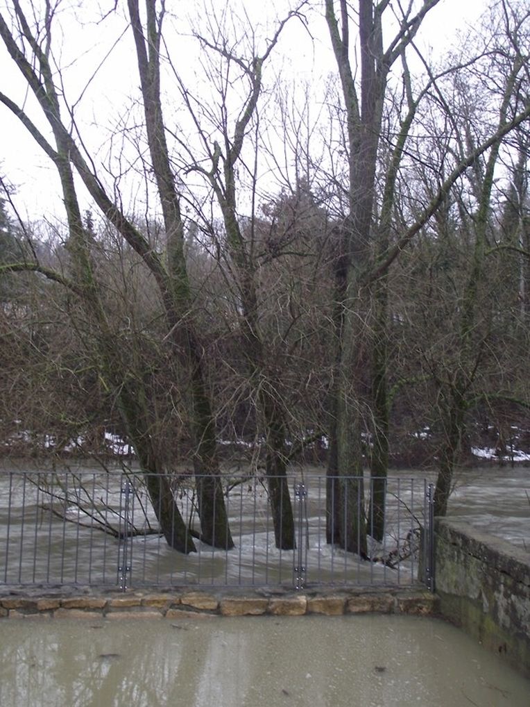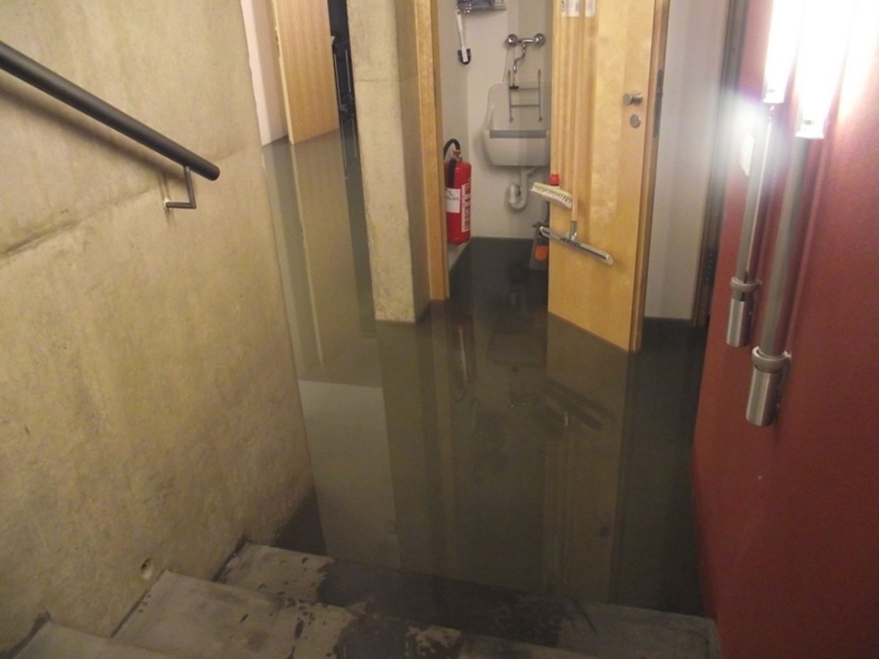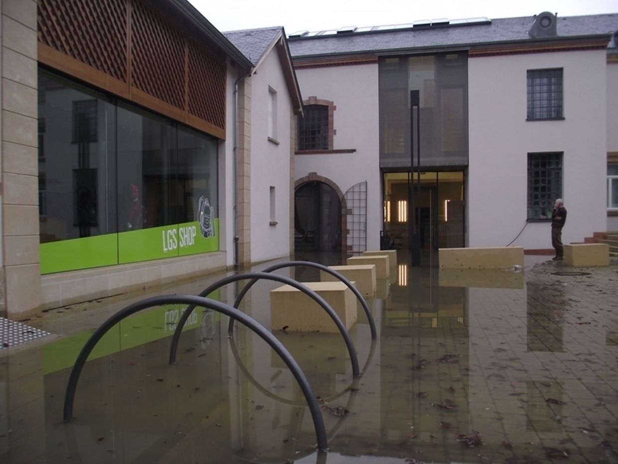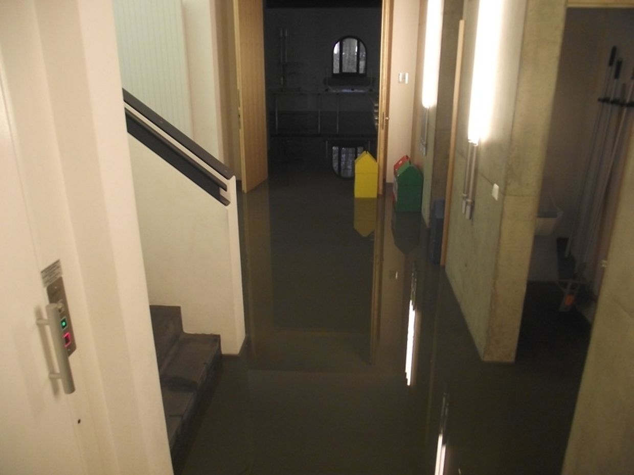 Wei een op de Fotoen vun erkenne kann, ass d'Waasser nett virun der Dier stoe bliwwen. De Scoutszenter stung de Moien ënner Waasser. Schued wir dobai awer su gut wi keen geschitt mengt den Tom Biwer, deen am Zenter schafft.
