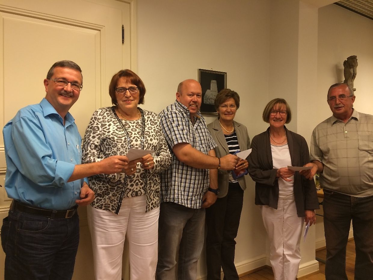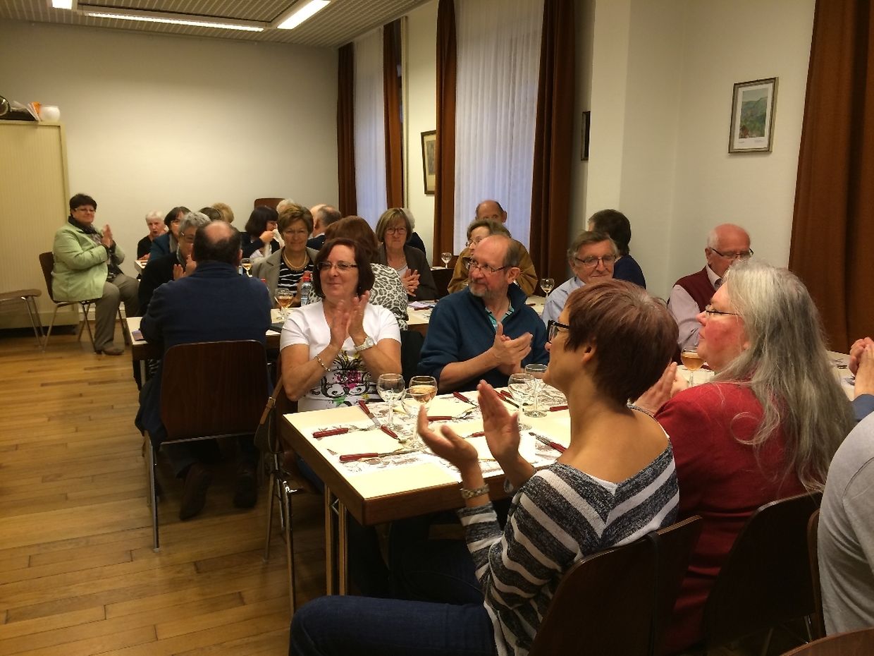 Im Rahmen eines gemütlichen Abends wurde dann auch der diesjährige Erlös des Festes an 3 Hilfswerke überreicht die im nördlichen Teil der Haupstadt tätig sind und auch zum Teil mit Vereinen des Pfarrverbandes zusammen arbeiten. Es handelt sich dabei um « ATD Quart Monde », « Vie naissante », sowie den « Cent Buttek » aus Beggen.