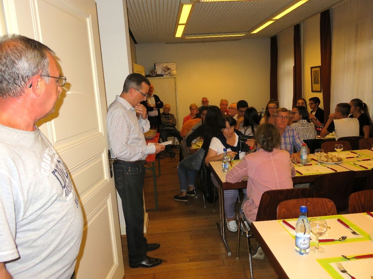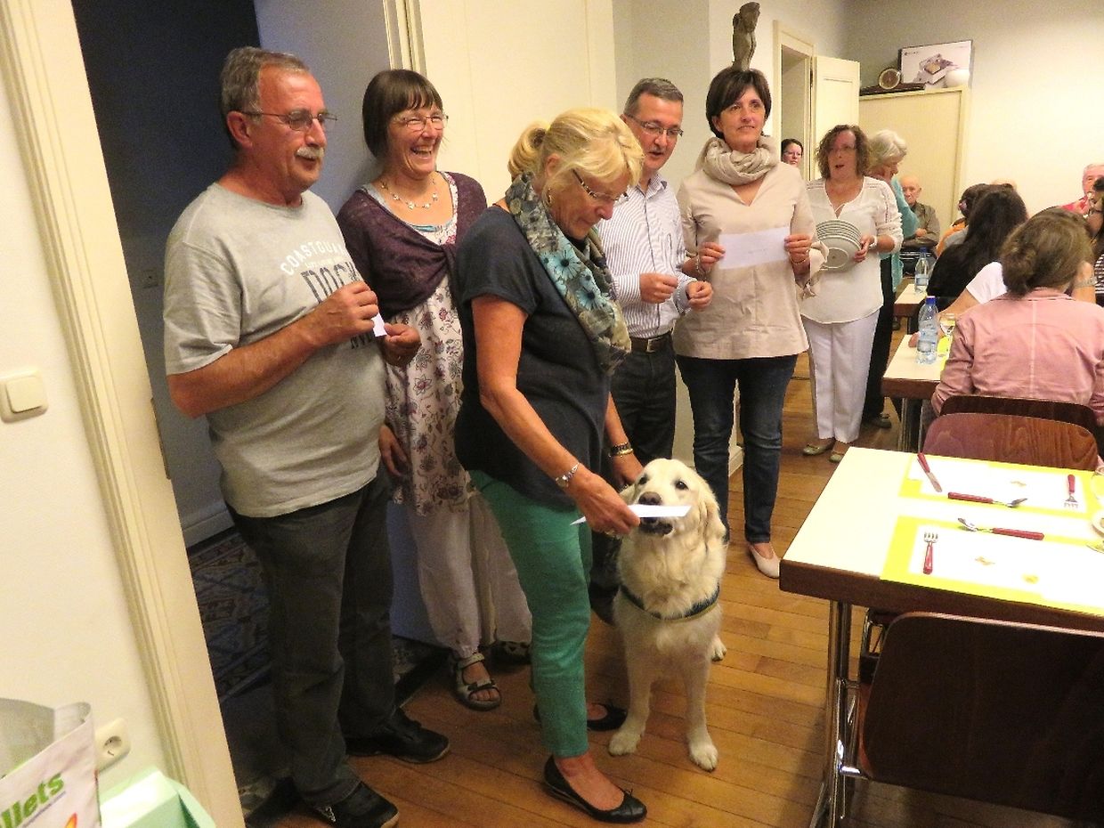 Nach einem kurzen Rückblick auf die geleistete Arbeit und den Dankesworten an alle die zum Erfolg des Festes beigetragen hatten ergriffen die Vertreter der jeweiligen Hilfsorganisationen das Wort und erläuterten den Anwesenden die Aktivitäten die sie im Rahmen ihres Engagements anbieten und somit den notbedürftigen Menschen helfen. Es handelt sich dabei um die « Fondatioun Wonschstär », die « ASA Honn asbl », sowie die « LISEL asbl » die das « 2 Generatiounenhaus vu Beggen » verwaltet und wo mit dem Geld zwei Schlafzimmer für Studenten ausgestattet werden.