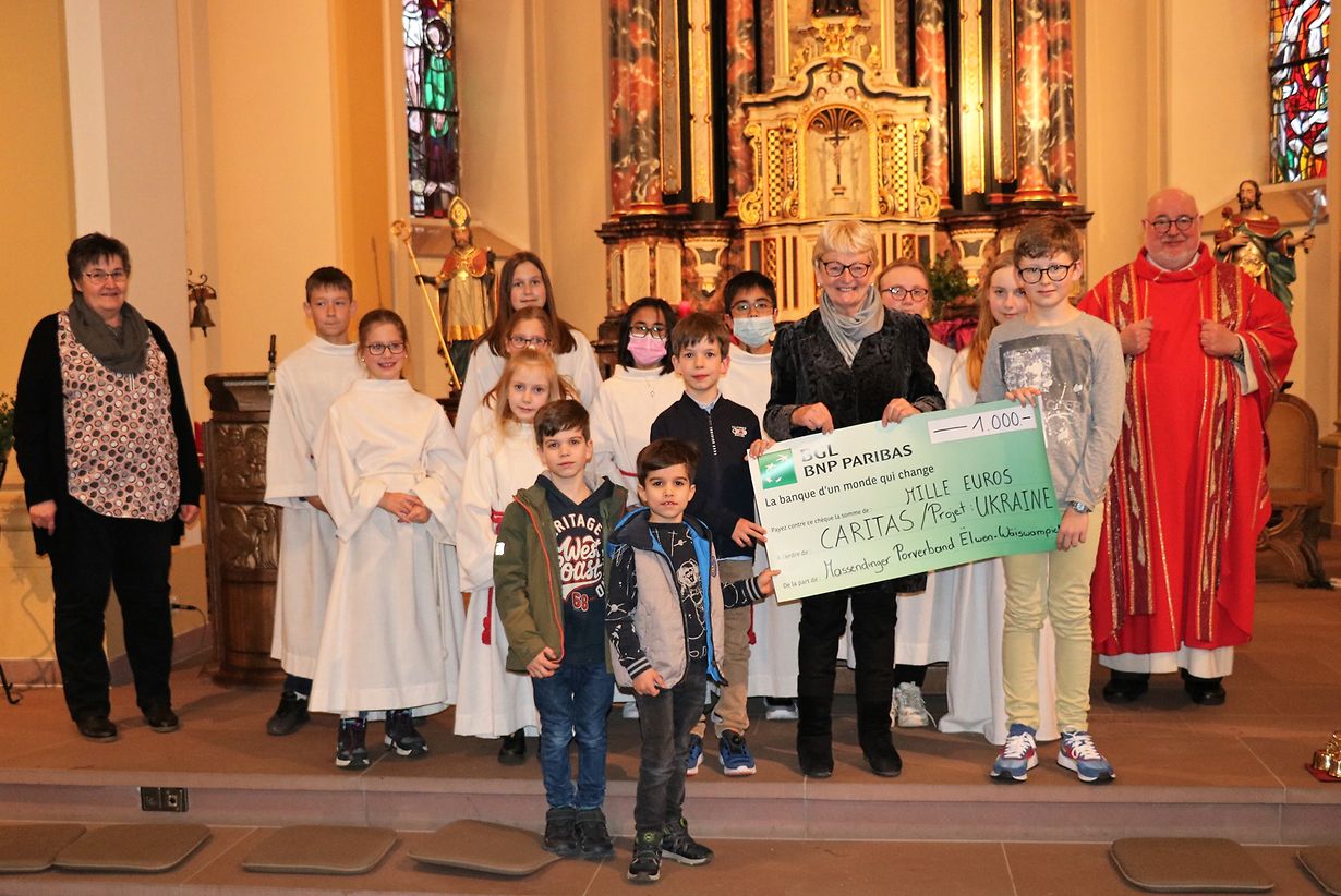 Op Pällemsamschdeg hunn Massendénger aus der Por Ëlwen-Wäiswampich der Madamm Marie-Josée Jacobs, Presidentin vun der Fondatioun Caritas, en Chèque an Héicht vun 1000 € kennen iwwerreechen, deen der Ukraine sollt zegutt kommen. Säit ville Jore trieden Massendénger ënnert dem Impuls vun Engagéierten an Mammen fir Mannerbemëttelten vun der Gesellschaft an, fir hinne bäizestoen. Duerch hier Bastel-Aktiounen op Ouschteren an och an der Adventszäit koumen esou schonn en etlech Suen zesummen, déi si all Joers op en Neits enger karitativer Organisatioun zur Verfügung stellen.