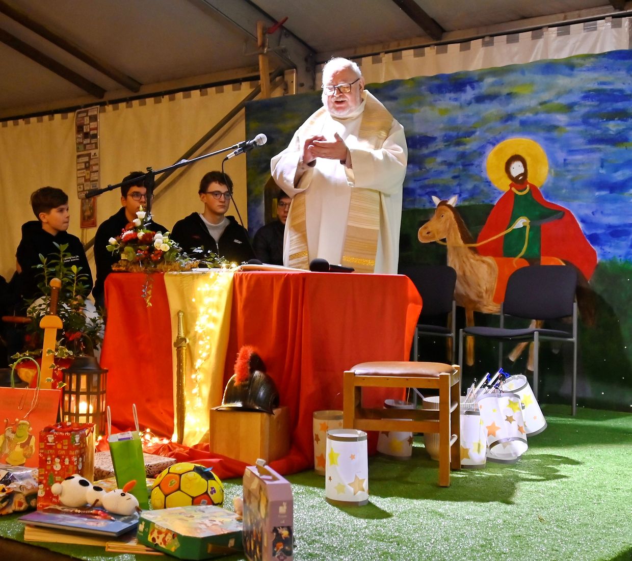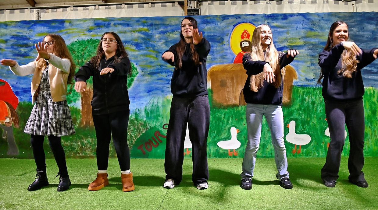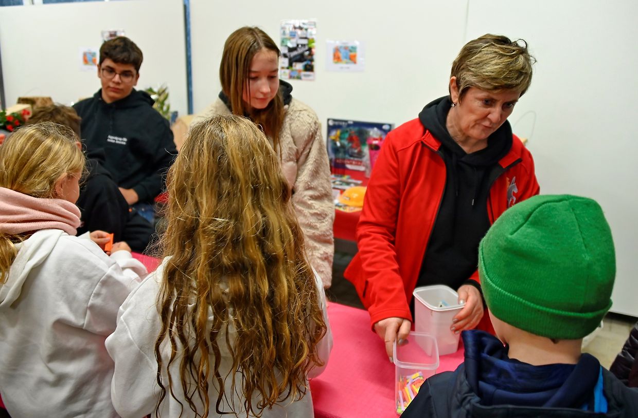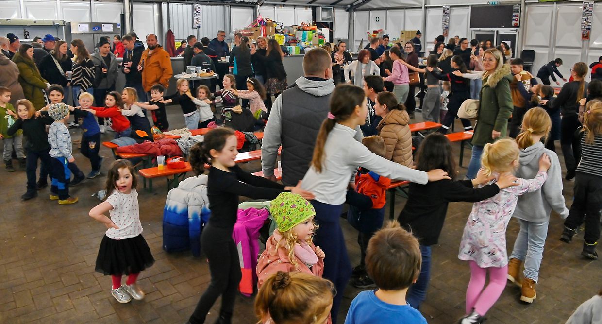 Im Zelt bekam jedes Kind ein Boxemännchen geschenkt. Die Jugendgruppe "Jonker ënnerwee" hat die musikalische Animation übernommen und die Kinder animiert.