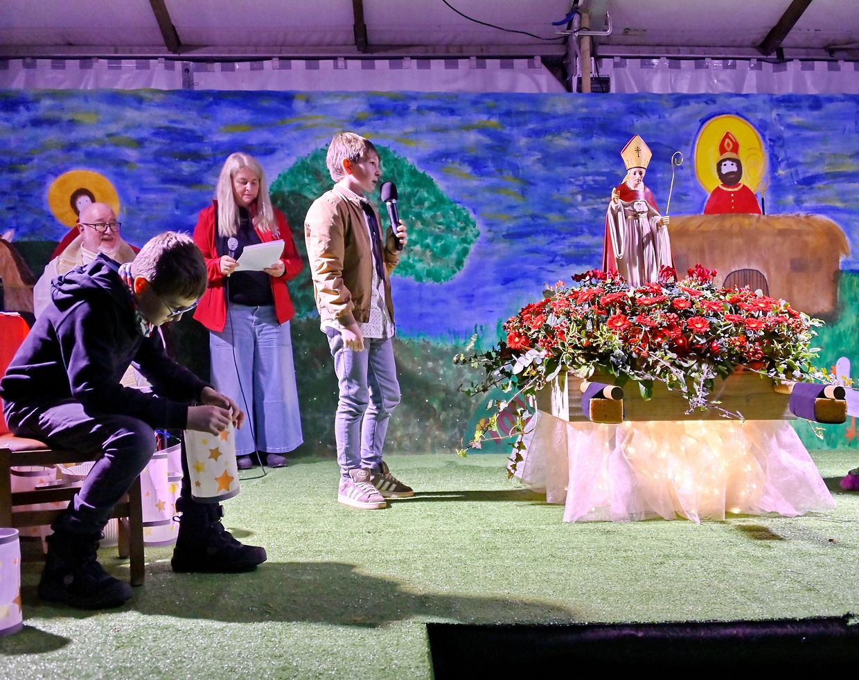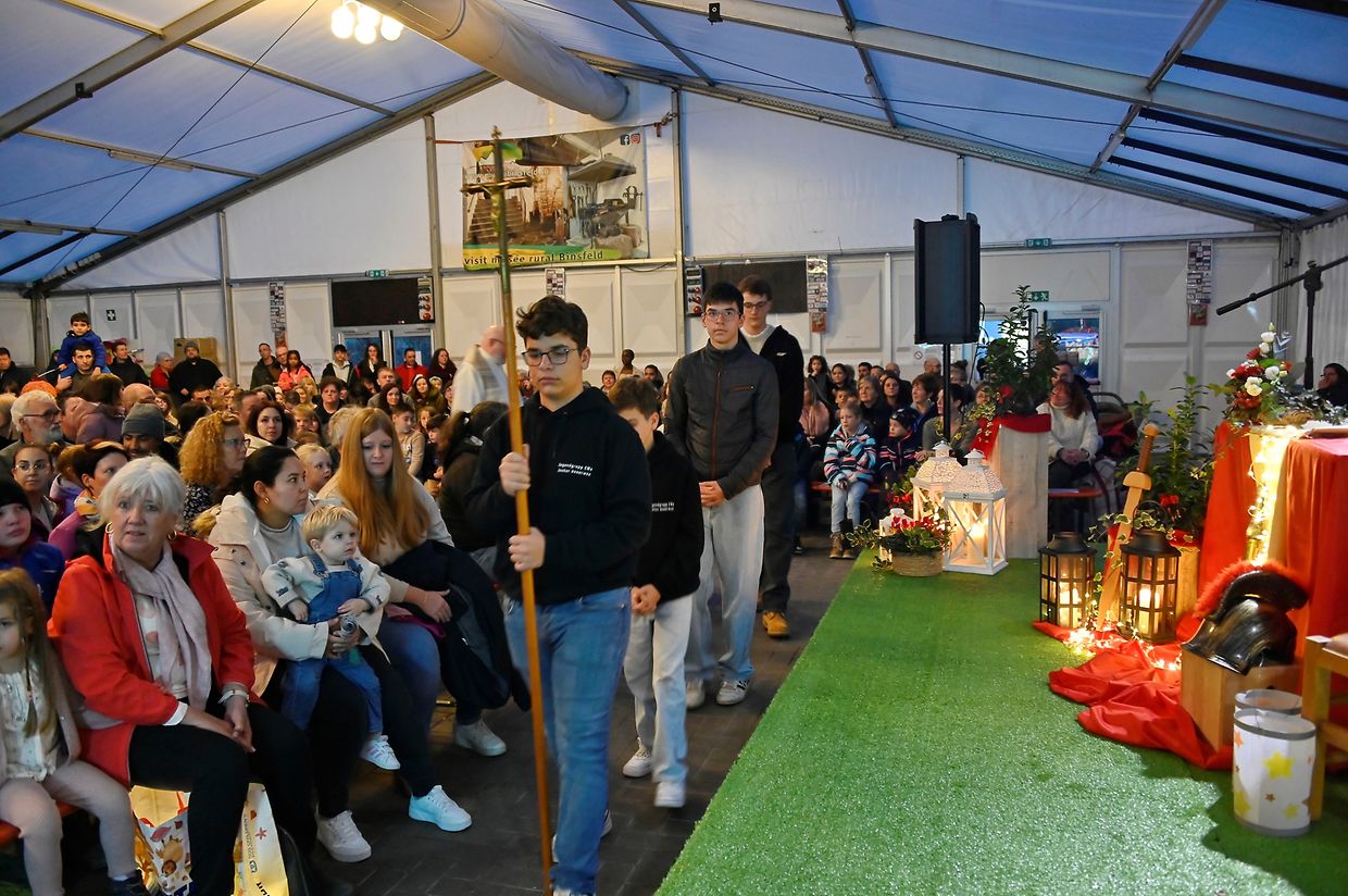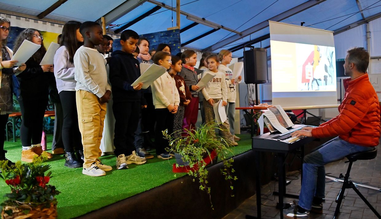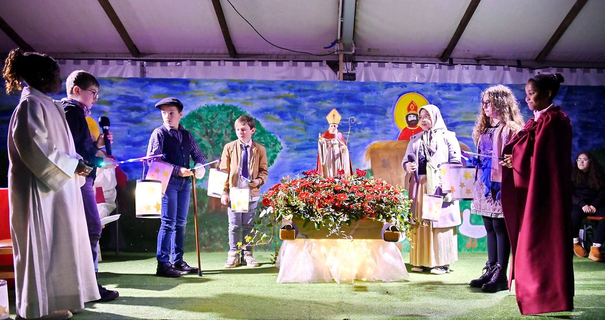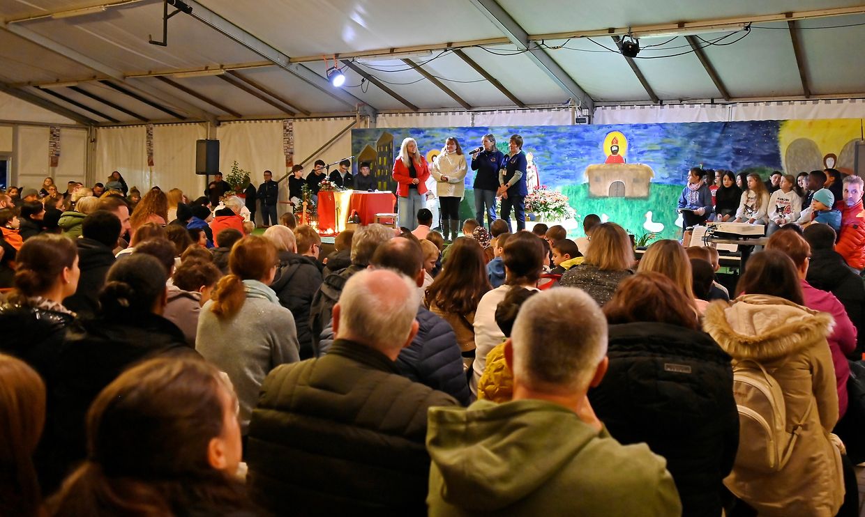 Der Kinderchor Adesso sang mit voller Kraft die vertrauten Martinslieder "Ich geh mit meiner Laterne" und "St Martin". Die Vertreter der zwei Sozialorganisationen "Noël de la Rue" und "Sozialequipe Bouneweeg" stellten ihre Arbeit für die Obdachlosen in Luxemburg vor. Der Opfer der Martinsfeier sowie der gesamte Erlös geht an diese zwei Sozialorganisationen.