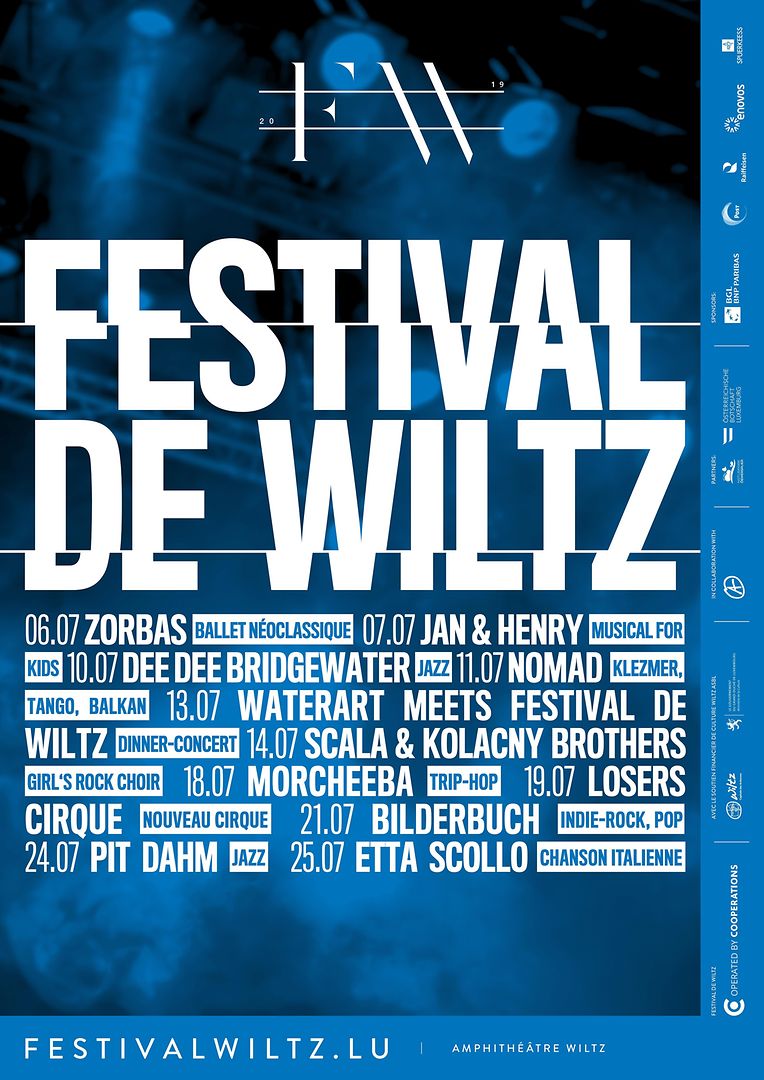 Bienvenue à la 67e édition du Festival de Wiltz! Pendant le mois de juillet, le traditionnel festival en Open Air - qui est devenu un des plus grands de la région - viendra à nouveau animer l’amphithéâtre du château de Wiltz. Au programme : concerts, soirées théâtres et performances artistiques. Tous les ans, plusieurs milliers de visiteurs trouvent le chemin dans le nord du Grand-Duché pour admirer des artistes internationaux, des Premières luxembourgeoises et des productions hybrides combinant différents arts. En 2019, le Festival propose à nouveau un mélange de spectacles, de musique et de culture dans une coulisse unique. A l’affiche : Morcheeba (UK), Bilderbuch (AUT), Scala & Kolacny Brothers (BEL), Dee Dee Bridgewater (USA) et Etta Scollo (IT). Les amateurs de cirque et de ballet néoclassique trouveront également leur compte avec Zorbas (GR), ou encore la Losers Cirque Company (CZE). Le production « WaterArt meets Festival de Wiltz » propose un concert de différentes harmonies, accompagnée de spécialités culinaires. Pour les adeptes du jazz et des concerts intimes, le Festival de Wiltz accueille cette année les musiciens luxembourgeois NoMad et Pit Dahm dans la tour des sorcières. Pour les plus jeunes, le Festival réserve le spectacle « Jan & Henry », une comédie musicale sur des suricates célèbres d’une série télévisée sur KIKA. En plus de la programmation culturelle, les visiteurs peuvent déguster des spécialités culinaires au sein du Food Village, créée à cet effet.