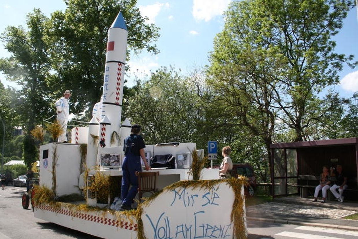 Um Punkt 15 Uhr fiel der Startschuss für den 62. Ginsterkorso mit immerhin über 40 Festwagen, Folklore- und Majorettengruppen, Musikkappellen sowie nationalen und internationalen Showbands. Allen voran fuhren zwei Festwagen der 750-Jahrfeier von Diekirch, die den eigentlichen Korso ankündigten.
