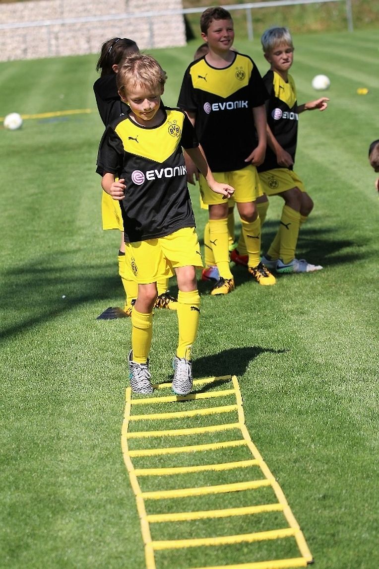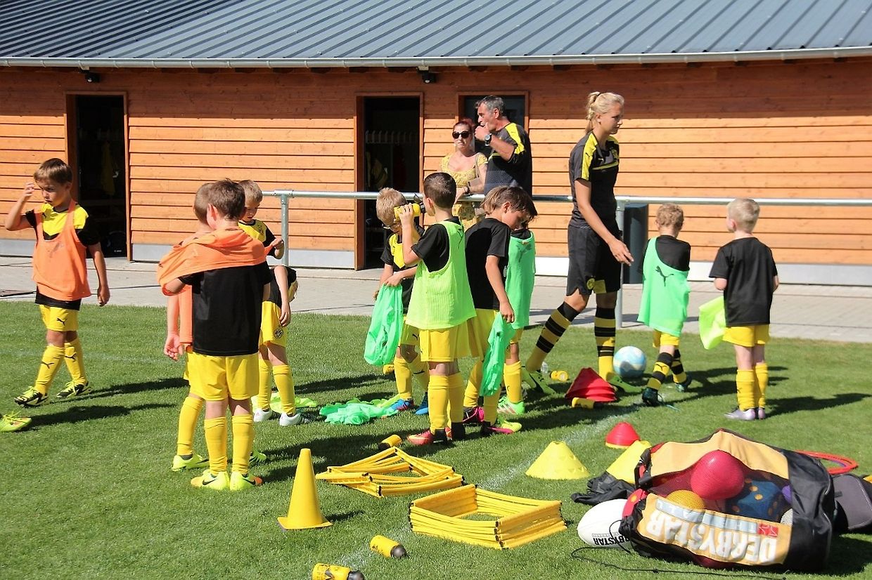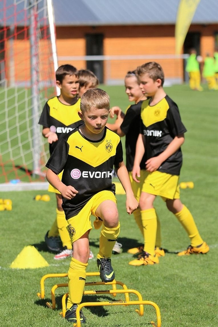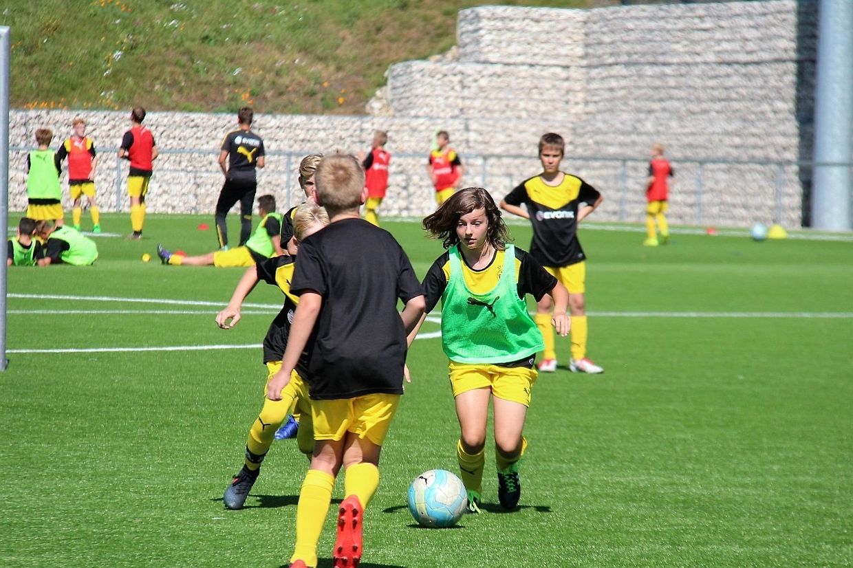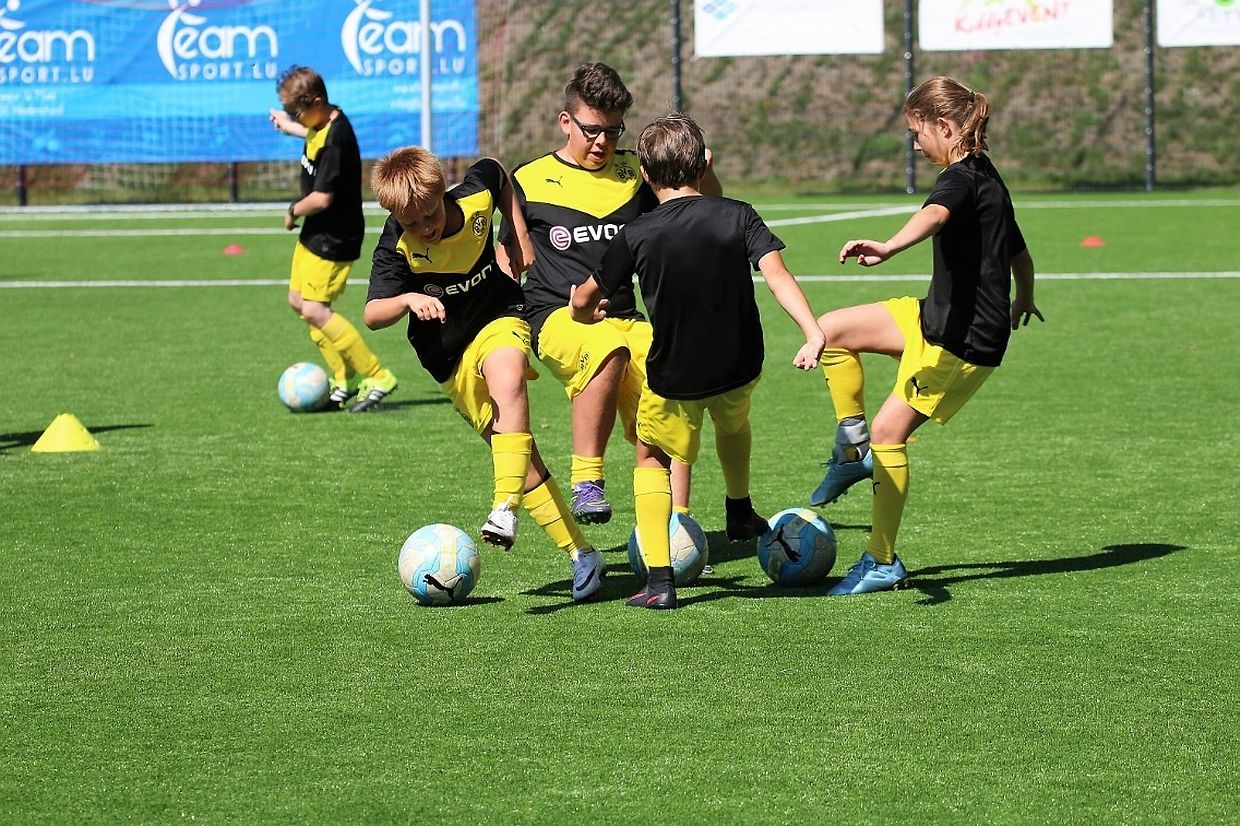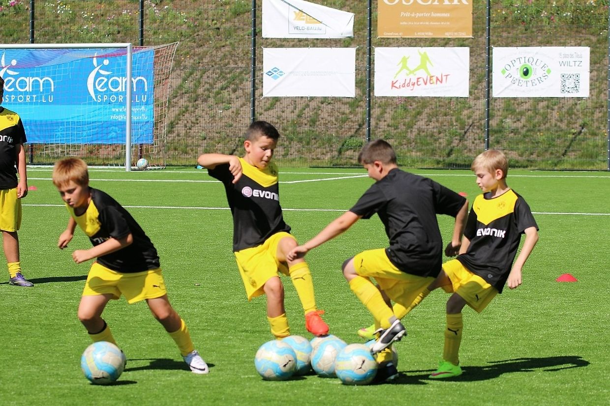 Noch die ganze Woche über nehmen 76 junge Fußballspielerinnen und Spieler auf der Anlage des FC Wiltz an einer Trainingswoche unter der fachkundigen Leitung von fünf Trainern der Evonik Fußballschule von Borussia Dortmund teil, einige Bilder..