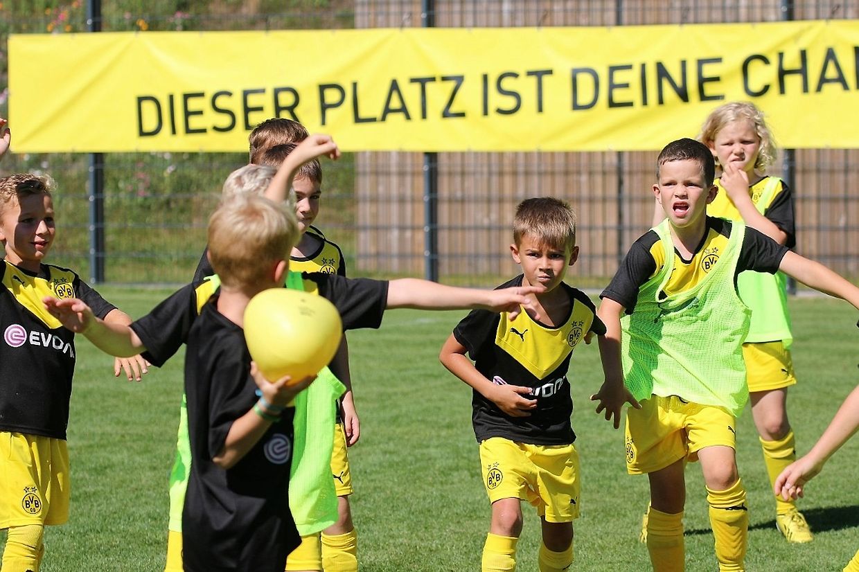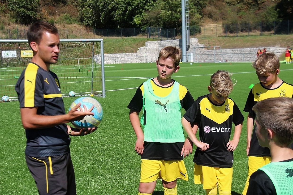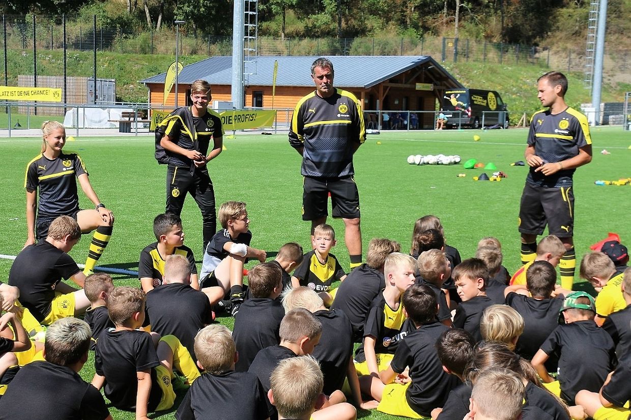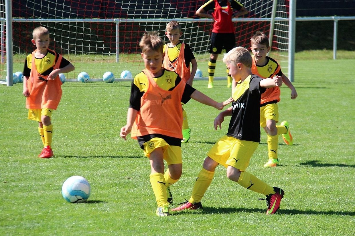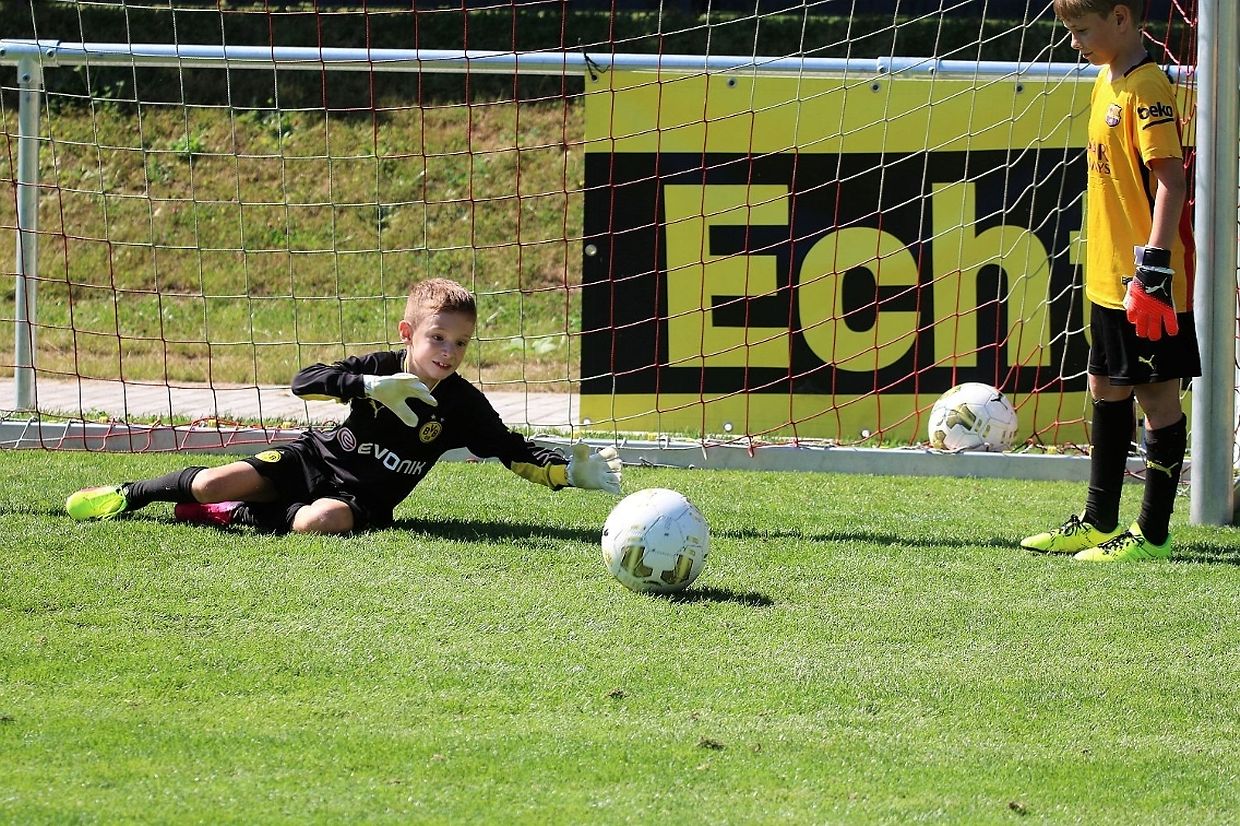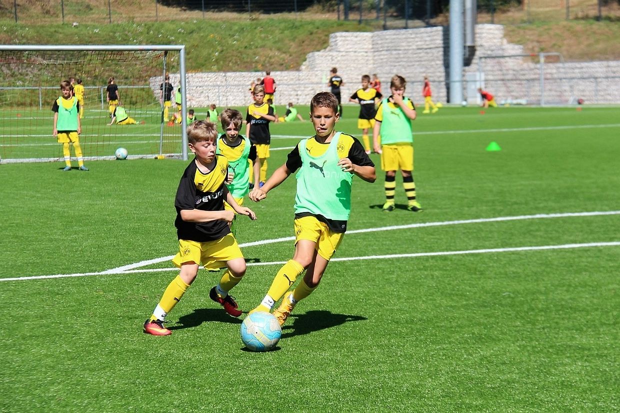 Noch die ganze Woche über nehmen 76 junge Fußballspielerinnen und Spieler auf der Anlage des FC Wiltz an einer Trainingswoche unter der fachkundigen Leitung von fünf Trainern der Evonik Fußballschule von Borussia Dortmund teil, einige Bilder..