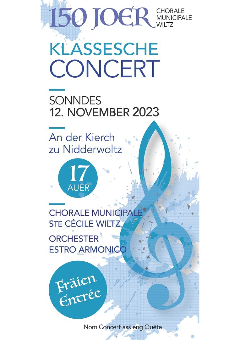 Jiddereen ass häerzlech invitéiert, den Entrée ass fräi, nom Concert ass eng Quête.