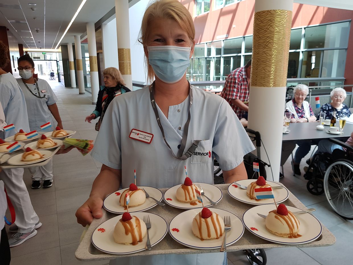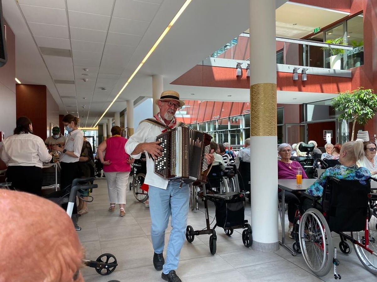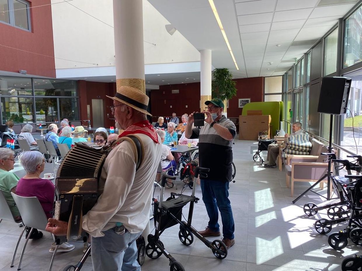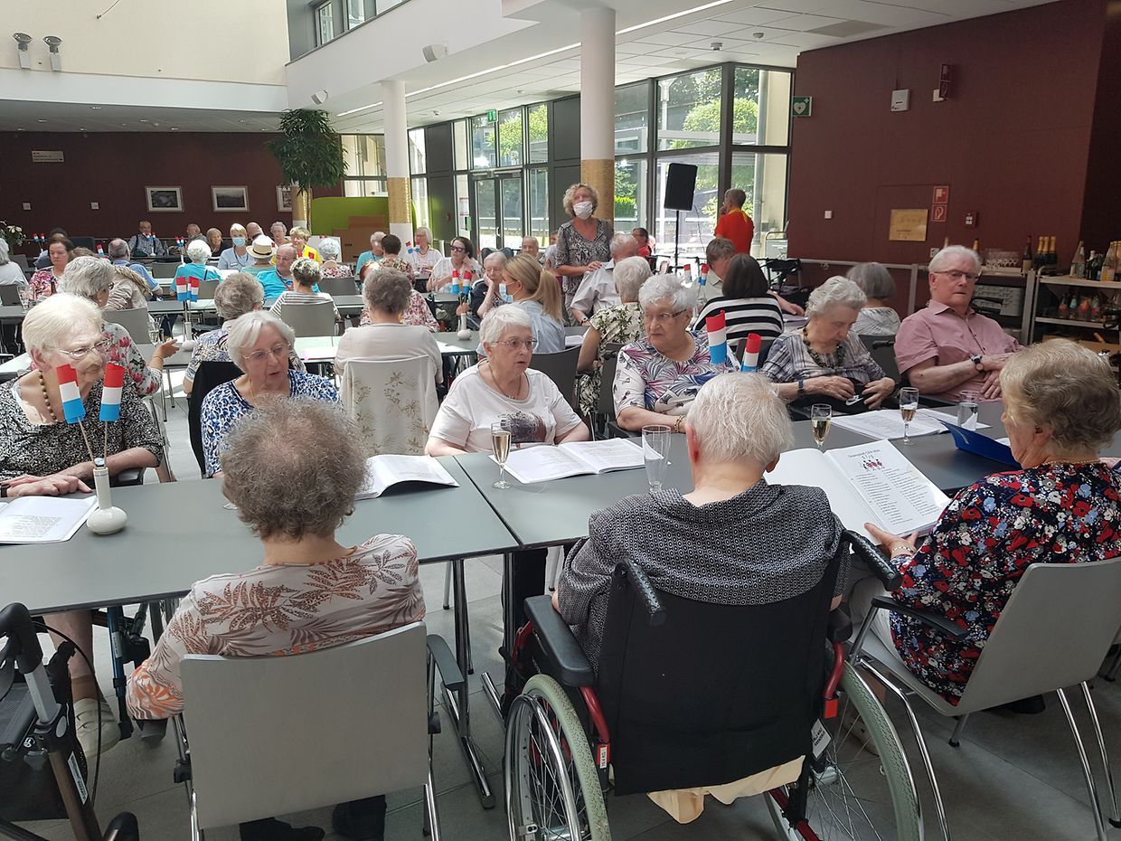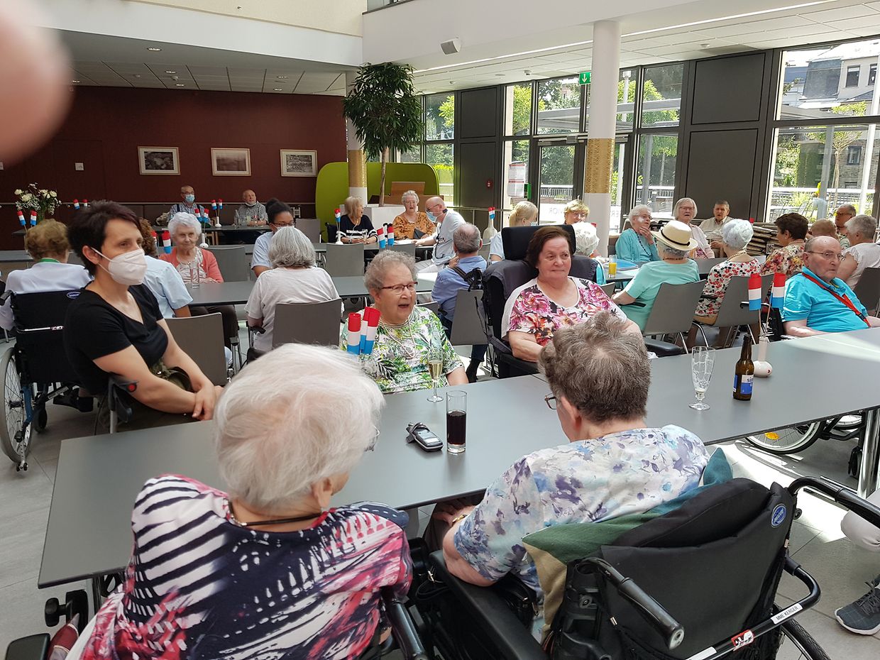 Vill Bewunner aus der Geenzebléi hatten sech Zäit geholl an wollten dës Feier nik verpassen.Bewunner waren begeeschter wéi den Musikant Nico Walisch durch d‘Reien spadséiert ass matt seng Harmonika an hott lëtzebuerger Lidder gesong, déi Bwunner aus hirer Kandheet kannt hunn. Alles hott kräfti gesong an geschunkelt. Natierlich war och fir den Honger an Duscht gesuerg, wéi bei allen Aktivitéiten vun der Amicale. Engt gutt Steck Kuch matt enger Taass Kaffi guff zerwéiert vun den Memberen aus der Amicale an dem Personal vun Servior. Zum Schluss hott alles kräftig mattgesong wéi den Här Walisch Nico d'Heemecht gepillt hot. Pensionären waren der Amicale ganz dankbar datt si hinnen hiren Alldag durch dës Féier konnten verschéineren.