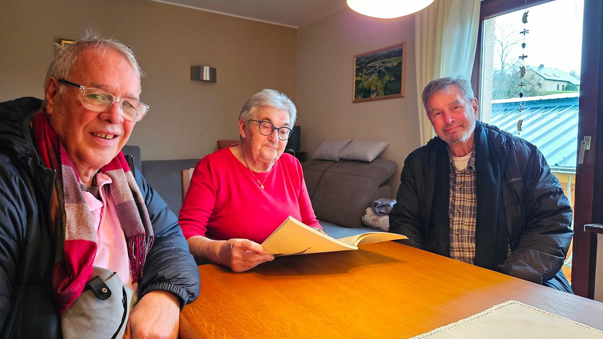 Mit einem kurzen Abstecher nach Kaundorf, ja das Wohles Haus besteht dort noch, machten wir uns auf den Weg nach Eschweiler/Wiltz, wo wir im dortigen Restaurant zu Mittagessen, dies in Begleitung unserer dortigen Führers, dem früheren Bürgermeisters der Gemeinde Eschweiler François Rosseler. Und er hatte eine Überraschung für unseren Besuch in den Staaten. Er begleite uns zu Frau Lucie Neu in Selscheid, deren Haus genau gegenüber dem früheren Haus der Familie Schütz befindet. Leider besteht dieses Haus auch nicht mehr. Aber wir konnten Steve den genauen Ort des Hauses zeigen, was eine gewisse Freude und Genugtuung bei ihm hervorrief.