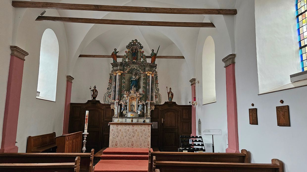 So ging dieser Tag irgendwie im Regen unter. Am nächsten Tag aber war die Wanderung auf den Spuren der Auswanderer programmiert, und wieder war das Wetter nicht ideal. Unser erstes Ziel war der Geburtsort der Pennings, Lultzhausen. Dank Pfarrer Marco Wehles waren die Kirchen in Lultzhausen und Insenborn aufgesperrt und so konnten die Besucher aus Amerika diese von Innen betrachten. Gemäss Pfarrer Wehles wurde das Penning Haus in Lultzhausen abgetragen, es stand auf dem Gelände der heutigen „Base nautique“, hier muss aber noch weiter geforscht werden, denn es gab mehrere Penning Familien in Lultzhausen. Steine vom Abriss eines Penning Hauses wurden übrigens in der Kirche von Insenborn weiterverarbeitet.