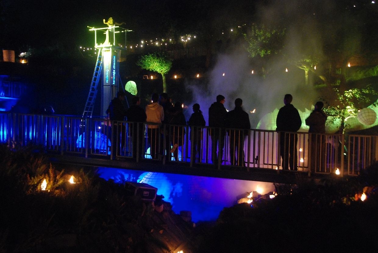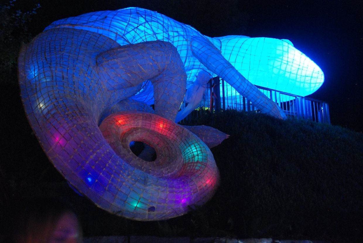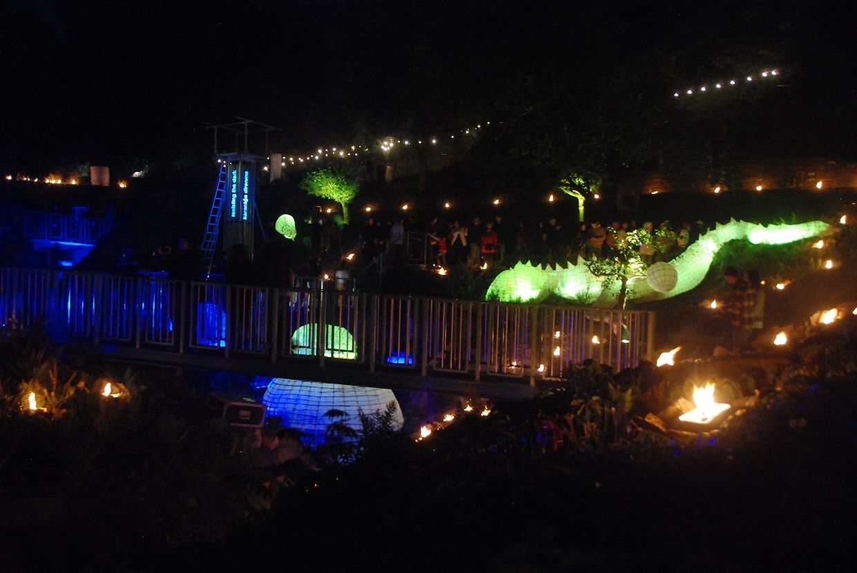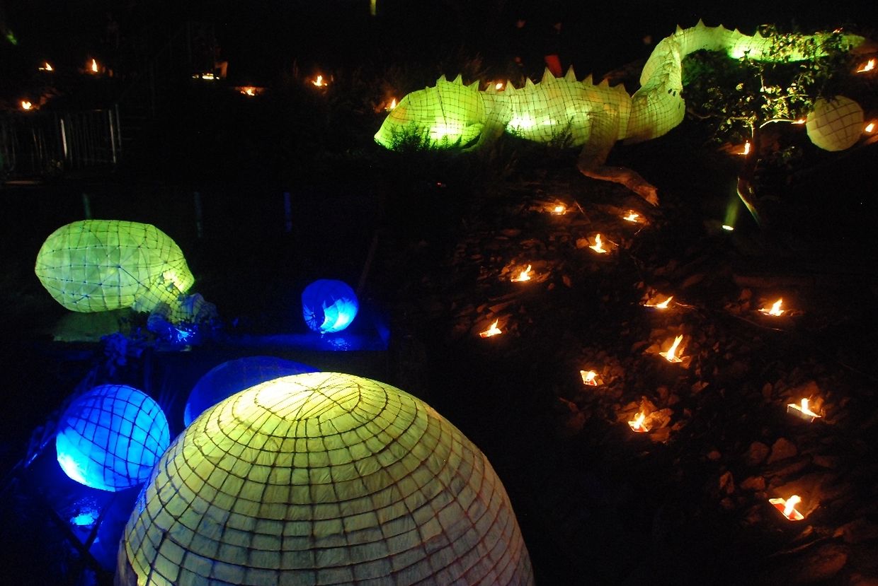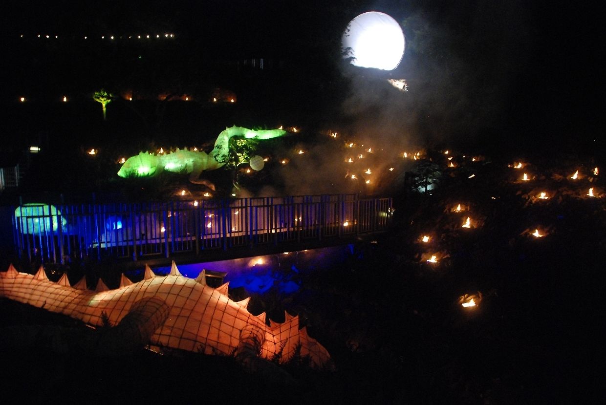 Es waren die Lichter der bereits 6. Auflage der „Nuit des Lampions“, die die Menschen wieder in Scharen anzogen. Hier verwandelte sich die 2,5ha große Gartenanlage in eine kunterbunte Märchenwelt mit Drachen, Pyramiden, Planeten und Fantasiefiguren.