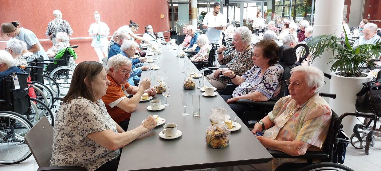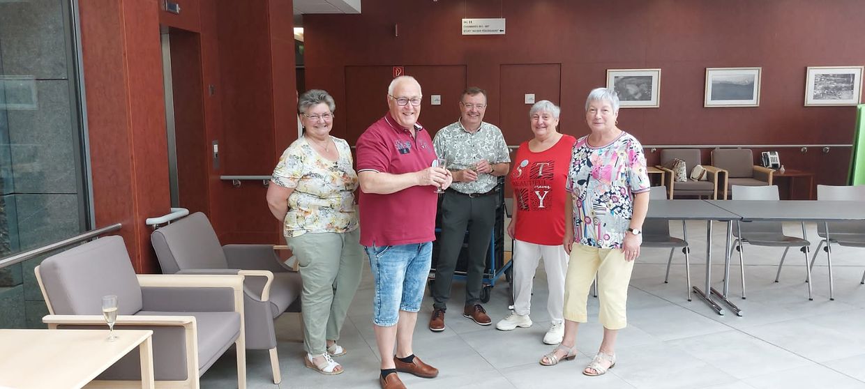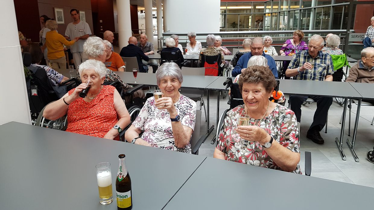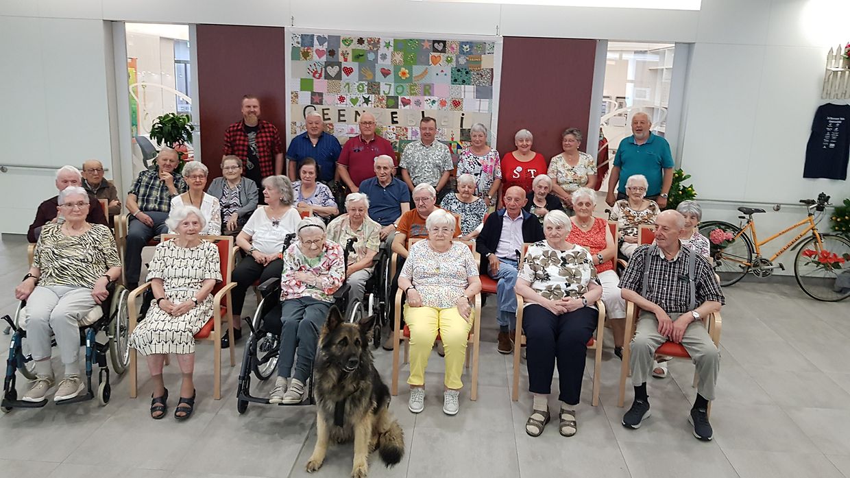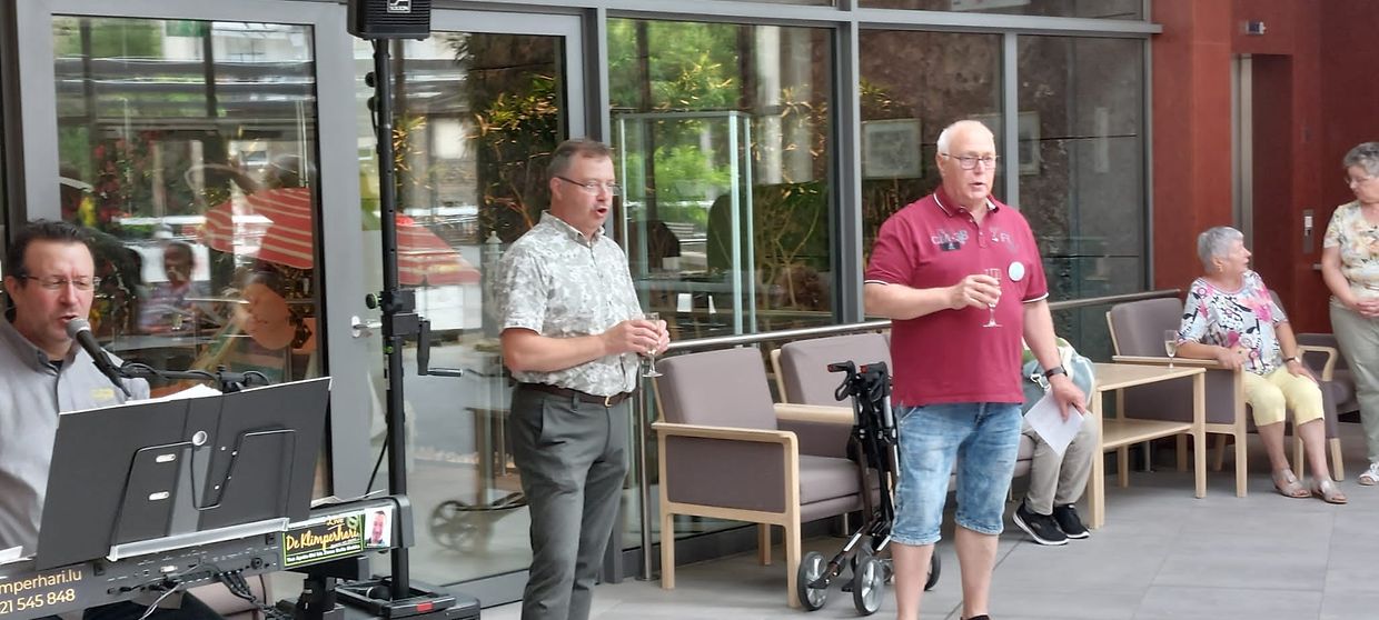Op dëser Feier déi traditionell vun der Amicale organiséiert gëtt war och Gemeng vertrueden durch den Schäffen Patrik Comes an Direktioun vun Servior durch den Här David Waxweiler an den Mupp Nugat war extra komm fir op d‘Foto. Bei der Begréissung hott de President Huet Jing am Numm vun der Amicale allen Geéierten felicitéiert fir hiren Gebuertsdag an hinnen nach lang eng gutt Gesondheet gewënscht. Dono hott deen ganzen Sall mam Orchester Klimperhary den Happy Birthday gesongen. Et guff gedanzt an gesongen, den Gebuertsdagskuch hott och nik gefeelt an e gudde Patt wéi ëmmer zerwéiert vum Personal Servior zesummen mat den Memberen vun der Amicale. 30 Bewunner guffen geéiert déi am Abrëll, Mee, an Juni Gebuertsdag haten an kruten een Kaddo vun hirer Amicale: Weydert Sonja (66), Weber Anette (66), Merges Anne (70), Defays Marcelle(76), Paolin Claudio (76), Lallemand Norbert (78), Schneider Marie-Josée (80), Reding Lydie (81), Gremling Marie-Thérèse (83), Unsen Irma (83), Remy Jeannot (83), Schroeder Roger (83), Molitor Micheline (84), Martin Emilie (84), Siebenaler Pierre (84), Graas Erna (84), Cuignet Claire (86), Turpel Edmond (87), Van Maris Gerardus (87), Malané Yvette (87), Schmit René (87), Gira Anne (88), Sinner Irène (88), Feller Marie (88), Schank Elise (89),Thines Marie-Thérèse (89), Heusbourg Eve (90), Kolbach Marie-Sophie (92), Kauth Elise (93), Andre Marguerite (94).