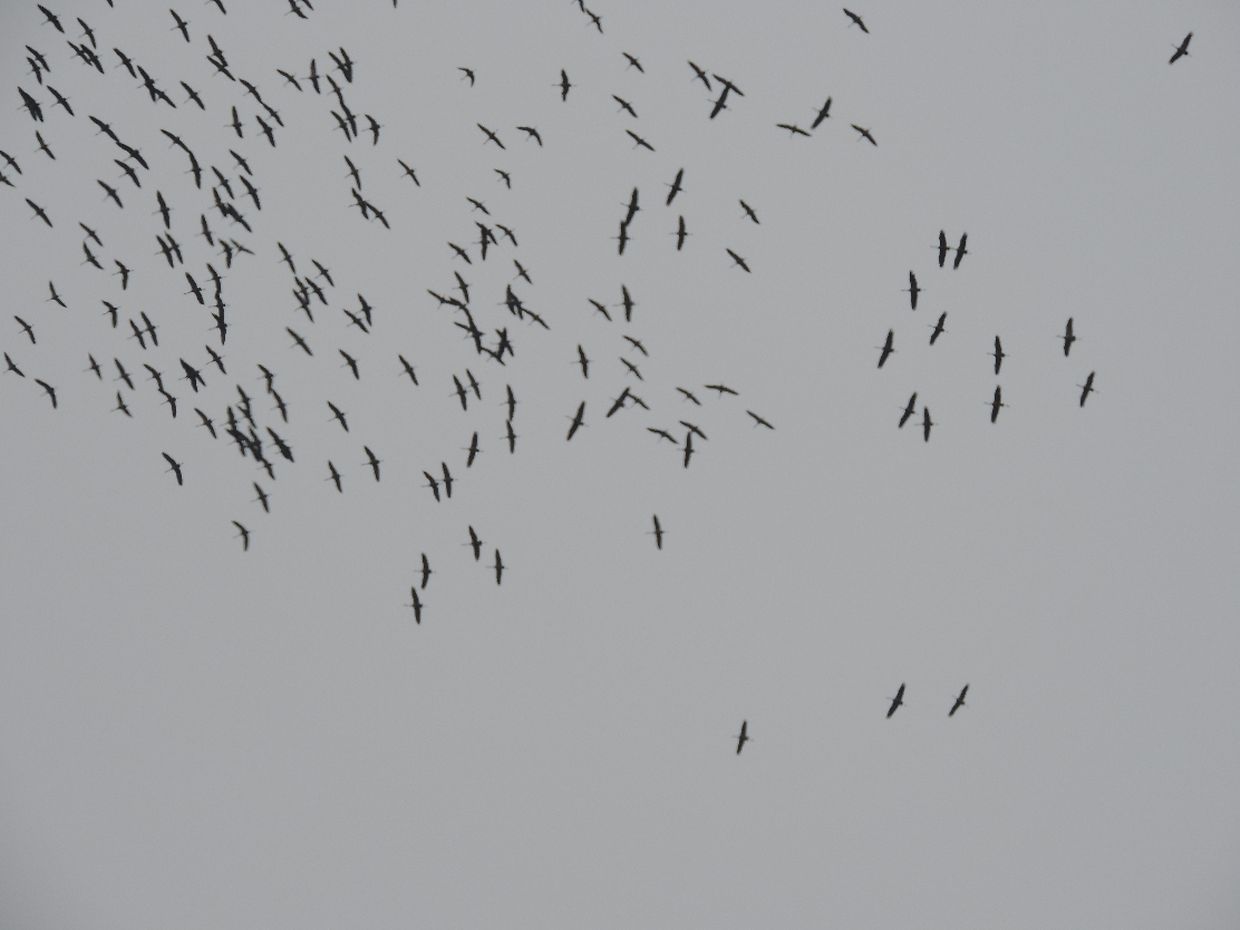 Gestern 01. März 2016 sind Schwärme von Kranichen über Wiltz hinweg geflogen. Es hat den Schein, dass sie nicht recht wissen wohin. Normalerweise bilden sie ja die 1, aber hier fliegen sie quer durcheinander.