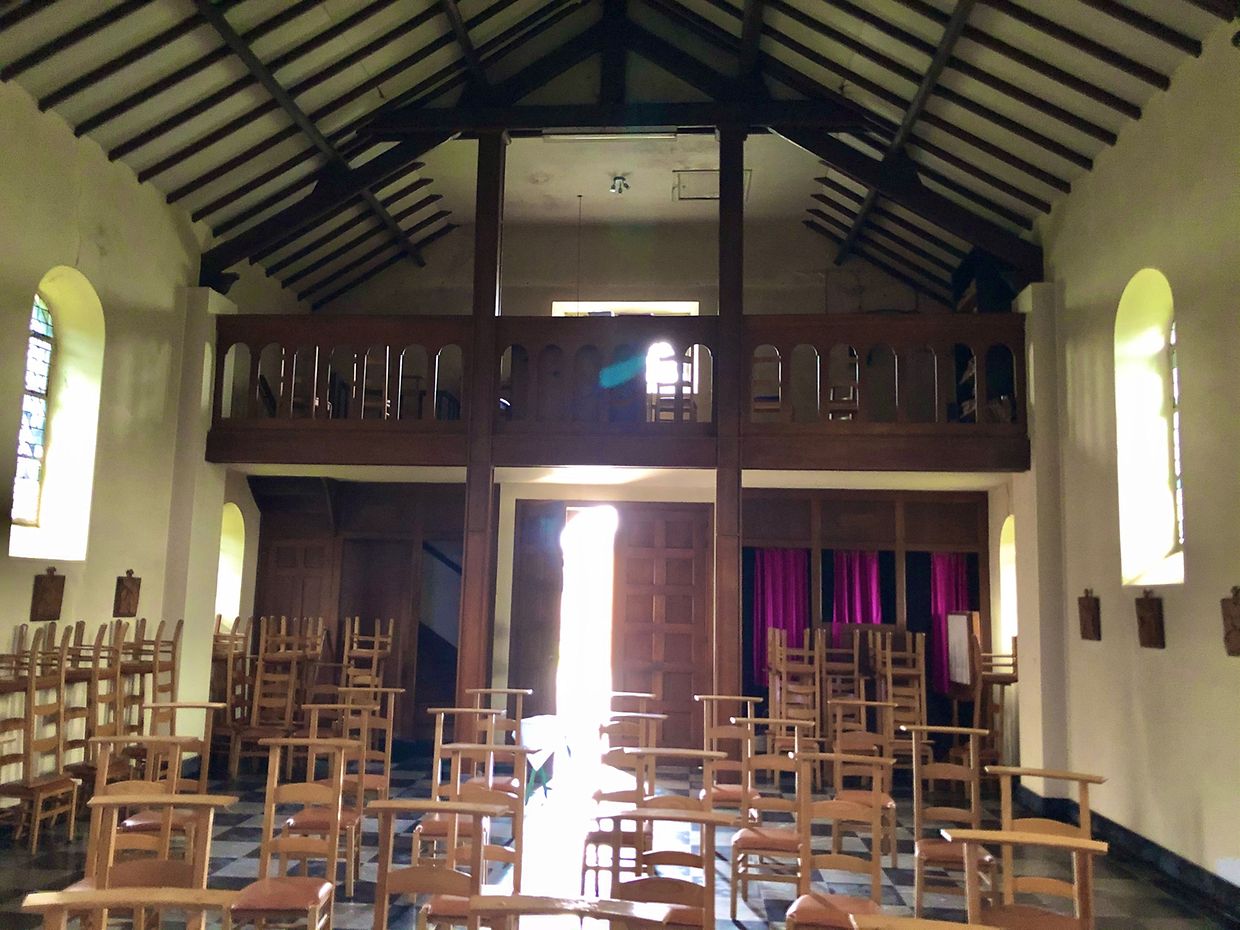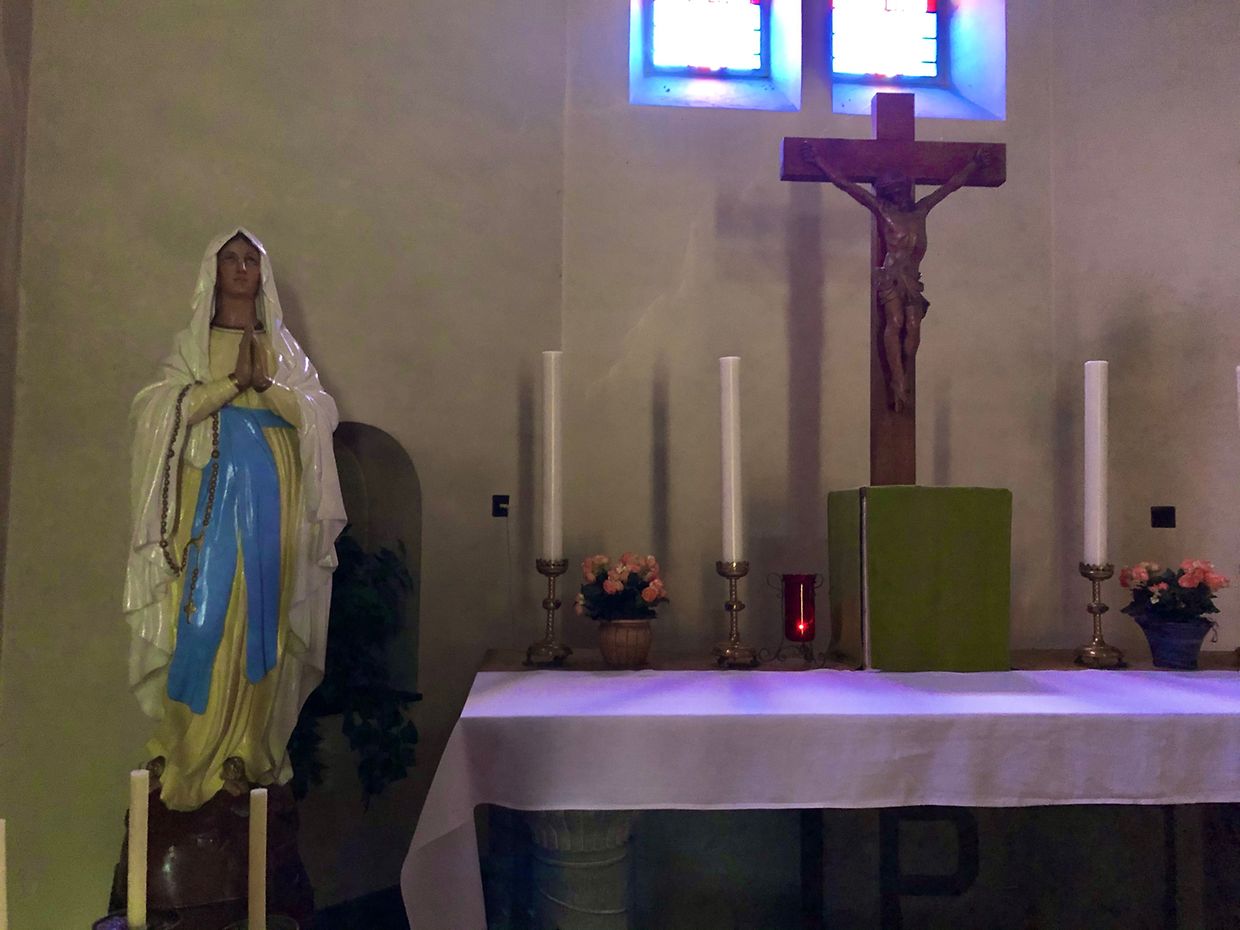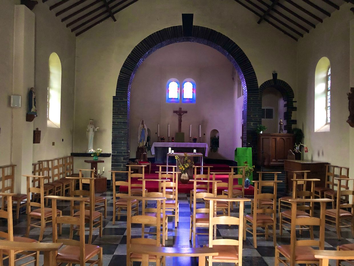 En 1871, une chapelle plus grande est construite cette fois côté sud de la vallée. Les peintures sont réalisées en 1920. L’annexe de la sacristie est terminée en 1929[11]. Détruite à l’offensive de décembre 1944, la chapelle est rebâtie en amont, perpendiculaire à la route. Elle est rectangulaire à pans coupés. L’édifice compte une sacristie située du côté sud du chœur et un jubé au-dessus du hall d’entrée[12]. Avec la participation du fond des dommages de guerre, les vitraux sont replacés en 1985.