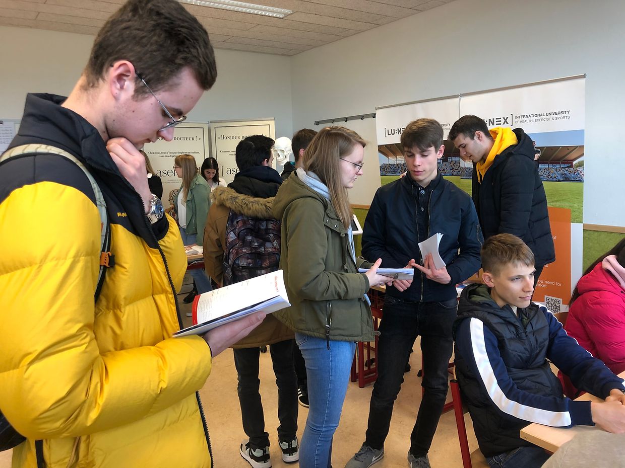 Véritable marque de fabrique du Lycée du Nord depuis plus de vingt ans, la matinée d’information constitue un moment fort dans l’agenda du lycée. Fidèle à son leitmotiv « une orientation sur mesure pour chaque élève « , le Lycée du Nord accueille chaque année des personnes du monde du travail ainsi que des étudiants des universités et écoles supérieures pour qu’ils puissent présenter aux élèves de 2e et 1re du LN les différentes facettes de leurs métiers et de leurs études. La conférence de Monsieur Mirko Mazzi du CEDIES est suivie de l’ouverture d’une quarantaine d’ateliers et de stands d’information sur les métiers et études fortement plébiscités par les élèves.