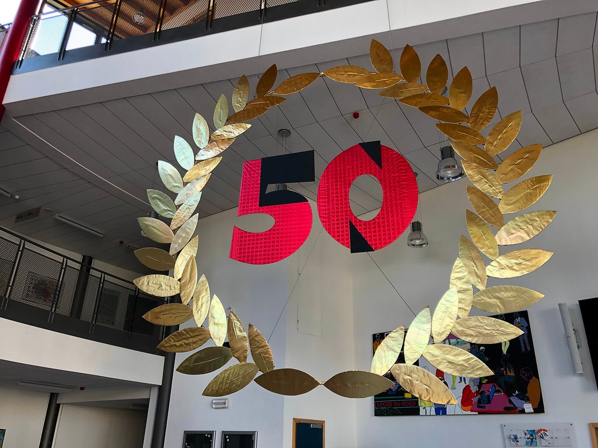 Am 15. Juni lud das Lycée du Nordzur Feier seines 50-jährigen Bestehens nach Wiltz. Mehr als 1200 ehemalige Lehrer, Mitarbeiter sowie Schüler folgten dem Aufruf und drängten zum Schulcampus, um gemeinsam ihre ehemalige Schule zu feiern. Die Gäste wurden nicht enttäuscht, denn die Organisatoren boten unter dem Motto „LN Celebrating“ einiges auf: An besagtem Samstag erwartete die Besucher ein generationenübergreifendes Programm, das zugleich über die 50-jährige Geschichte der Schule informierte und Gelegenheit zum Feiern bot. Am späten Nachmittag nahmen mehr als 400 Interessierte an der sogenannten „Balade apéritive“ teil, welche von der Amicale des Lycée du Nord Wiltzorganisiert wurde. Die Gäste machten sich in kleinen Gruppen auf die Suche nach dem „Klassebuch“ und erhielten so die Möglichkeit, für kurze Zeit wieder in die Rolle eines Schülers zu schlüpfen und den Schulalltag nachzuempfinden. Die Amicale sorgte während des Rundgangs mithilfe einiger Schüler des LN ebenfalls für das leibliche Wohl der Besucher. Abschließend versammelten sich alle im Forum des Lycée du Nord, wo der Geburtstagskuchen angeschnitten wurde und eine Fotoausstellung mit Bildern der letzten 50 Jahre aus der privaten Sammlung von Jos Scheeck zu sehen war, so dass Erinnerungen ausgetauscht werden konnten.