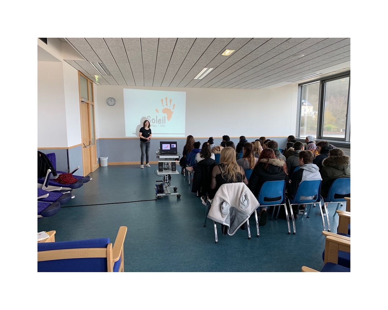 Frau Reiten, stellvertretende Direktorin des Lycée du Nord, bedankte sich bei allen Schülern und Lehrern für ihr Engagement und ihre Teilnahme am „Krëschtmaart“, bevor sie das Wort an Lena Enders weitergab, die mittels einer ansprechenden Präsentation erläuterte, wofür das gespendete Geld eingesetzt wird.