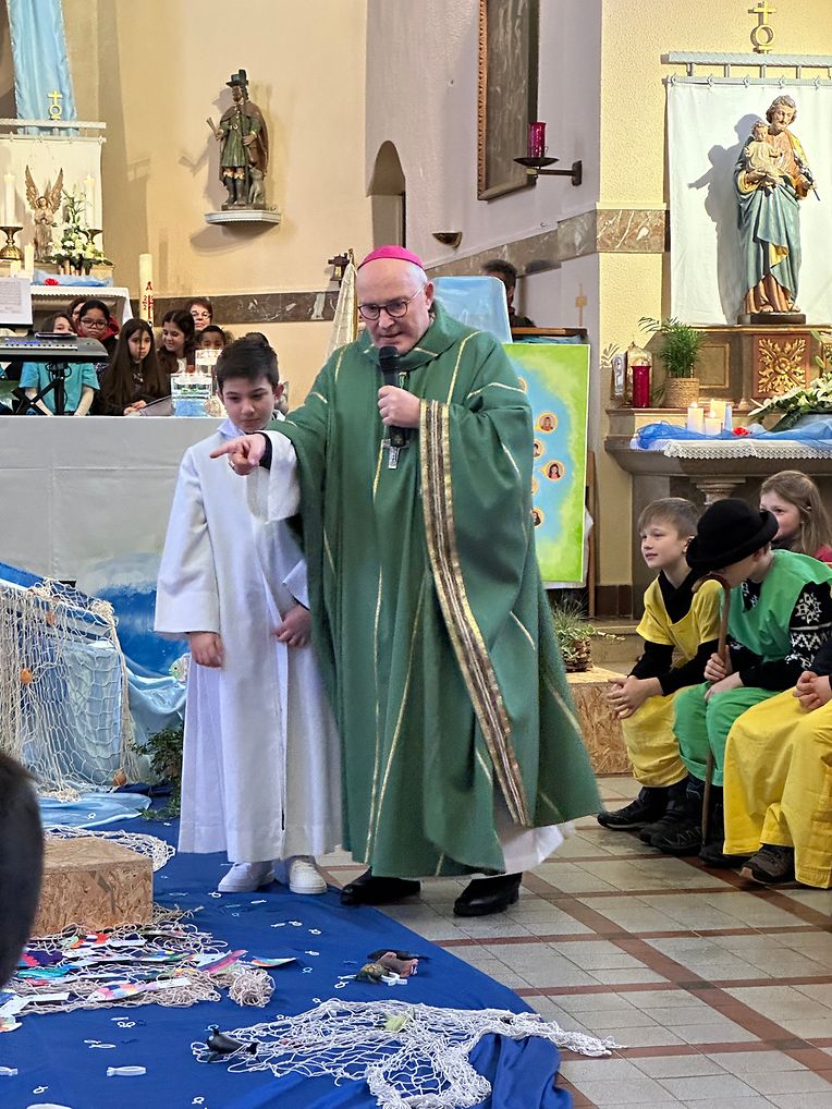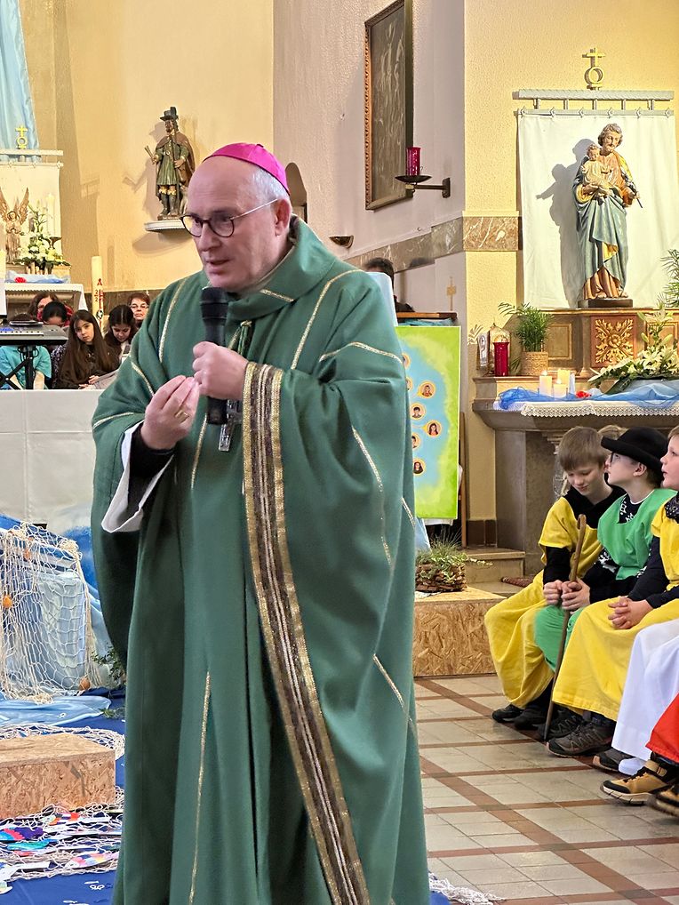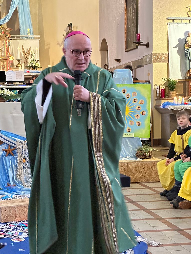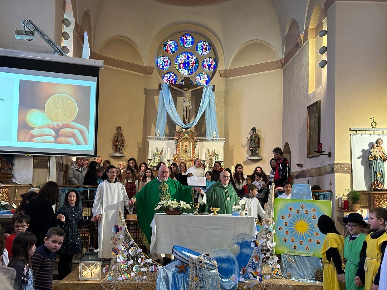 Leo Wagener, Weihbischof von Luxemburg war zu Gast in der Familienkirche von Wilwerdingen, die ihren 10. Geburtstag am 21. Januar 2024 feierte.