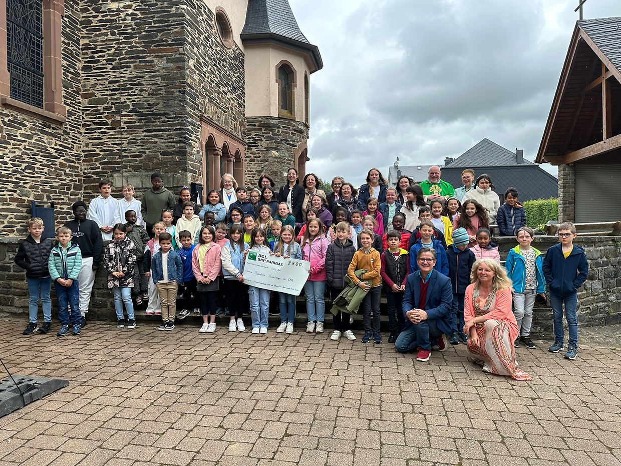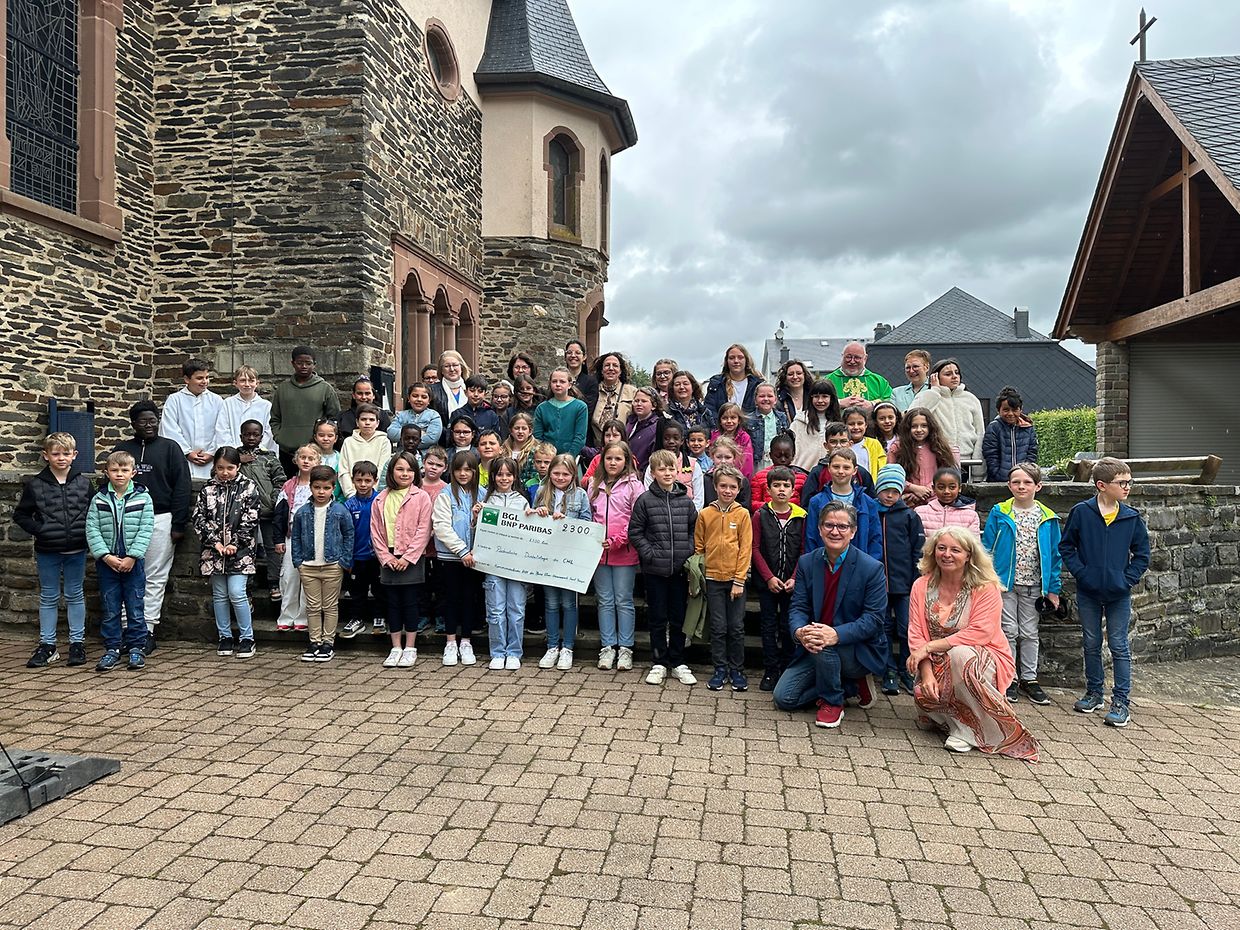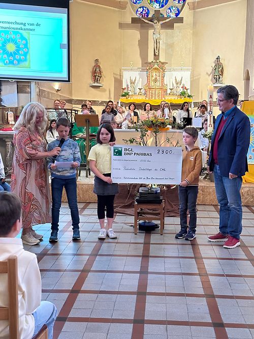 D'Kommuniounskanner aus der Par Ëlwen-Wäiswampich iwwereechen ee Schéck van 2300 Euro an den Doktor Whitsch van der pädiatrischer Diabetologie vam CHL am Kader der Familljemass zu Wilwerdang. Nodeems Doktor Whitsch d'Wuert un d'Kommuniounskanner an hir Familljen geriicht hat guefen 500 Euro geaffert fir d' Wierk. Merci allen déi zou denen 2800 Euro beigedroen han.