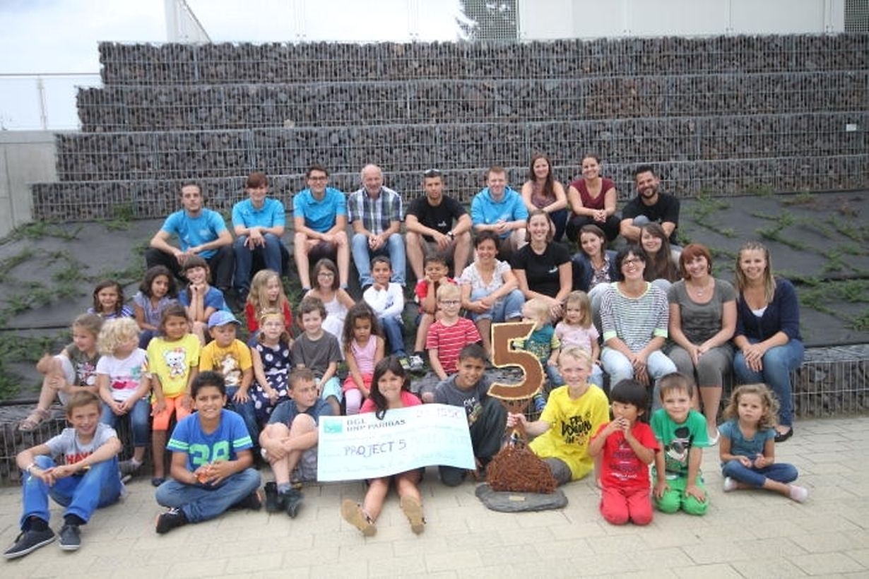 So wurden in den Kischpelter Wäldern Hütten gebaut, in denen dann mit selbst gebastelten Bechern und Tellern wie früher gegessen wurde. Auch das Essen beschafften sich die Kinder teilweise selbst. So wurde zusammen mit den Erziehern über einem Lagerfeuer Stockbrot gebacken, und in einem Weiher nahe Boxhorn wurden Forellen gefischt. Im „Païperleksgaart“ in Grevenmacher und im Bettemburger Park konnten die Kleinen verschiedene neue Tierarten kennen lernen und im Parc Le´h in Düdelingen machte das Klettern großen Spaß. Weiterhin lernten die 50 an den Ferienaktivitäten eingeschriebenen Schüler auch afrikanische Rhythmen kennen, die sie dann voller Stolz, kürzlich bei der Abschlussfeier, in Form eines Tanzes, ihren Eltern vorführten. Im Rahmen dieser Abschlussfeier wurde auch der Wanderpokal „Nëckel“ von der „Crèche Bim Bam“ aus Schieren, vertreten durch Anne Weicker und Sheila Arendt, an Marc Thill, den Verantwortlichen der „Maison relais“, und an die Lehrerinnen Nadine Schank und Annick Majeres vom „Schoulkauz“ aus Wilwerwiltz weitergeleitet, die bei ihrem Sportfest am 24. Mai, an dem mehr als 1 200 Kinder teilnahmen, stolze 23 155 Euro an „Project 5“ spendeten.