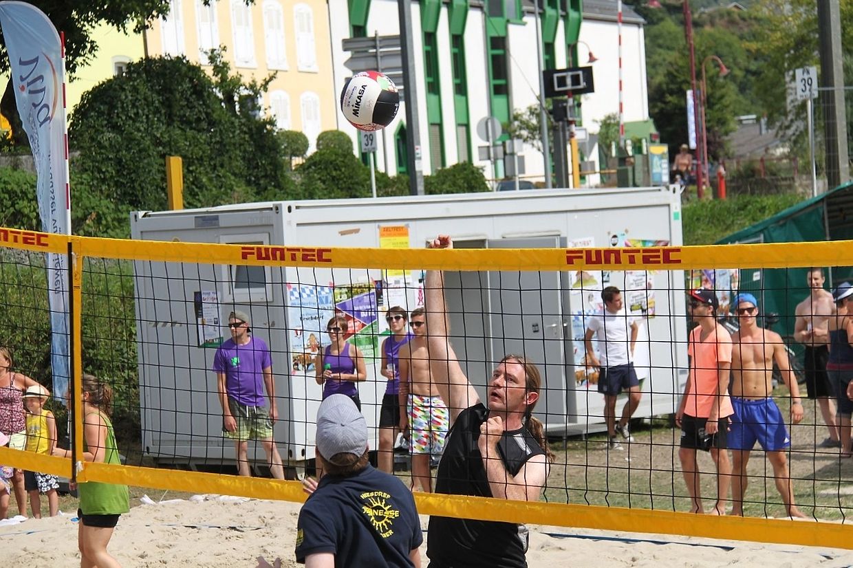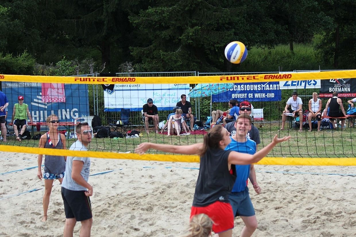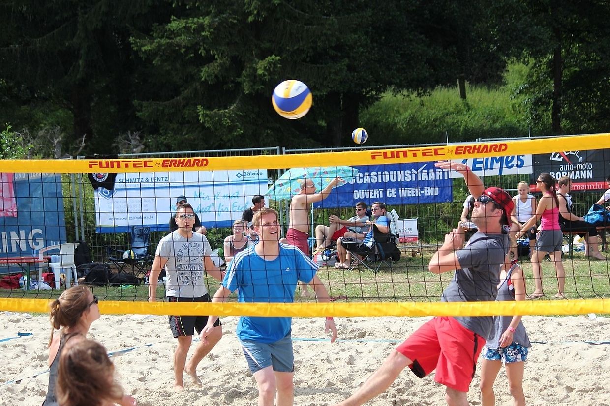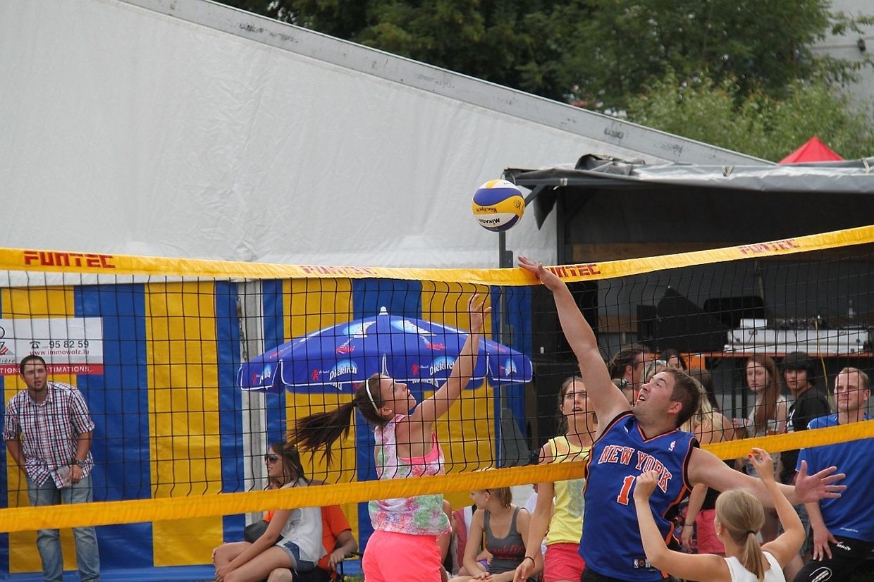 Auch die elfte Ausgabe der ,,Beach Days am Kiischpelt'' die am vergangenen Freitag mit einem Beachvölkerball-Turnier an dem 8 Mannschaften teilnahmen starteten, waren wieder ein voller Erfolg. Nachdem es in den letzen Jahren einige Probleme mit dem Sand gab, wurde dieses Jahr, zur vollster Zufriedenheit aller Teilnehmer auf echtem, von der belgischen Küste, importierten Meeressand gespielt. Zum Mixte-Zweier Volleyballturnier vom Samstag, hatten sich 24 Mannschaften angemeldet. Besonders der Mannschaftswettbewerb am Sonntag kannte auch dieses Jahr, bei tollem Sommerwetter, wieder einen überragenden Erfolg. Da nur auf 4 Feldern gespielt werden kann, konnten, obwohl es viel mehr Anmeldungen gab, nur 72 Mannschaften zugelassen werden die sich aus 4 Spielern zusammen setzten, von denen deren nur jeweils zwei beim Verband lizenziert sein durften. Gespielt wurde zwar nach den Beachvolleyballregelen, da es sich aber um ein Jux-Turnier handelte wurden diese natürlich nicht zu streng ausgelegt und obwohl es mit viel Engagement zur Sache ging, so stand aber die gute Laune und der Spass am Spiel den ganzen Tag über stets im Vordergrund.(ARO)