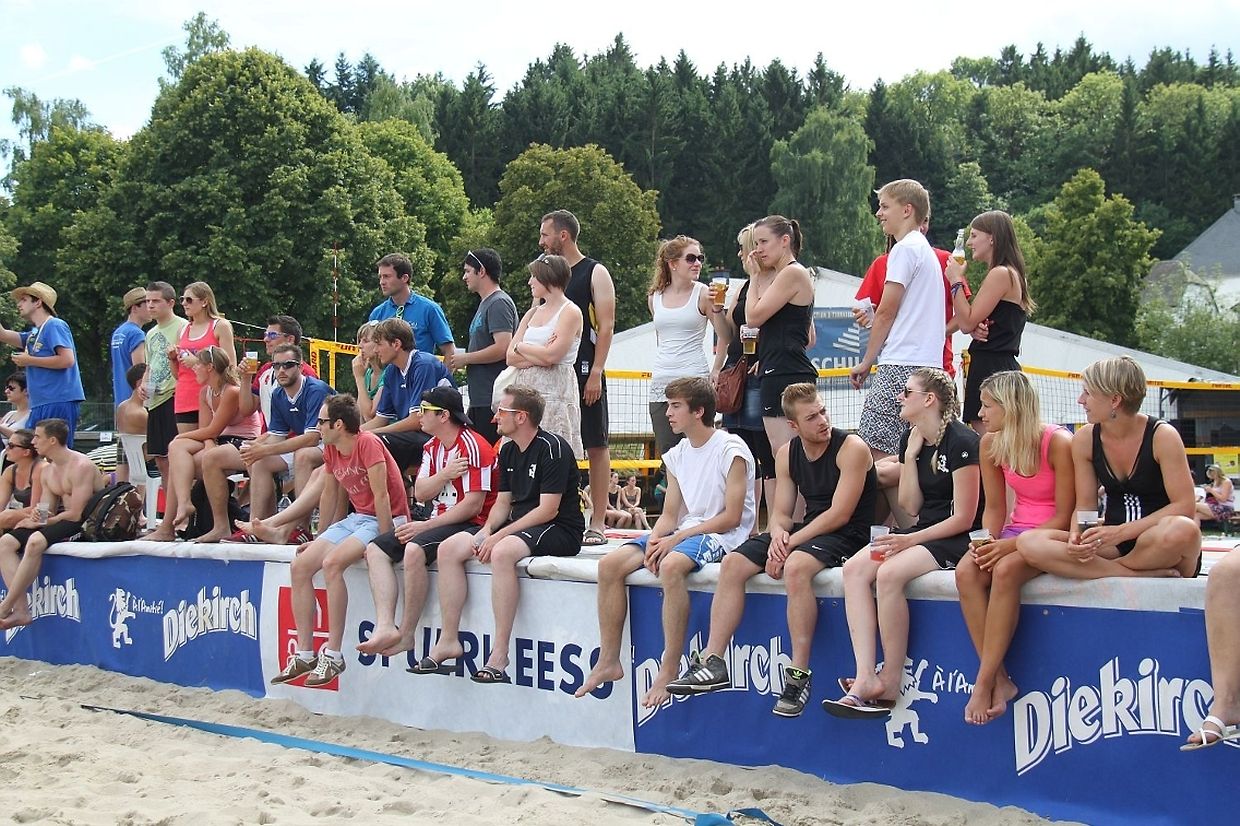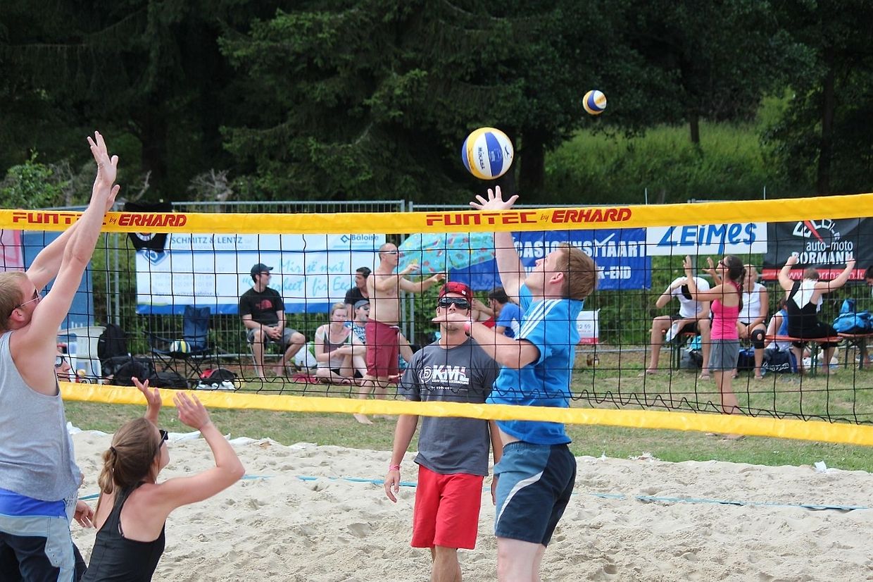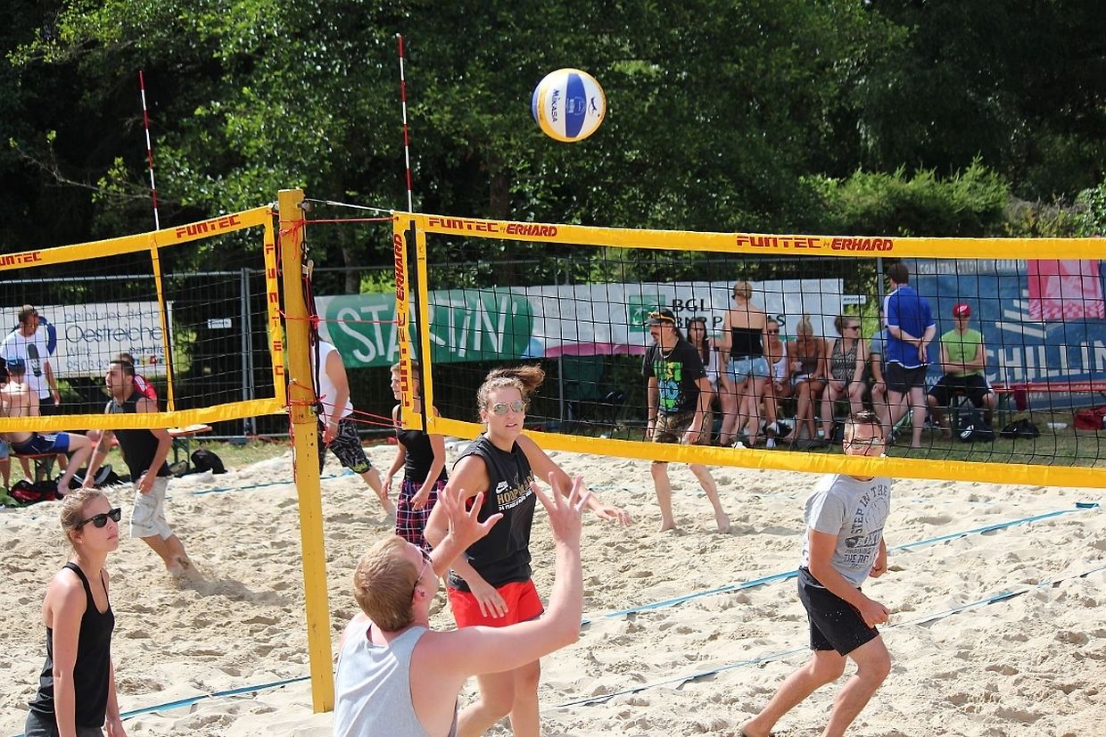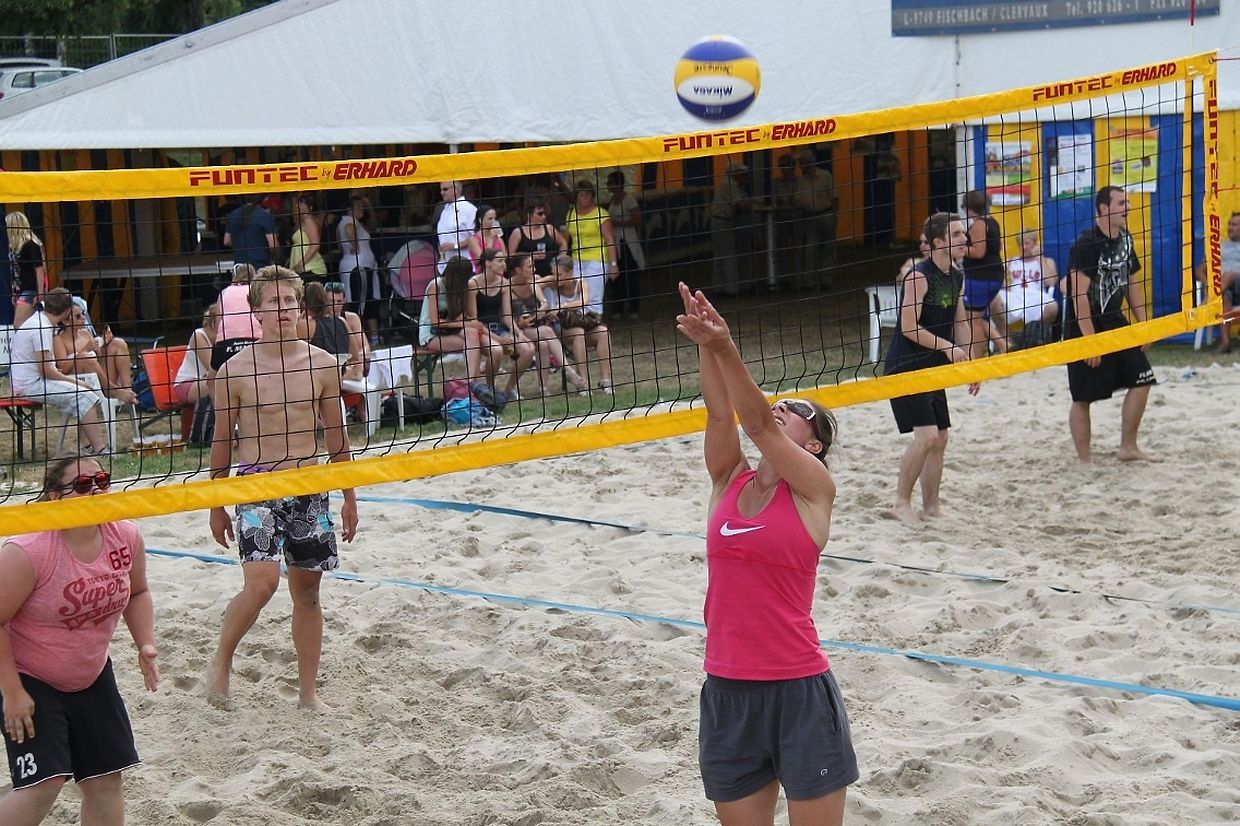 Auch die elfte Ausgabe der ,,Beach Days am Kiischpelt'' die am vergangenen Freitag mit einem Beachvölkerball-Turnier an dem 8 Mannschaften teilnahmen starteten, waren wieder ein voller Erfolg. Nachdem es in den letzen Jahren einige Probleme mit dem Sand gab, wurde dieses Jahr, zur vollster Zufriedenheit aller Teilnehmer auf echtem, von der belgischen Küste, importierten Meeressand gespielt. Zum Mixte-Zweier Volleyballturnier vom Samstag, hatten sich 24 Mannschaften angemeldet. Besonders der Mannschaftswettbewerb am Sonntag kannte auch dieses Jahr, bei tollem Sommerwetter, wieder einen überragenden Erfolg. Da nur auf 4 Feldern gespielt werden kann, konnten, obwohl es viel mehr Anmeldungen gab, nur 72 Mannschaften zugelassen werden die sich aus 4 Spielern zusammen setzten, von denen deren nur jeweils zwei beim Verband lizenziert sein durften. Gespielt wurde zwar nach den Beachvolleyballregelen, da es sich aber um ein Jux-Turnier handelte wurden diese natürlich nicht zu streng ausgelegt und obwohl es mit viel Engagement zur Sache ging, so stand aber die gute Laune und der Spass am Spiel den ganzen Tag über stets im Vordergrund.(ARO)