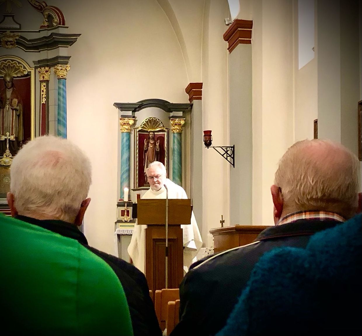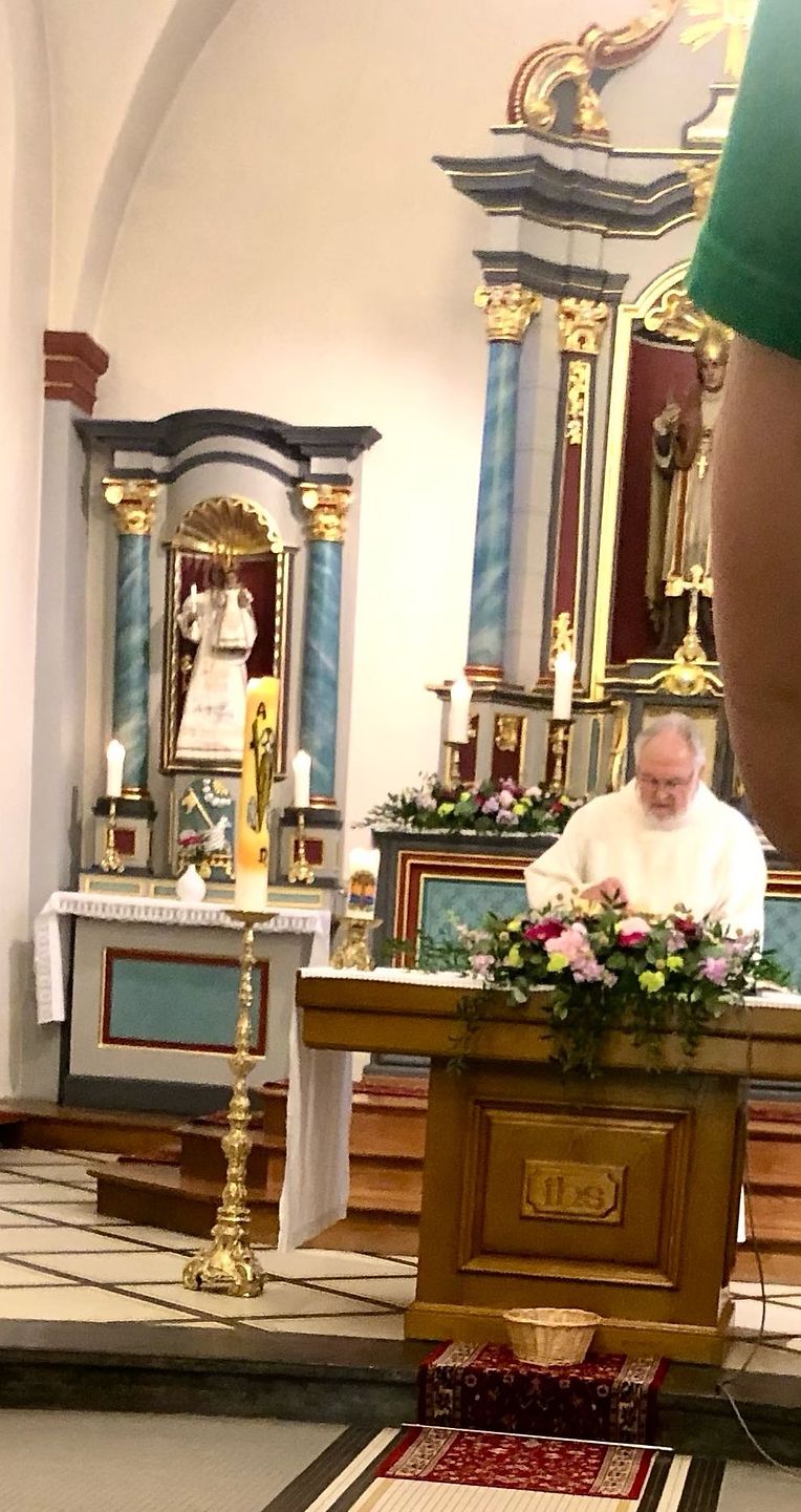 D’Kirmesmass as ganz wonnerbar vun der Charale St Cécile mat herrlechem Gesank encadréiert gin, an den Abbé Henri Hamus den Hl. Mass zelebréiert hot, hat och zu deser Feier vun der Kirchen-Weih eng wonnerbar Festpredegt gehalen.
