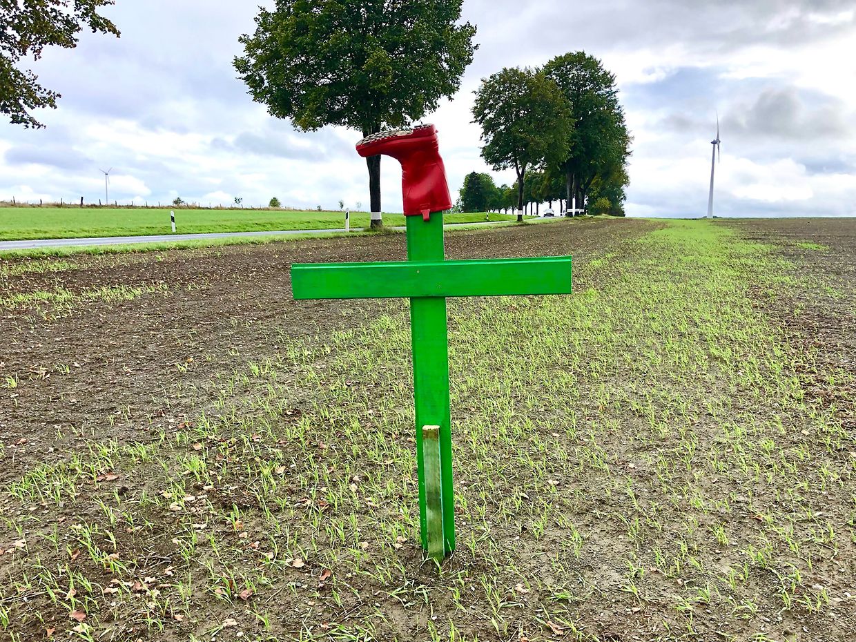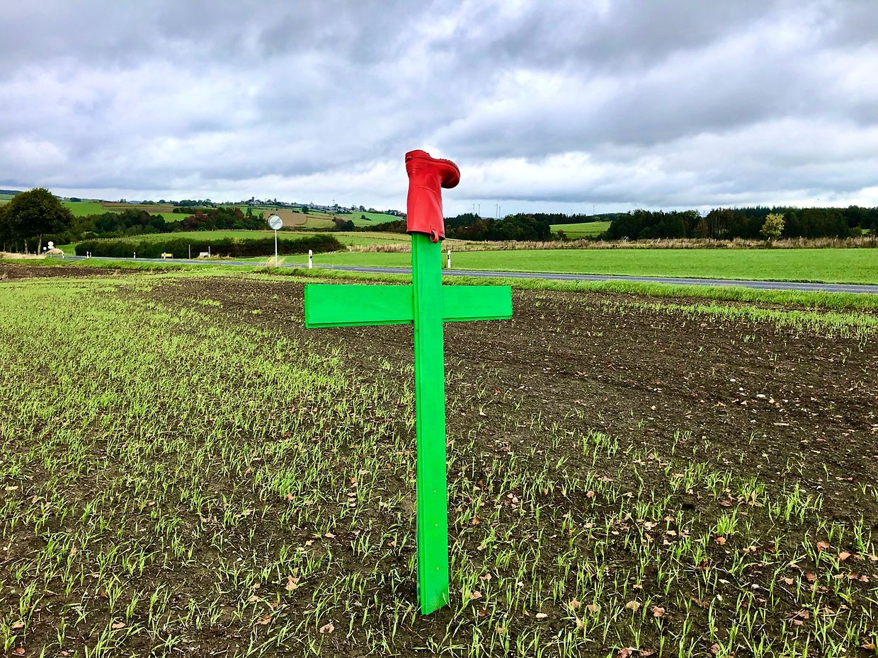 Am frühen Freitagmorgen dürfte sich so mancher Autofahrer über die entlang der Straßen aufgestellten grünen Kreuze mit roten Stiefeln gewundert haben. Hinter dieser Aktion stecken die Lëtzebuerger Landjugend a Jongbaueren, die Jongwënzer der Vinsmoselle und der Service Jeunesse Lëtzebuerger Bauerejugend der Bauernzentrale. Zwischen 300 und 400 Kreuze haben sie in den vergangenen Tagen gebaut, angemalt und in der Nacht zum Freitag im ganzen Land aufgerichtet.