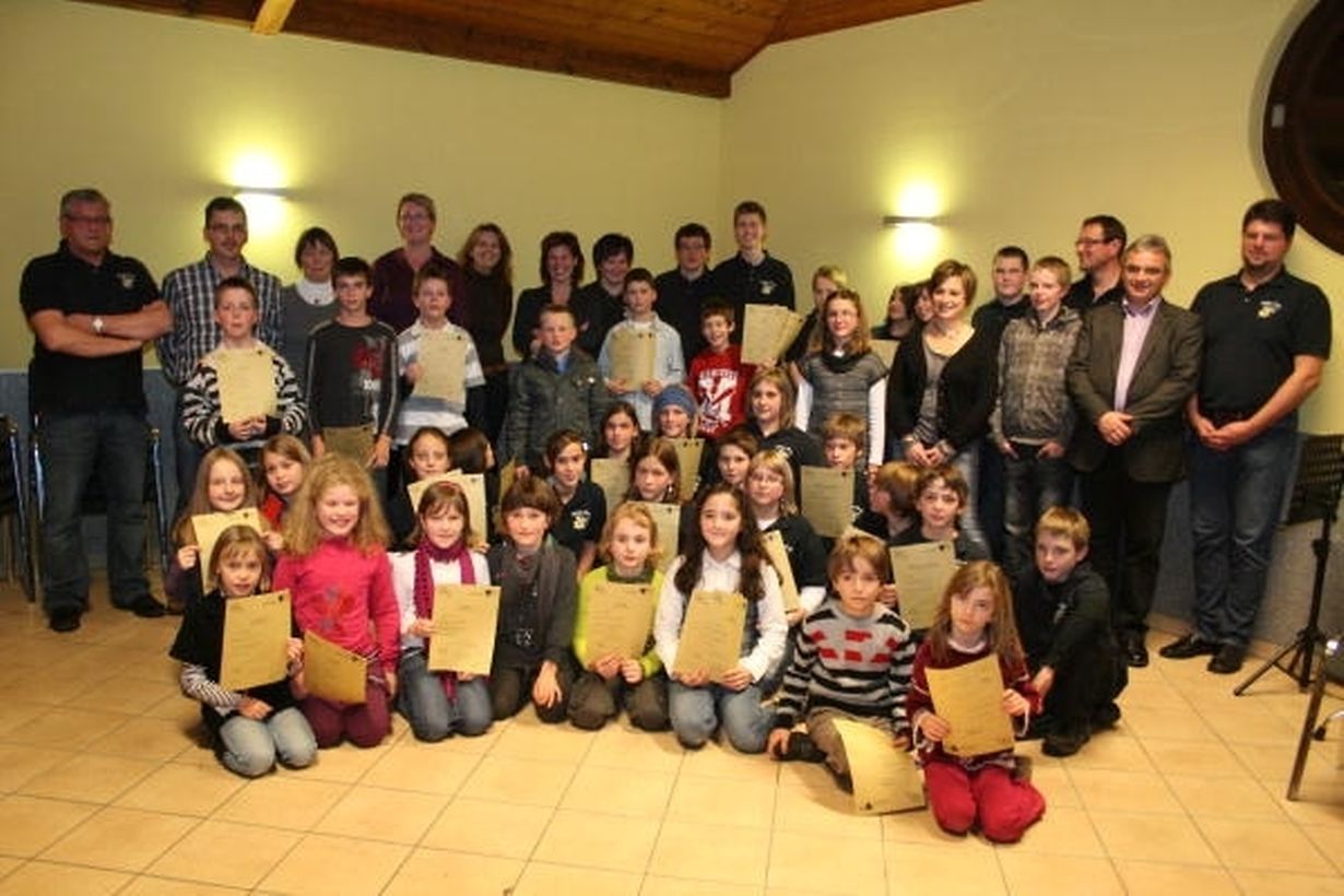 Im Rahmen der Cäcilienfeier des Wintger Musikvereins erhielten die erfolgreichen Absolventen der Instrumentenkurse und der Gesangsausbildung in der Clerfer Musikschule ihre Diplome aus den Händen von Bürgermeister Marcel Thommes. Es sei ihm eine Freude, so Thommes, so viele Diplome überreichen zu können, da dies auf einen starken Zusammenhalt im Musikverein hinweise. Marcel Thommes und Vereinspräsident Fred Thill beglückwünschten die Absolventen zum Diplom und bedankten sich besonders für die hervorragende Unterstützung der Eltern. Musikalisch umrahmt wurde die sympathische Feierstunde von den jüngsten Wintger Musikanten, die unter der Leitung von Dirigent Sébastien Lemaire von ihrem Talent zu überzeugen wussten. (Text/Foto: Ginette Clees)