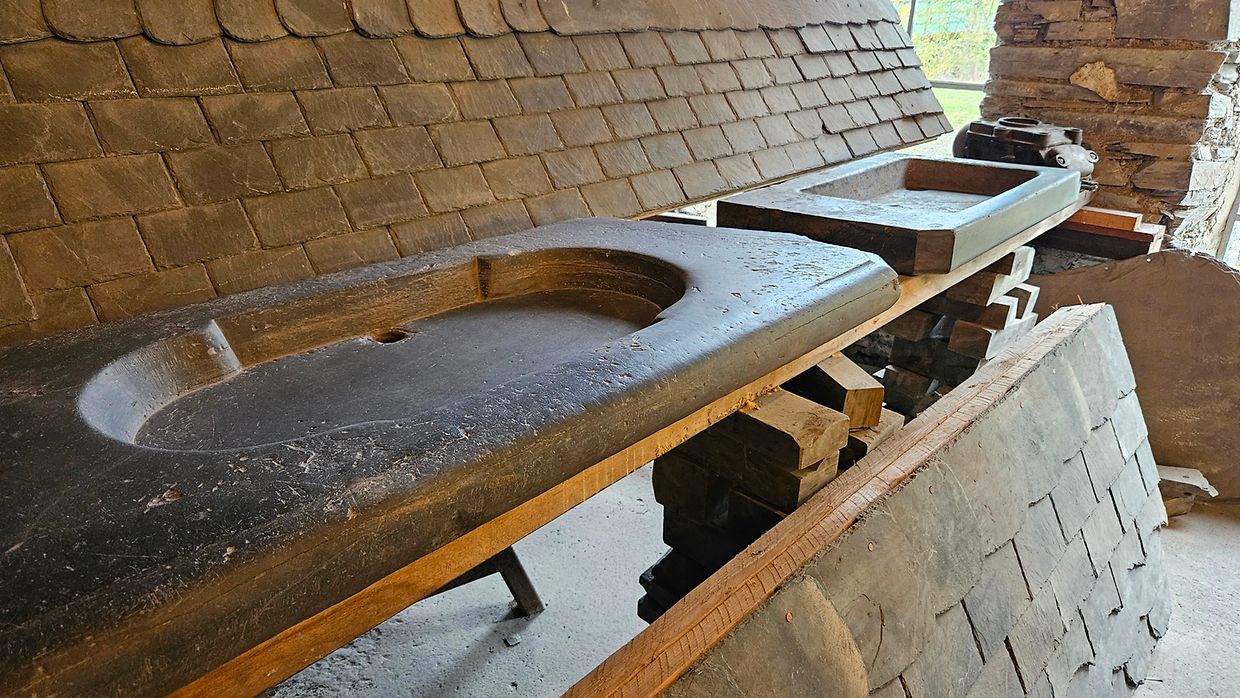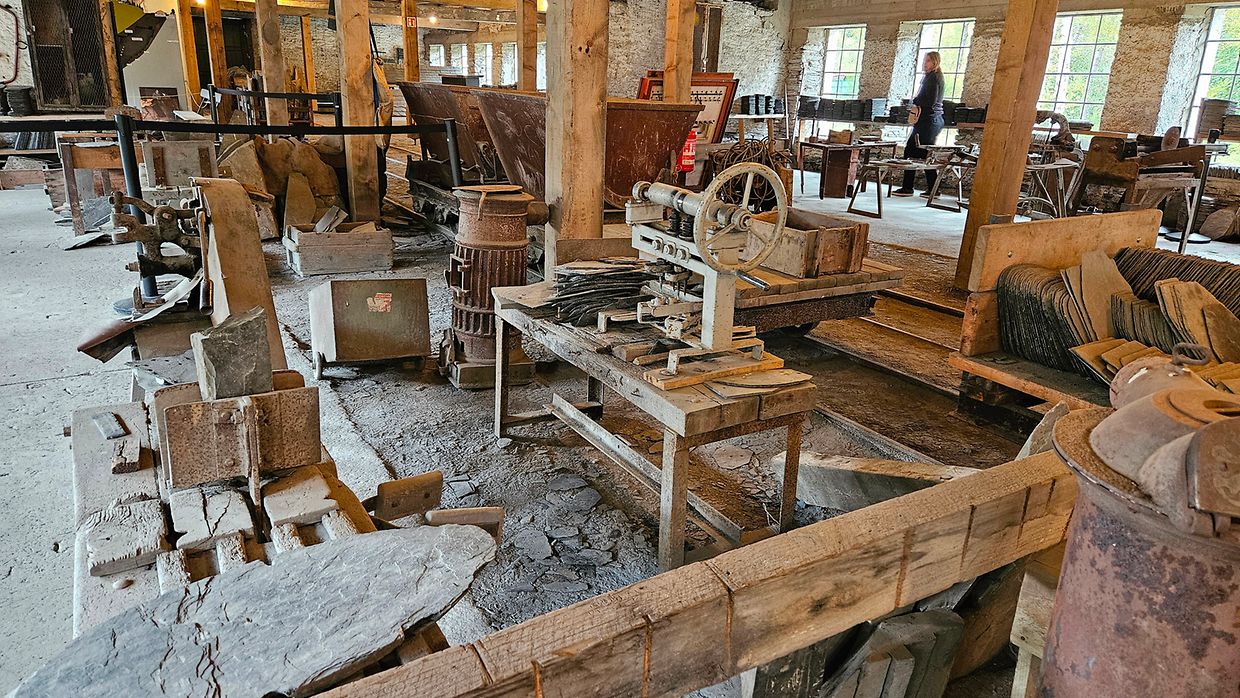 In the afternoon we visited the museum of the old slate mine in the nearby Haut-Martelange, because in 1880 Nicolas Steffen was working in a slate mine in the area. The first slate mine in this area was started end of the 18th century and other mines were opened. At the end of the 19th century some 6 millions roof plates were produced. Although roof slates were the main production branch, slate stone was also used to produce items like tombstones and kitchen sinks. In 1890 all the small mines from the area were taken over by a german family with the name of Rother. Around 1900 some 600 people were working here, so this industry had a great impact on the region. In 1986 the mine, the only one in Luxembourg at that time, was completely shut down. Today it has been transformed into a museum where you can walk to 42 meters underground and experience the harsh conditions for the workers and visit the productions halls where you can see how slate plates were produced in the old days.