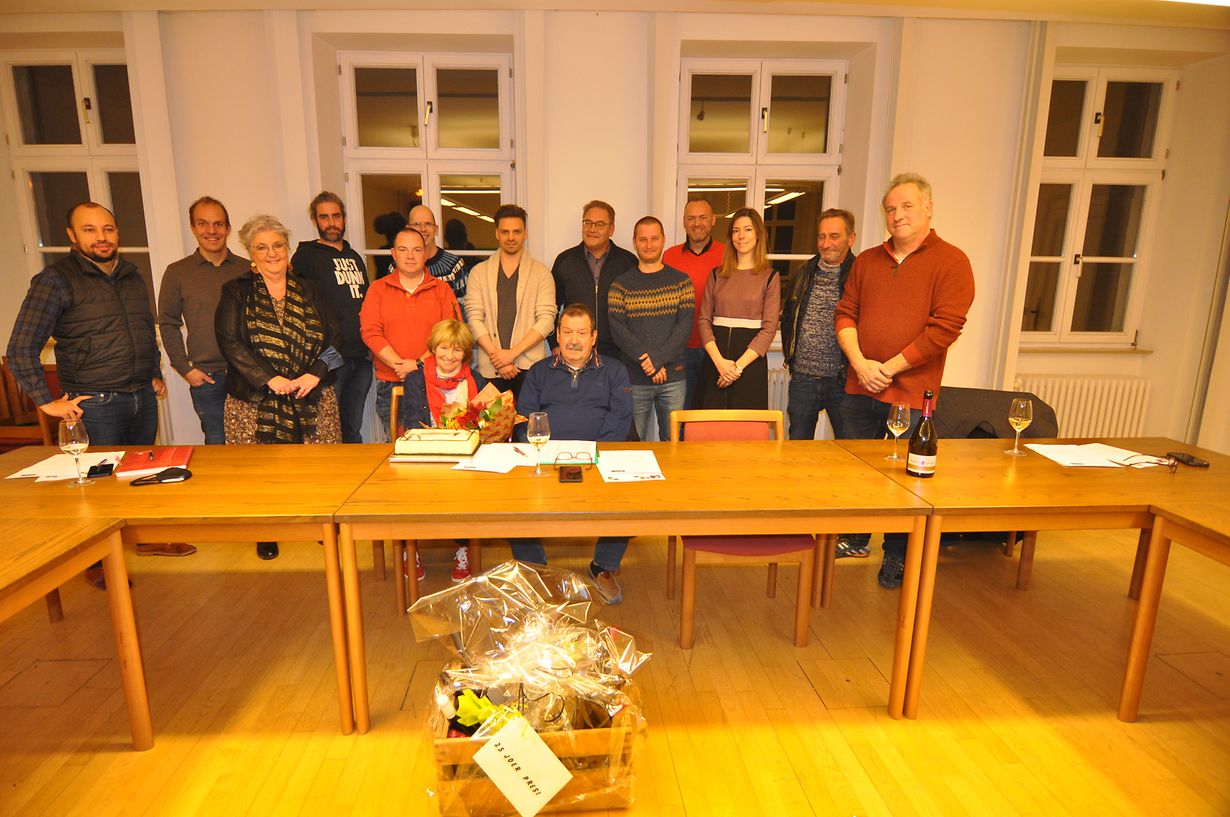 Wormeldingen 25 Joer President vun de Privatwënzer vun der lëtzebuerger Musel Fernand Dax Veröffentlicht am Sonntag, 12. Dezember 2021 um 18:14 Wormeldingen, Luxemburg Bei enger Feier am klengen Krees huet den Comité den Erny Schumacher fir 25 Joer President bei de Privatwënzer vun der lëtzebuerger Musel geéiert. Seng Madam Monika ass mat engem scheinen Bouquet Blummen beschenkt ginn. Unpassenden Inhalt angeben Weitere Neuigkeiten von Fernand Dax > Fackelwanderung zou Wormer 07.11.25 Wormeldingen Journée commémorative 2025 zou Einen an zou Wormer 23.10.25 Wormeldingen Generalversammlung der Helikoptergenossenschaft Wormeldingen-Lenningen 25.04.25 Wormeldingen 49. Konveniat Gendarmerie/Police 11.04.25 Beringen E mouvementéiert Joer beim Syndicat d'Initiative Manternach 09.03.25 Manternach